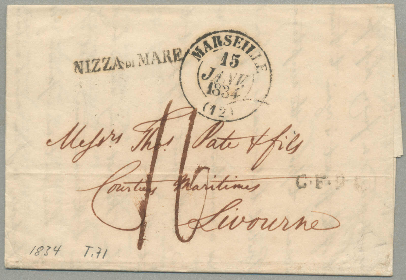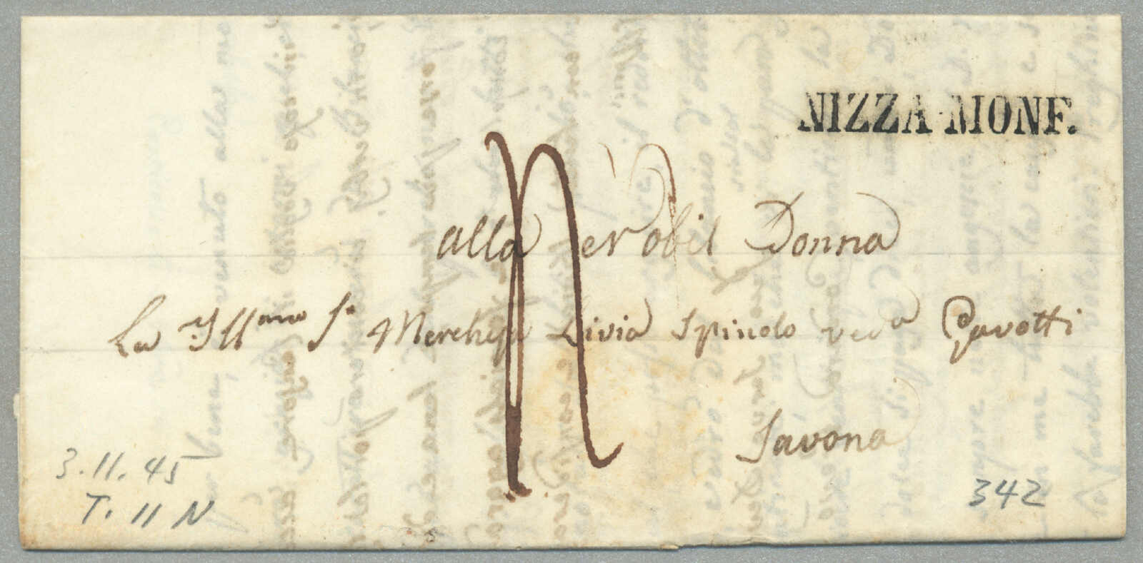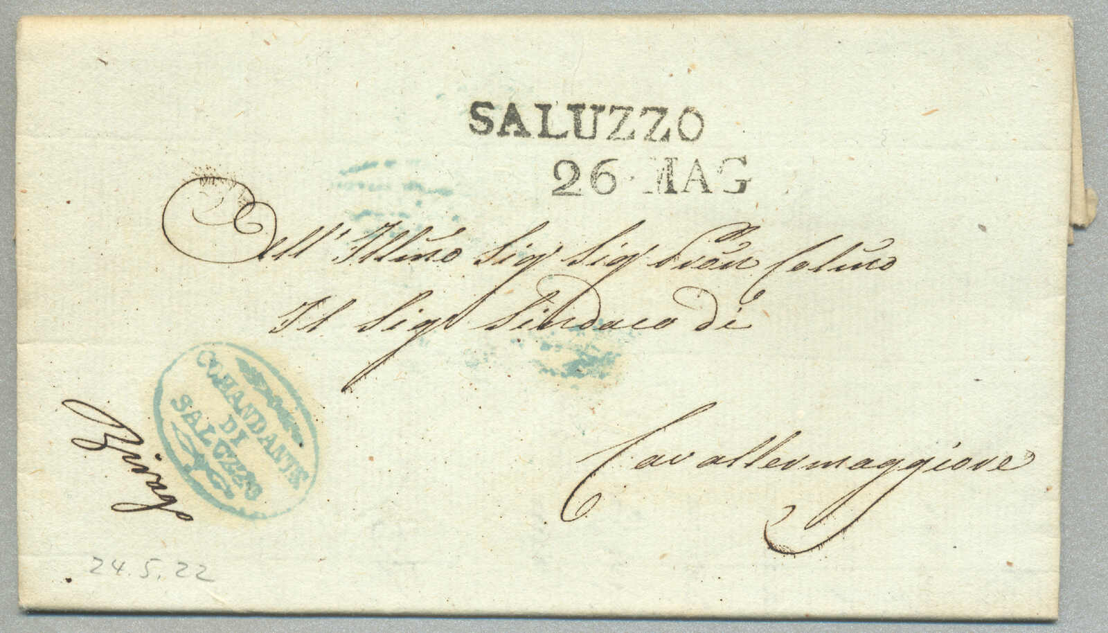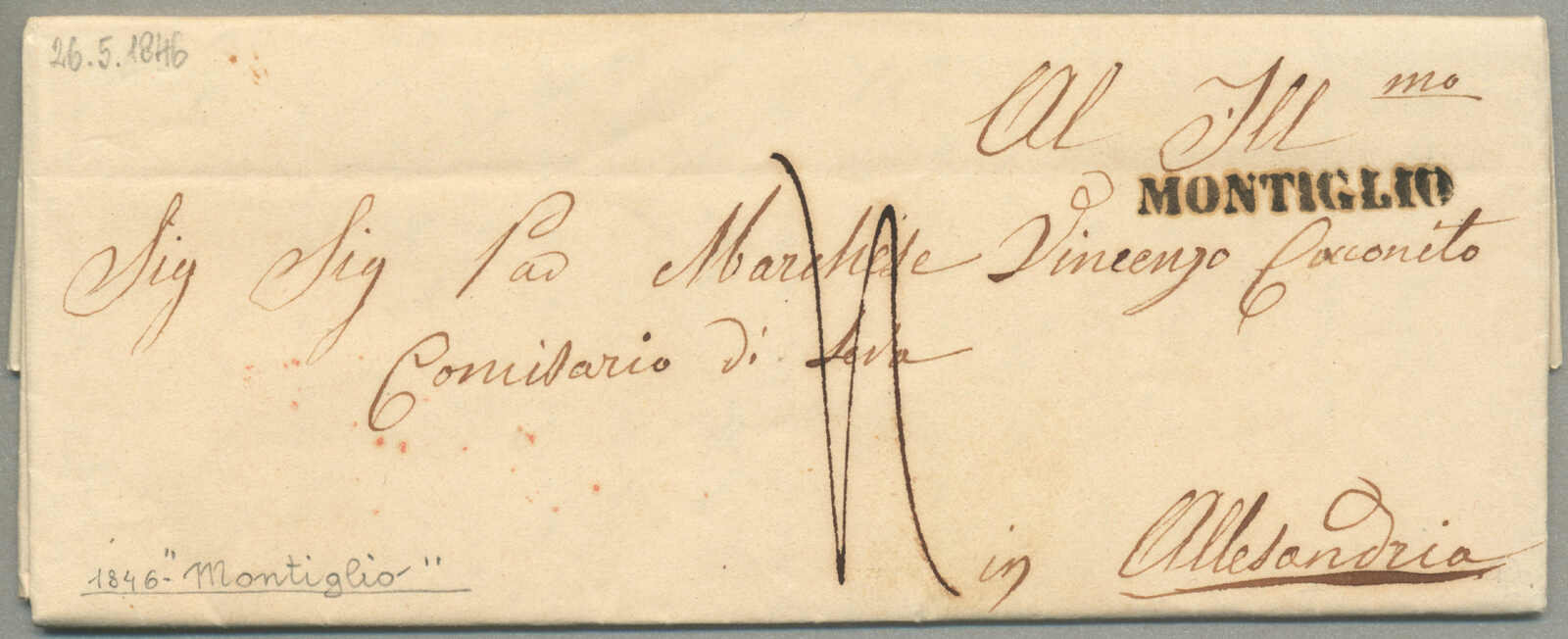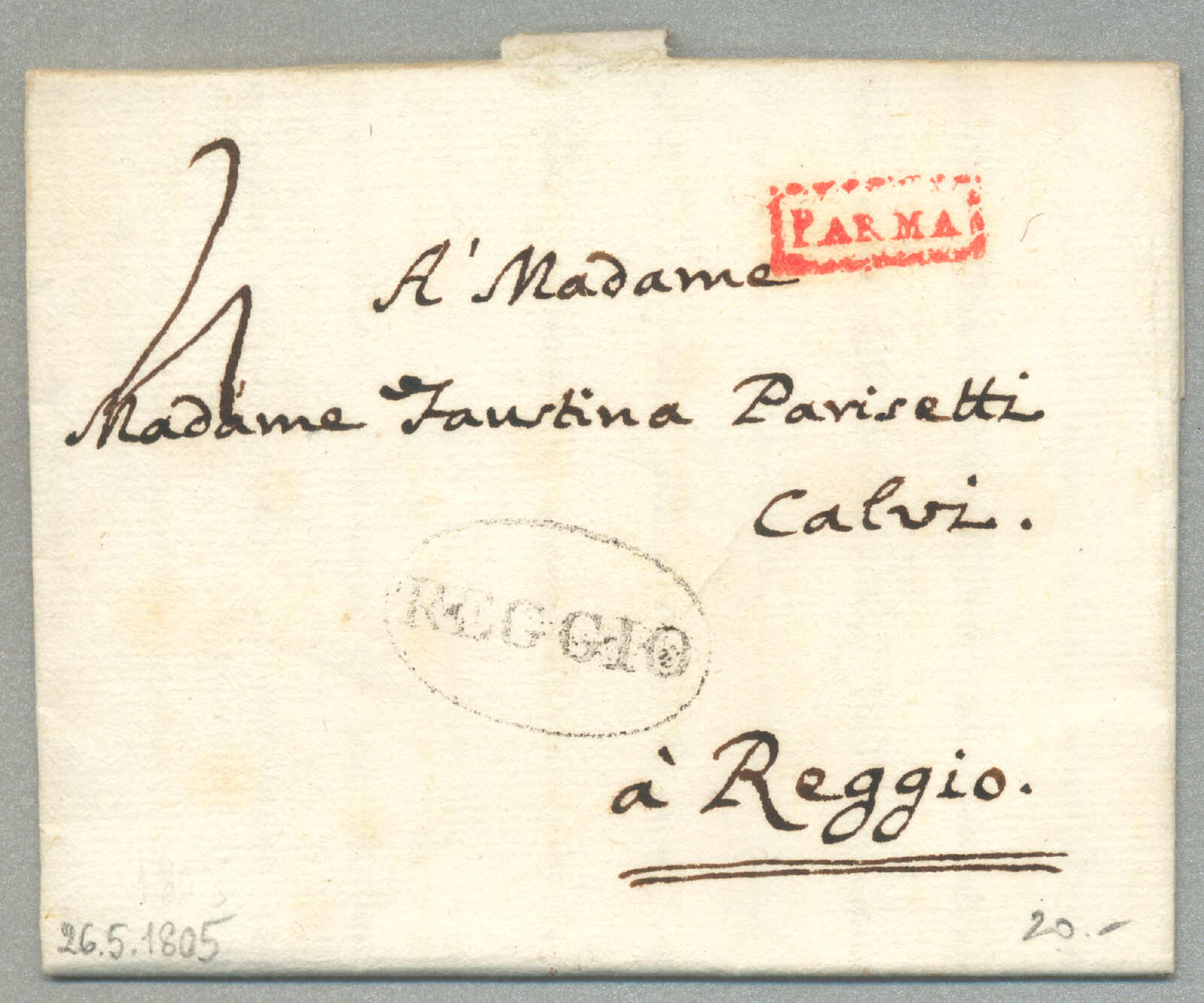 Automatisch generierte Übersetzung: 1805, mit sauberem Abschlag des rot Parma, Ankunft REGGIO, auf