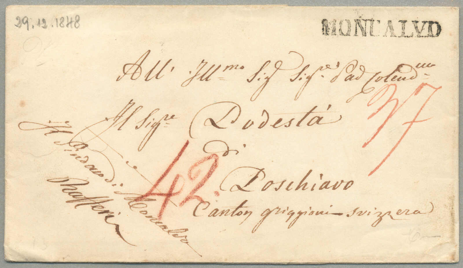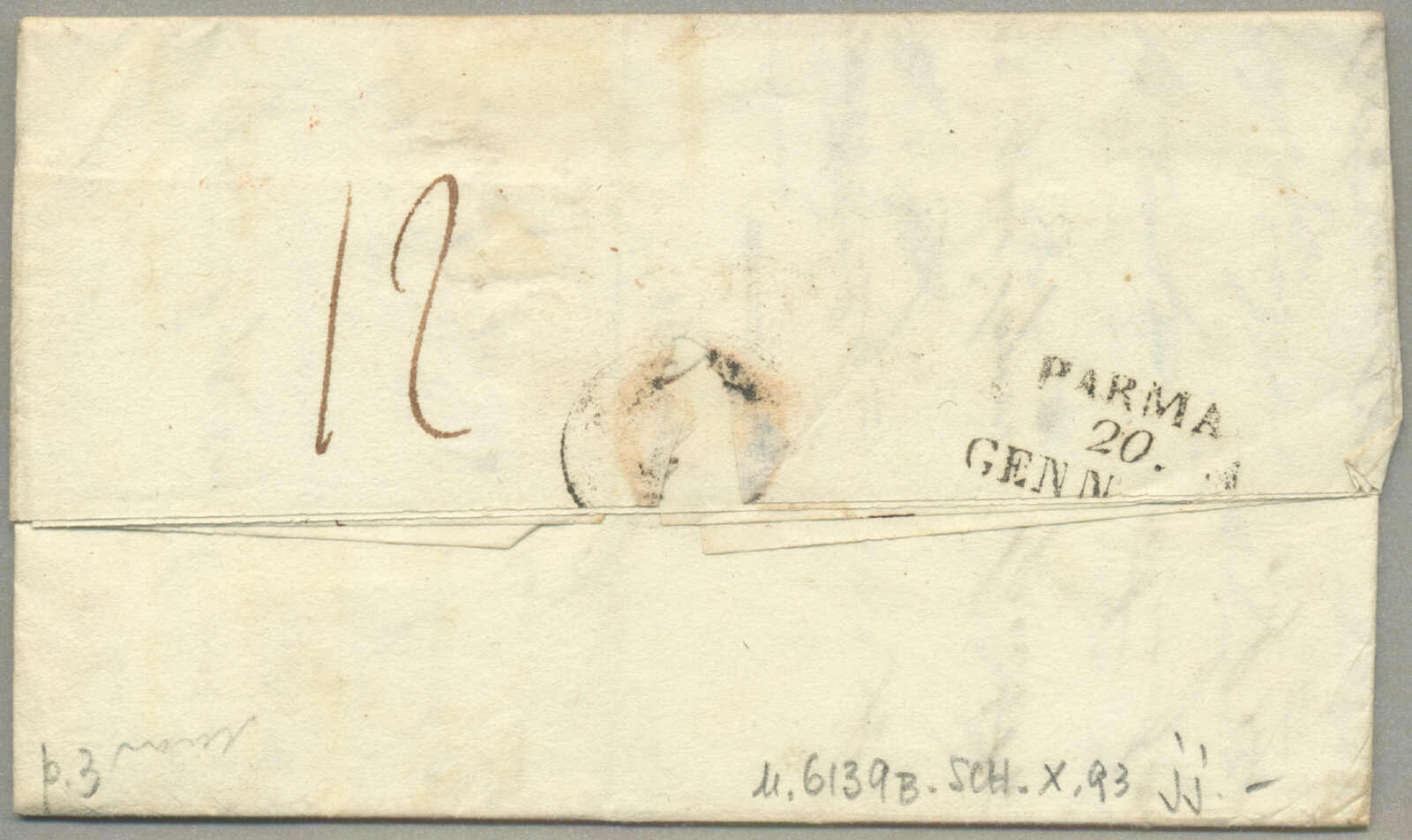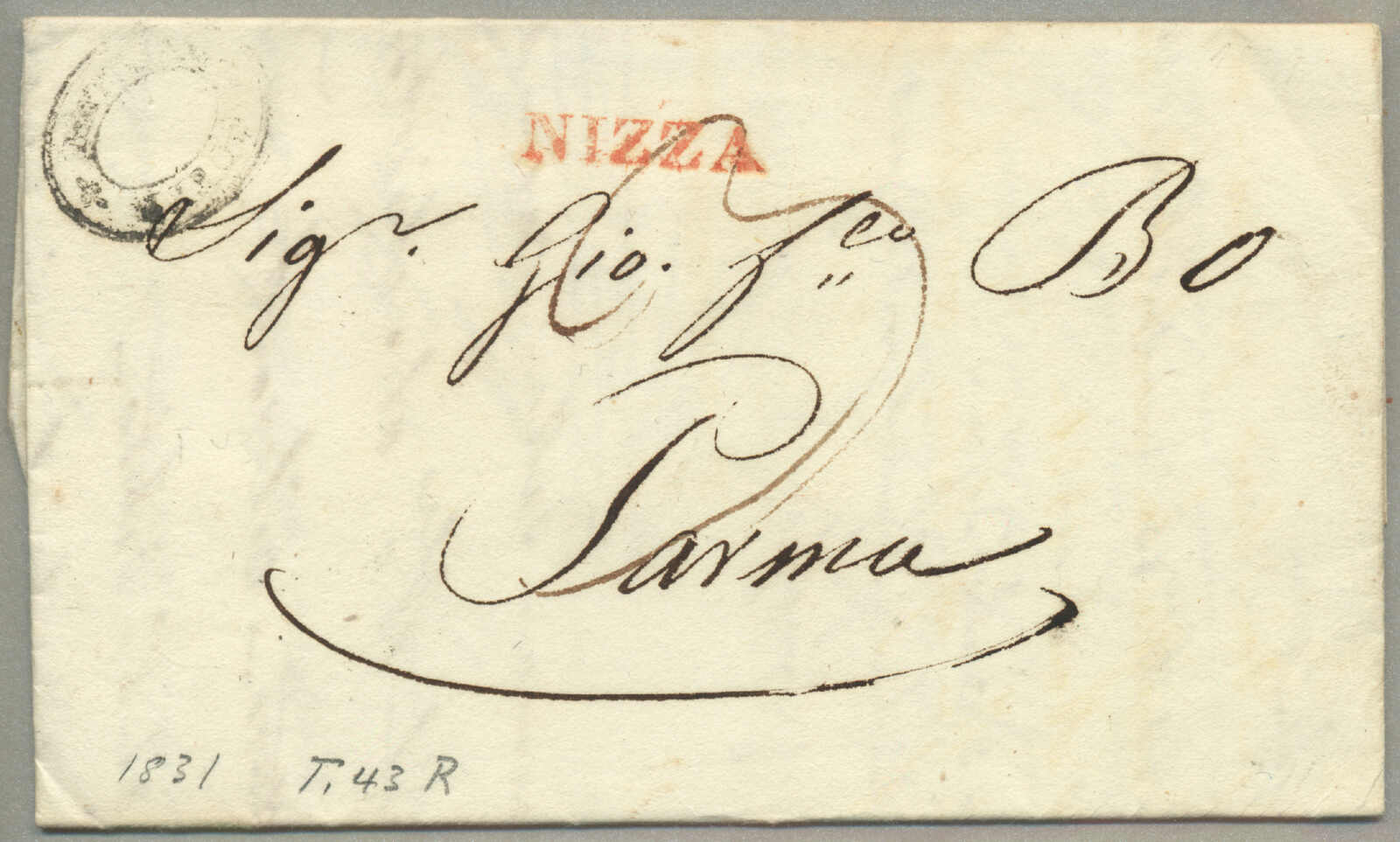 1805, with neatly strike of red PARMA, arrival REGGIO, on folded letter, ex Provera, XF! Estimate 200€.