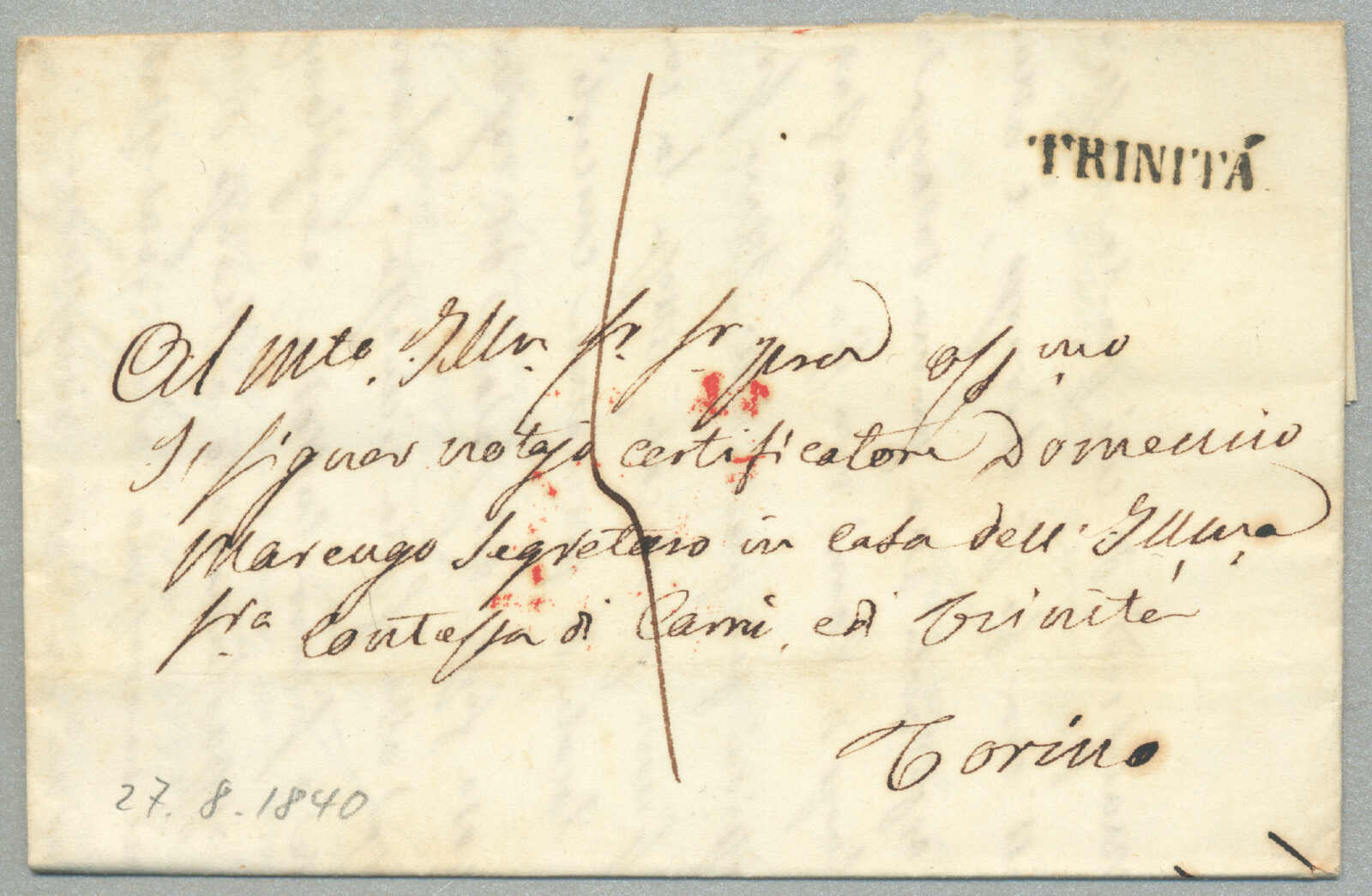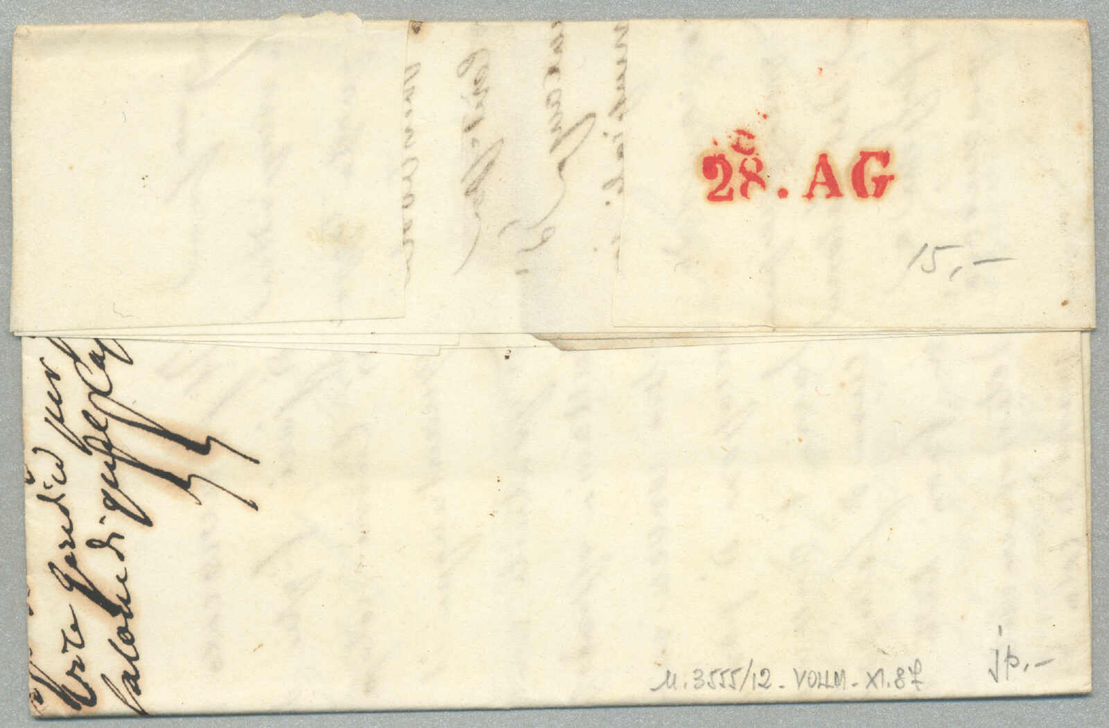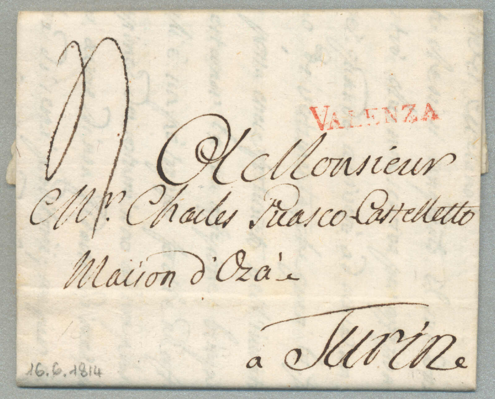 1805, with neatly strike of red PARMA, arrival REGGIO, on folded letter, ex Provera, XF! Estimate 200€.