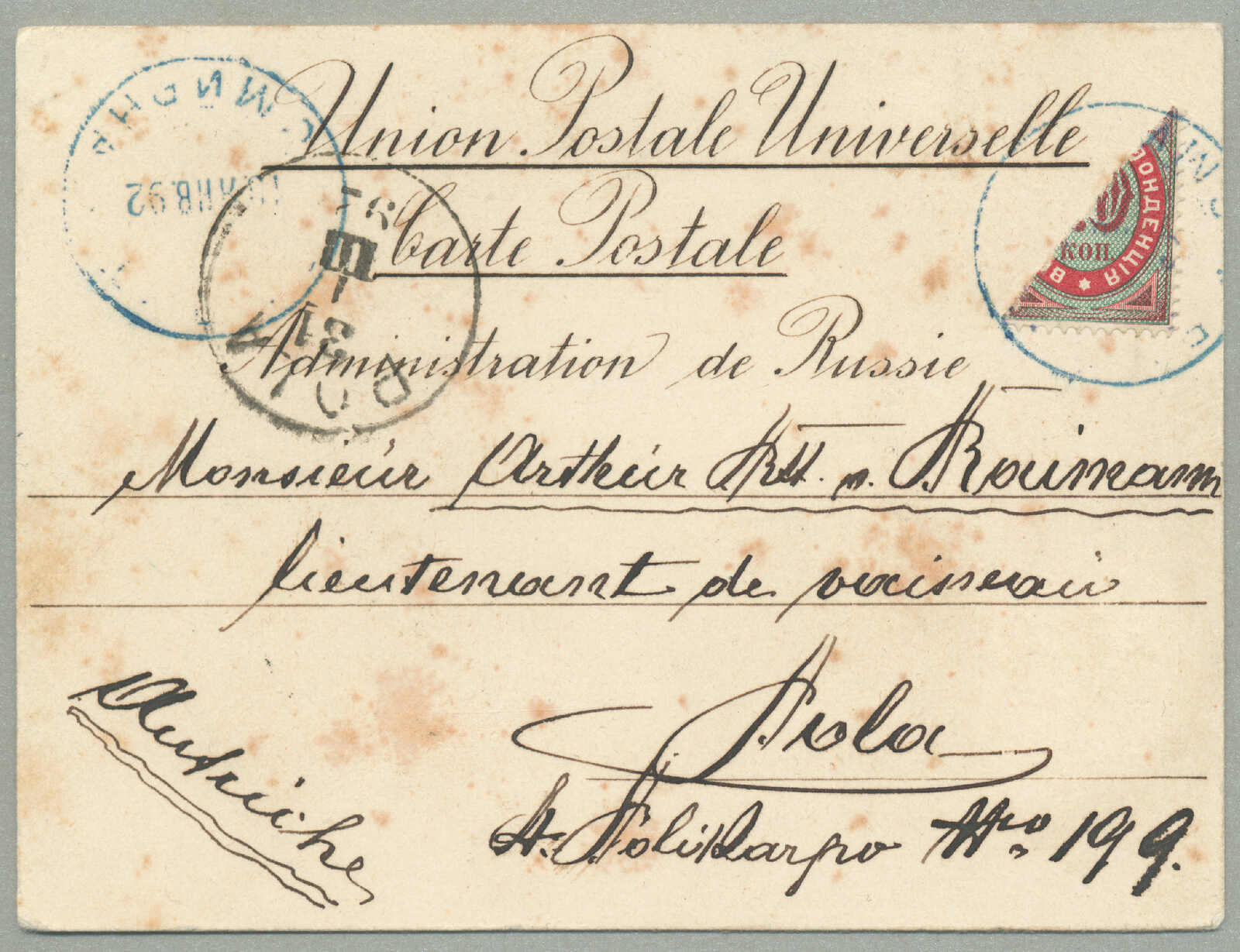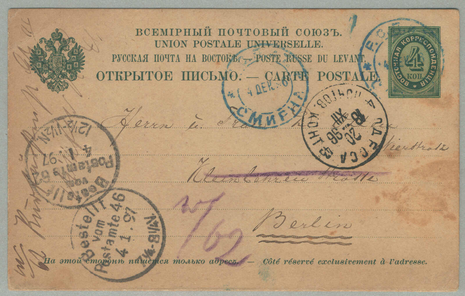 violet 13 Dywizja Piechoty and CENZUROWANE markings, used during the Polish–Soviet War, showing fieldpost, censorship and internal military routing, minor wear from handling, rare and desirable wartime item, ex Kugel, XF! Estimate