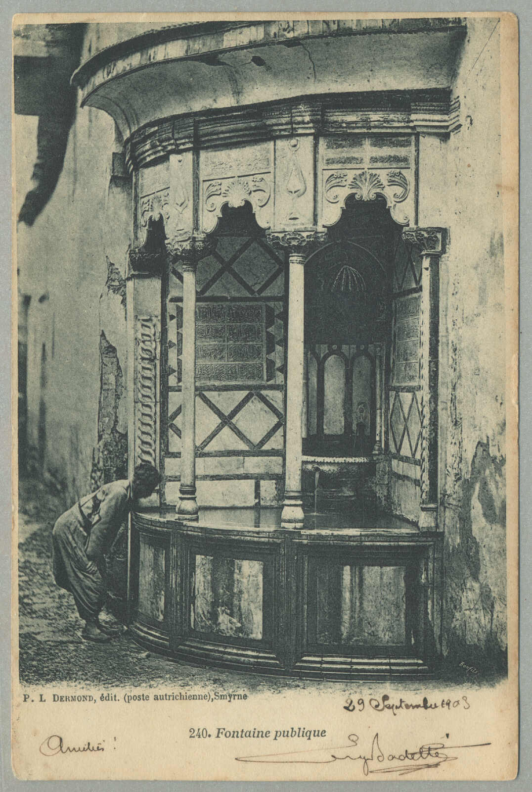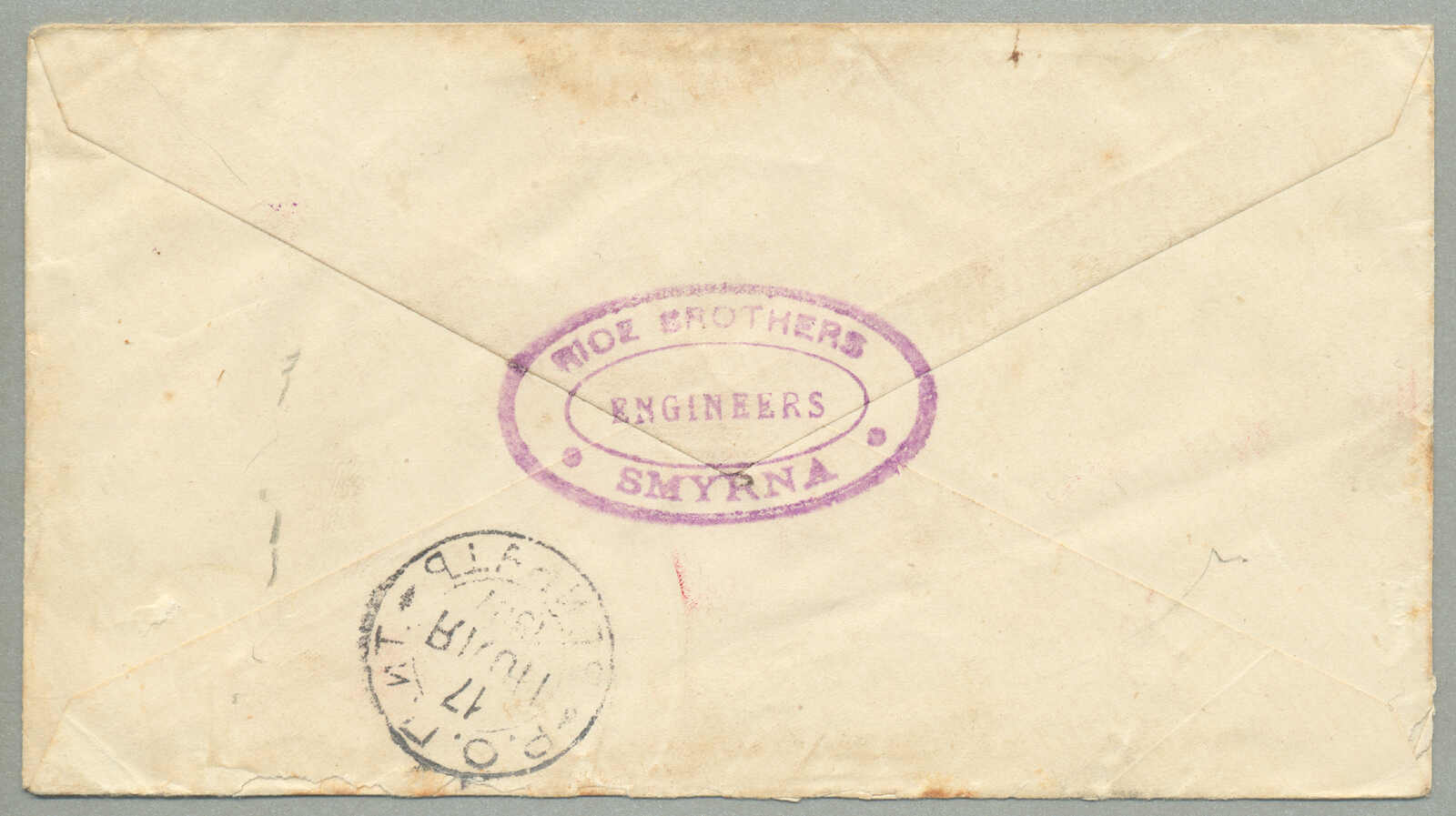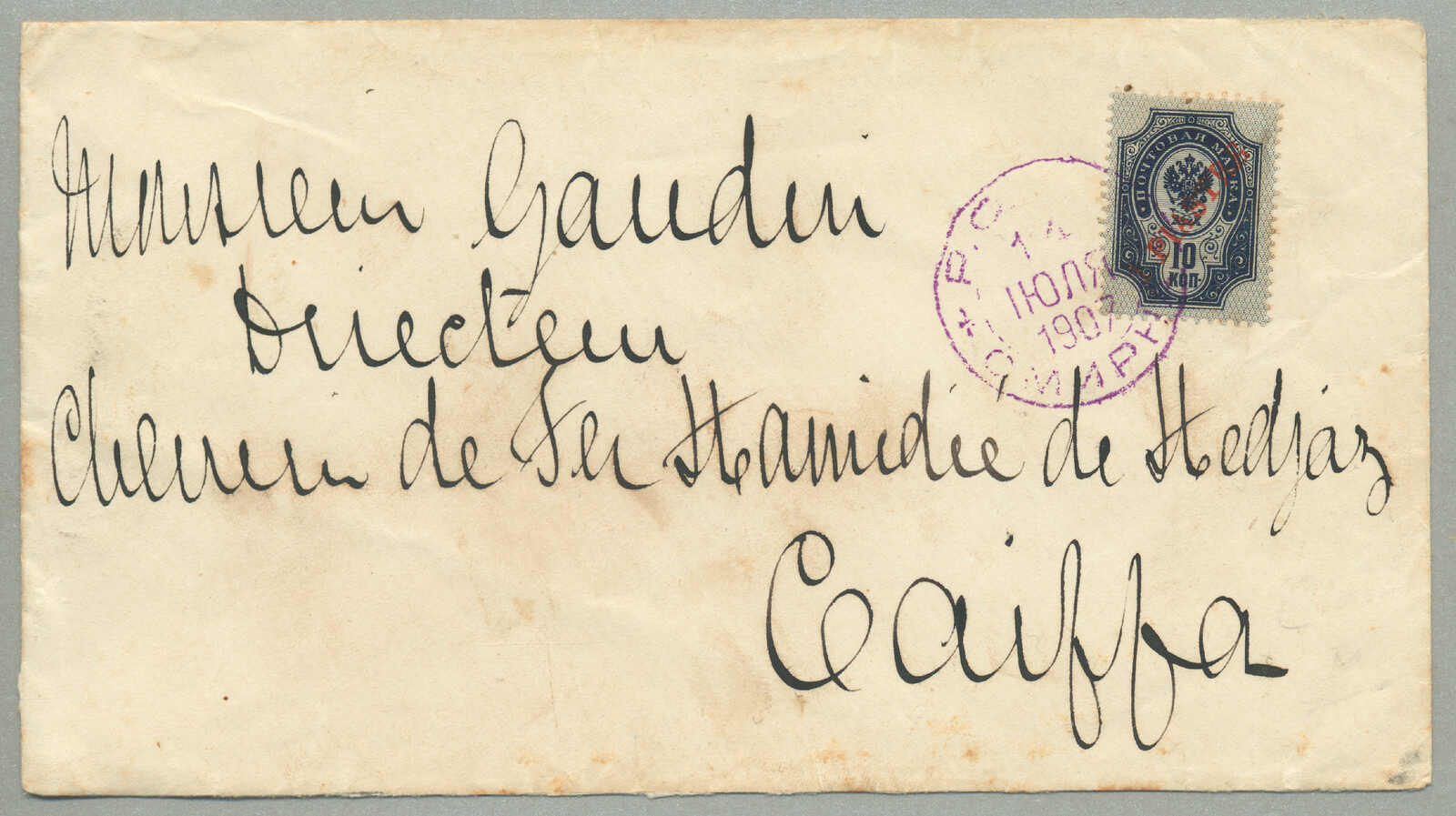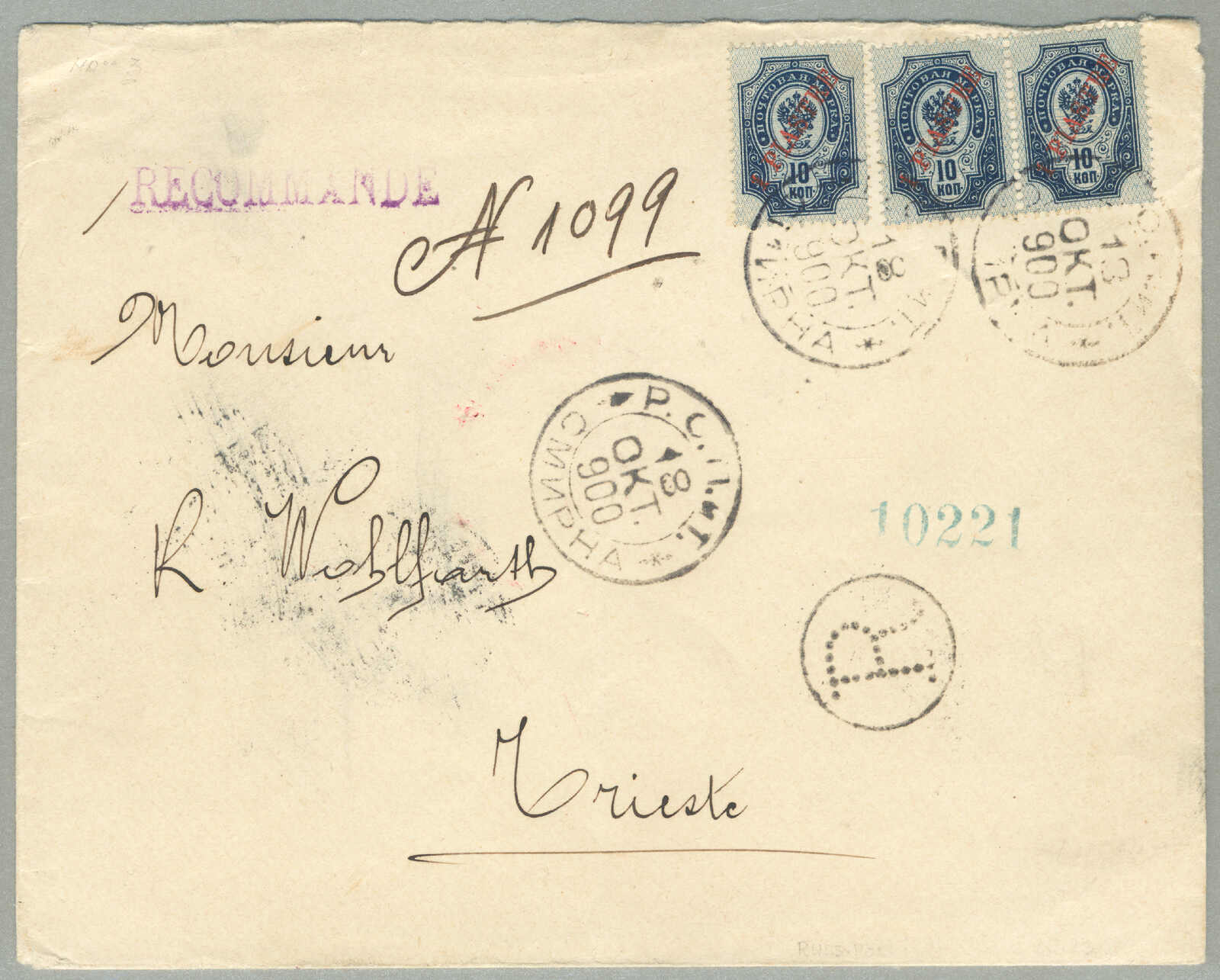 1905, 1pi. on 10 ko., blue, used and imprinted on letter card, from SMIRNE to TUCUMAN, Argentina, canceled with blue cds, Dotted R registered handstamp aside, script pencil no 874, reverse transfers CONSTANTINOPLE, ODESSA,