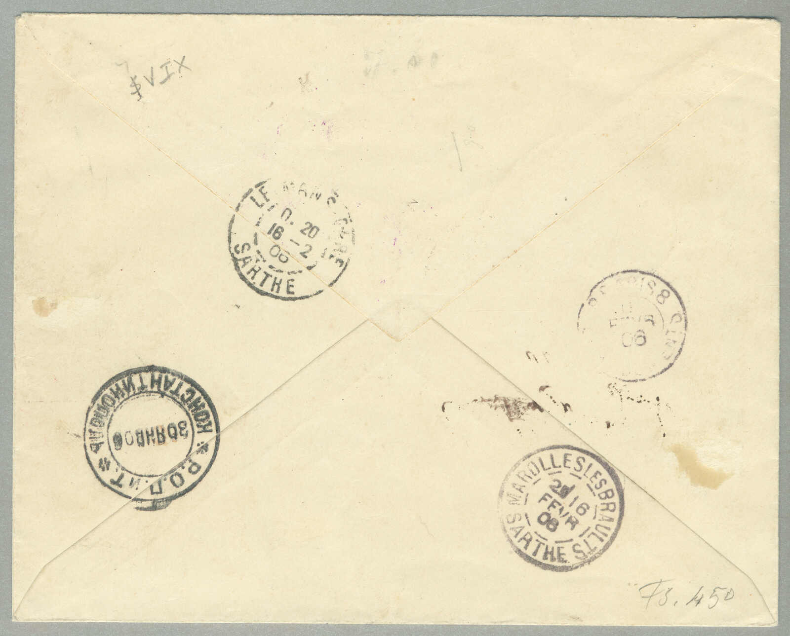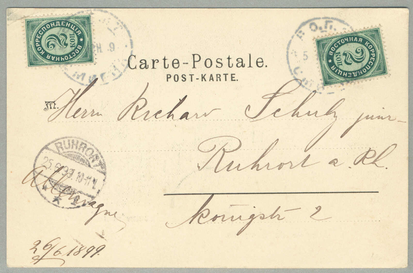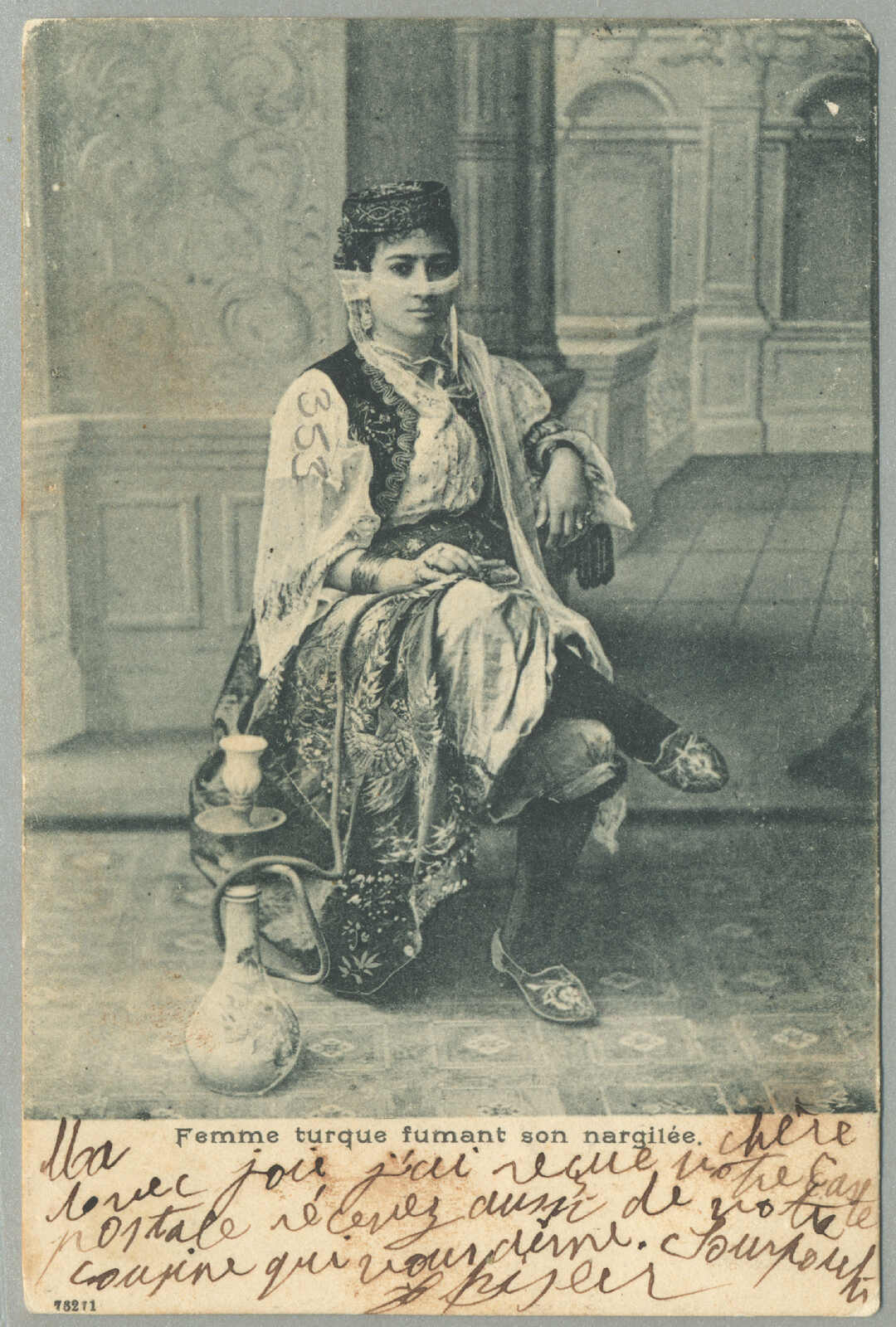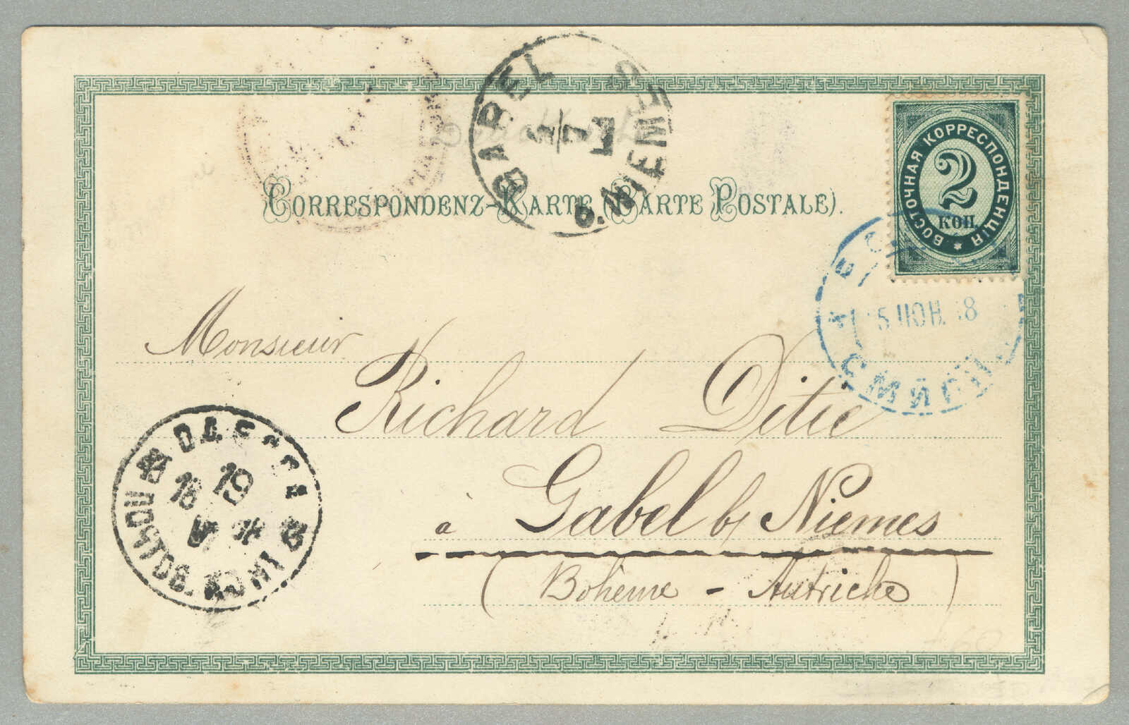 Argentinien, gestempelt mit blauem Kreisdatumsstempel, punktierter R Einschreibestempel beiseite, Schrift Bleistift nein 874, rückseitig schreibt um Konstantinopel, ODESSA, BUENOS AIRES und Ankunft TUCUMAN, interessant und gesucht, Pracht!