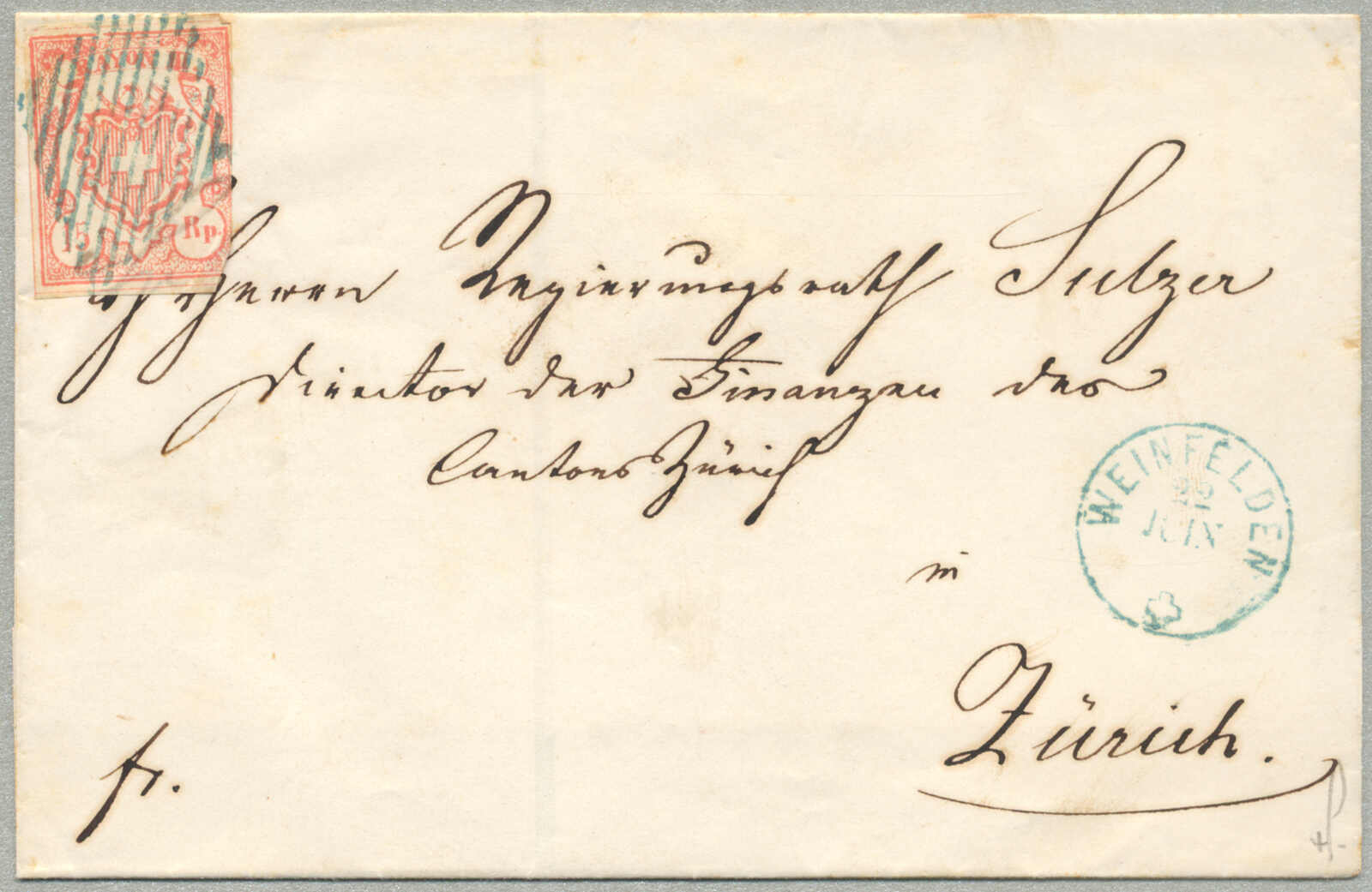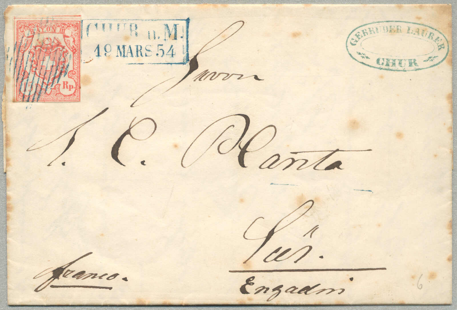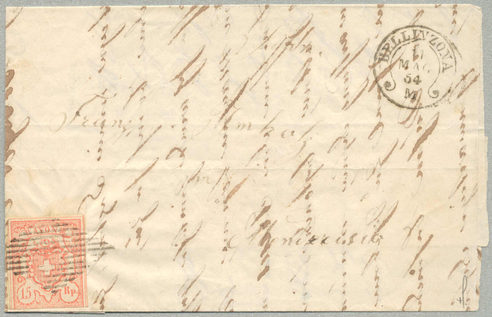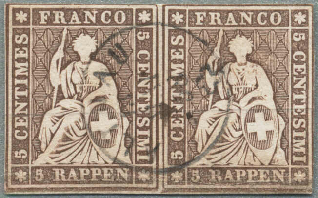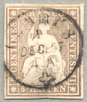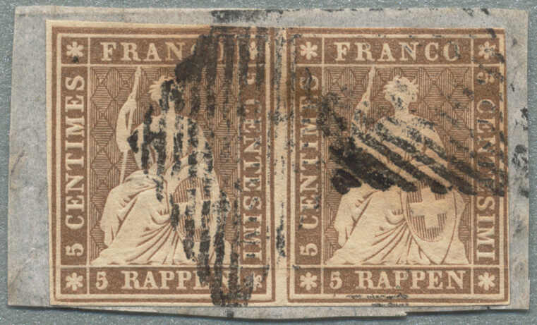 1851, 5+15 Cts, Rayon I+III, ungezähnt, 5 Rp - Type 2, C1-LU, 15 Rp, Type 10, auf Charge-Brief von SEMPACH nach LUZERN, gestempelt mit Bundesraute, Aufgabestempel SEMPACH und Gerichtsstempel, sehr gute Randerhaltung, Attest Zumstein,