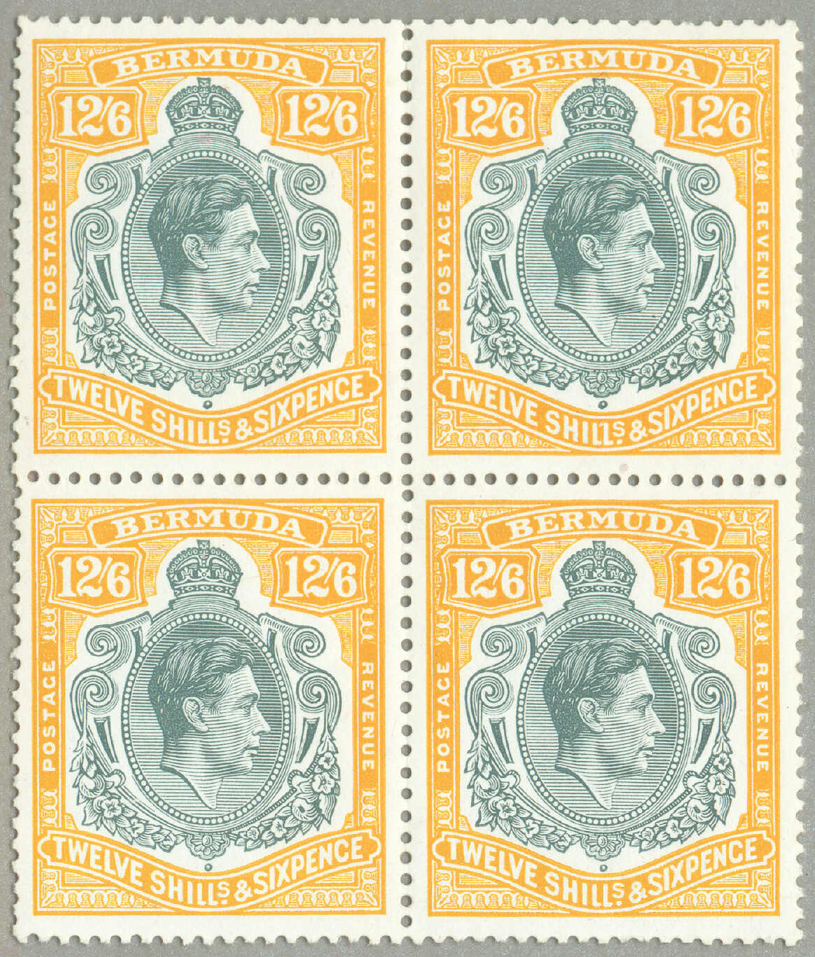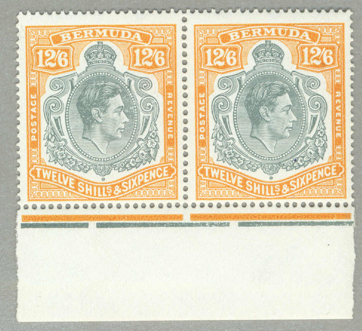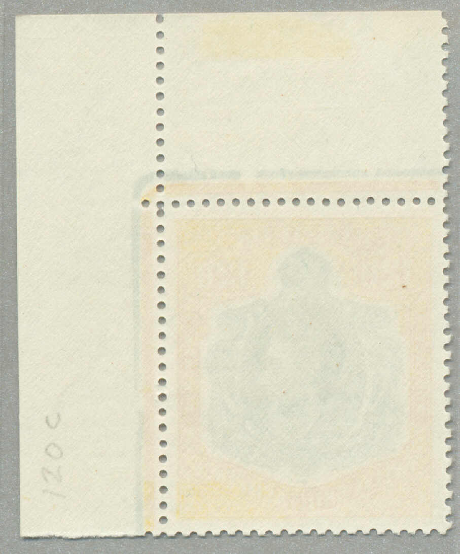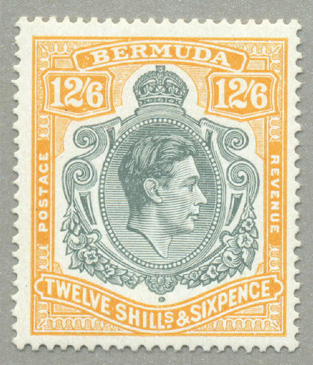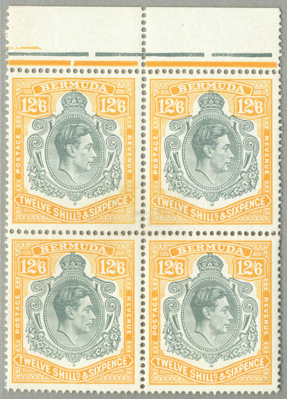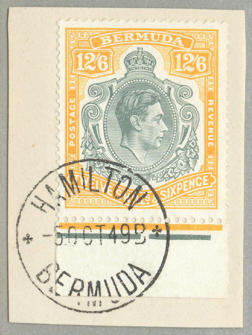 Automatisch generierte Übersetzung: 1938-53, £1, tief reddish-purple und schwarz / scharlachrot, gebrochene Rolle rechts, Feld 60, Reihe 5, Briefmarke 12, Wasserzeichen mehrfach Krone CA, Zähnung 13, großer Teil Originalgummi,