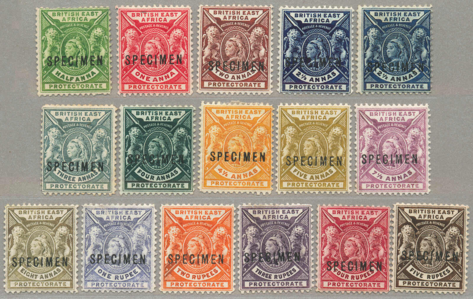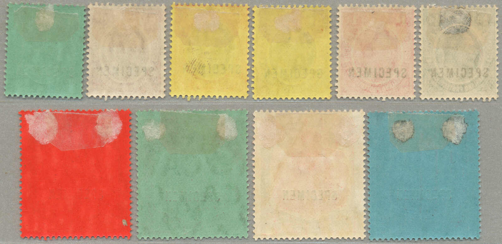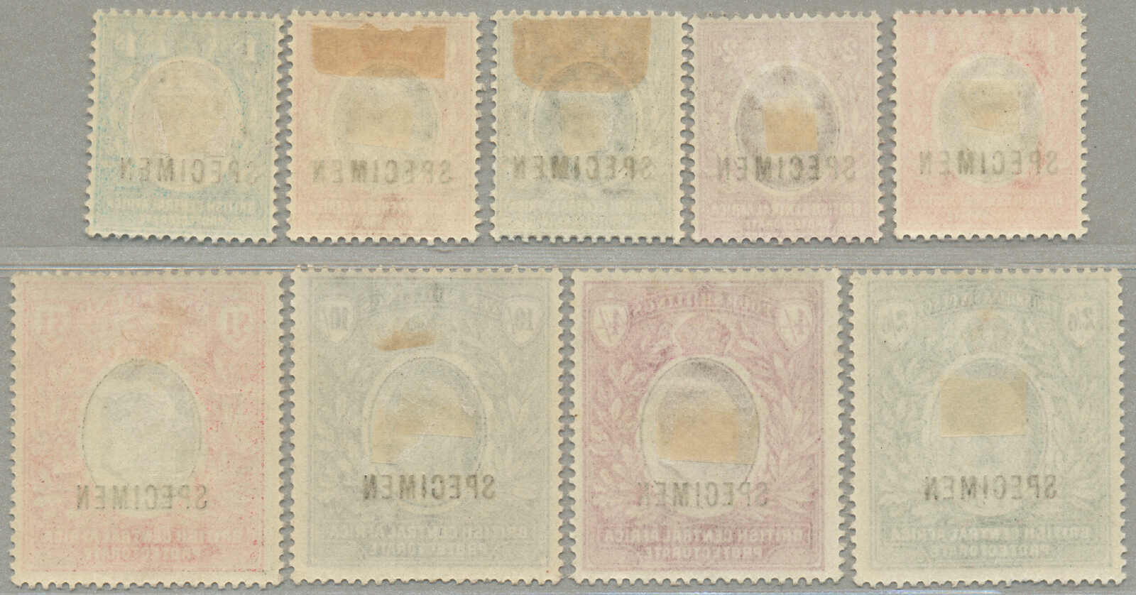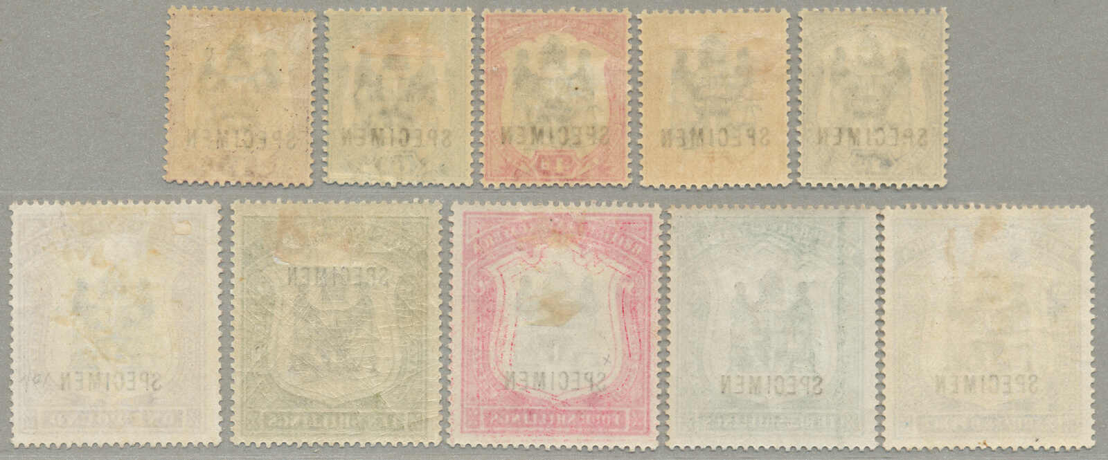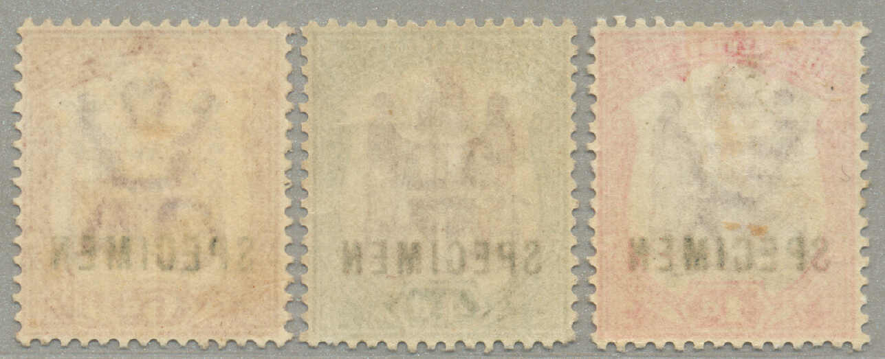 Übersetzung: 1896,1a-5R, kompletter Satz von (15 und 1 2 1 / 2 in violettblau), Specimen-Aufdruck, Zähnung 14, halb Satz mit ohne Gummi andere großer Teil Originalgummi, 1 / 2a mit kurzes Zahn oben, Katalogwert £370, ein gesuchter Satz,