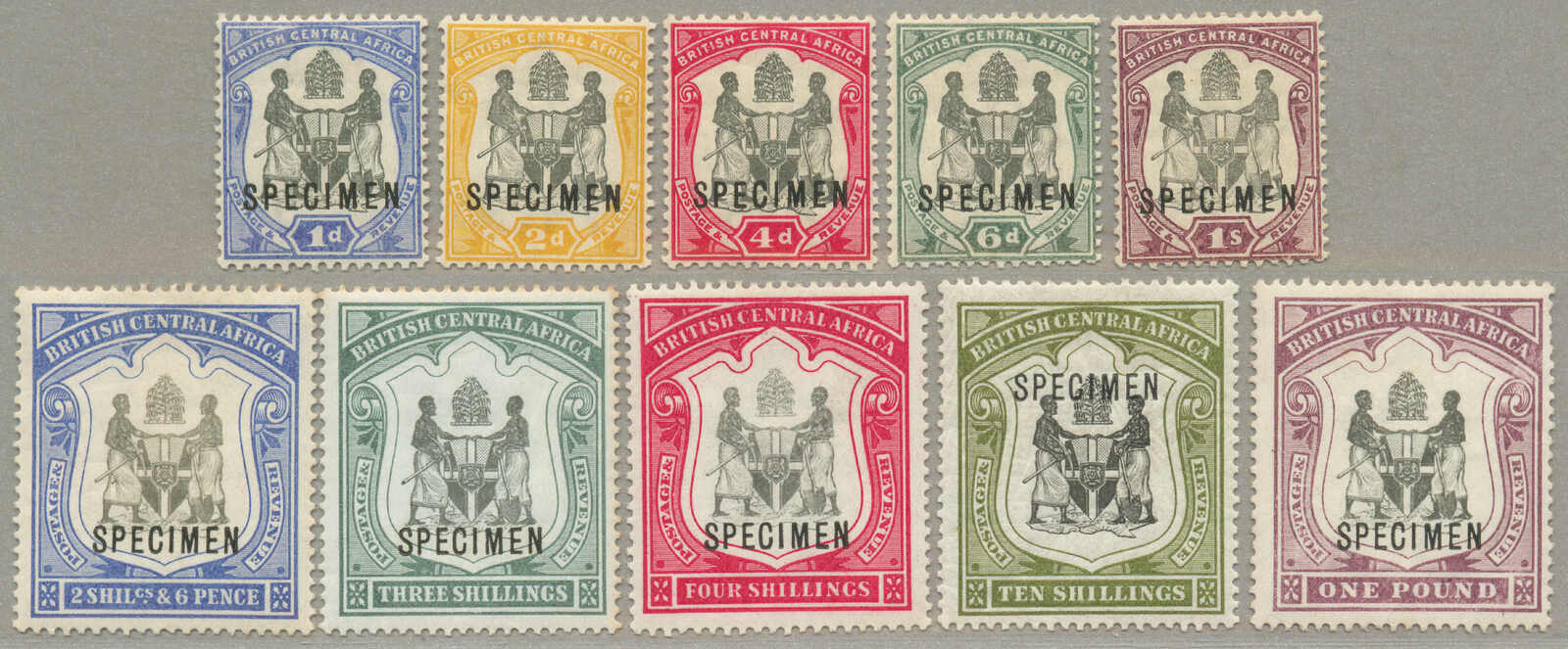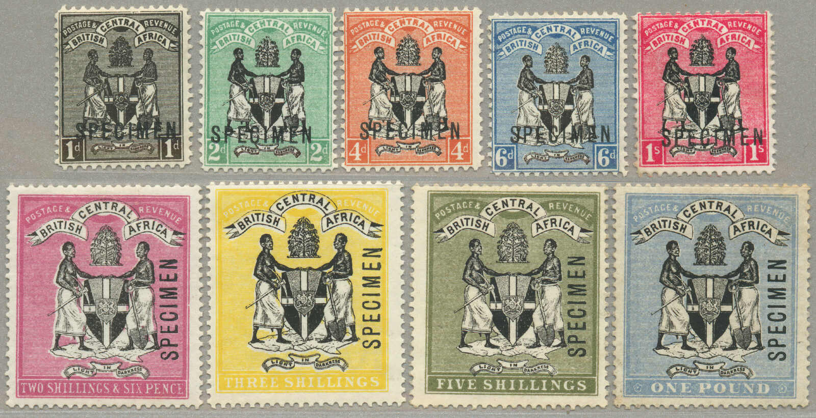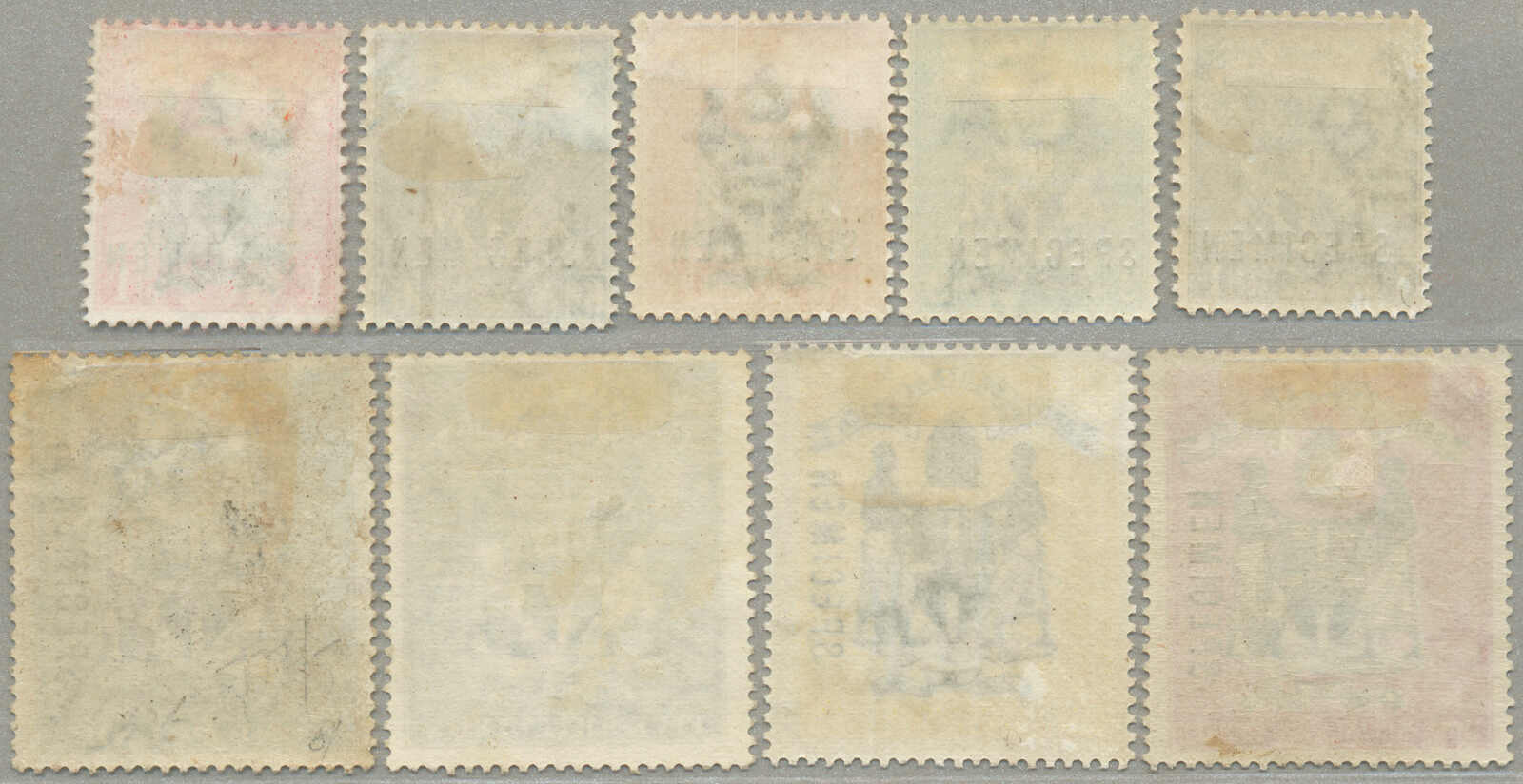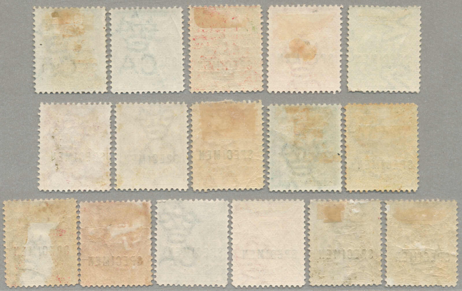 Übersetzung: 1896,1a-5R, kompletter Satz von (15 und 1 2 1 / 2 in violettblau), Specimen-Aufdruck, Zähnung 14, halb Satz mit ohne Gummi andere großer Teil Originalgummi, 1 / 2a mit kurzes Zahn oben, Katalogwert £370, ein gesuchter Satz,