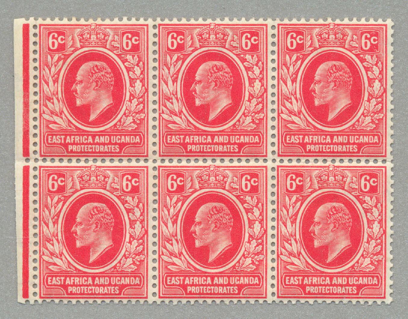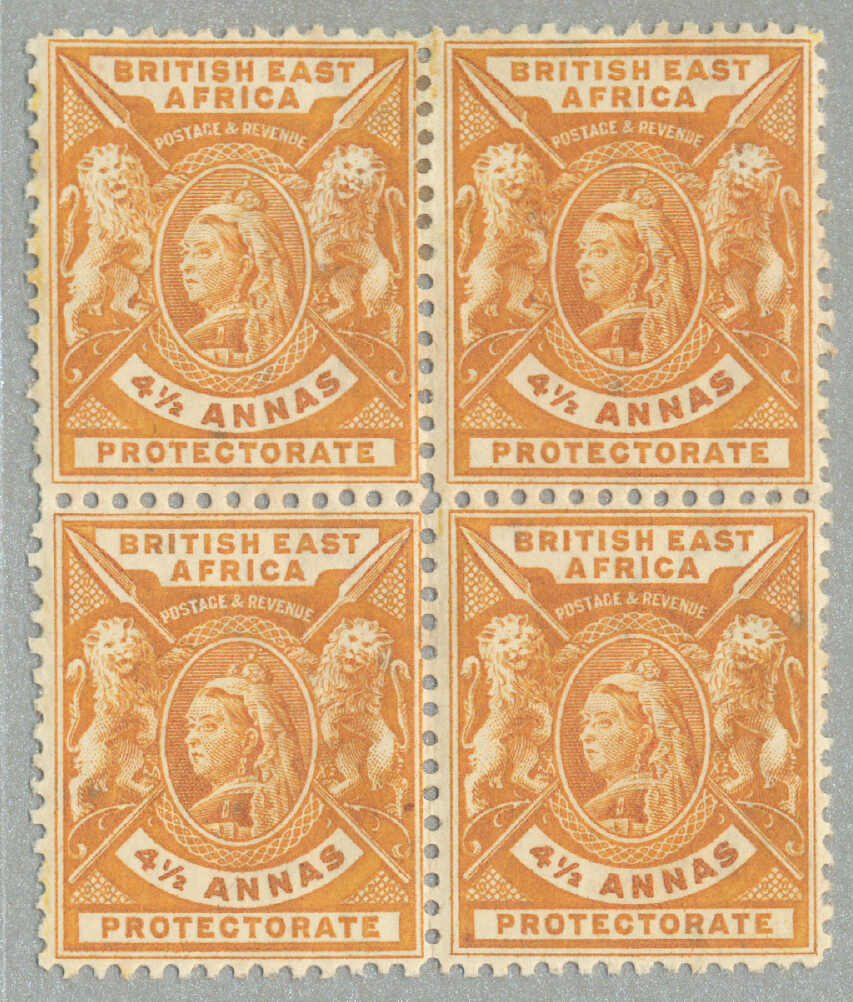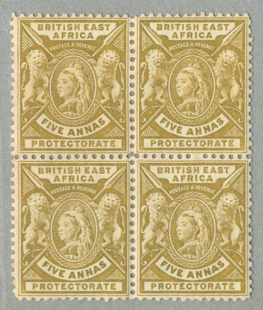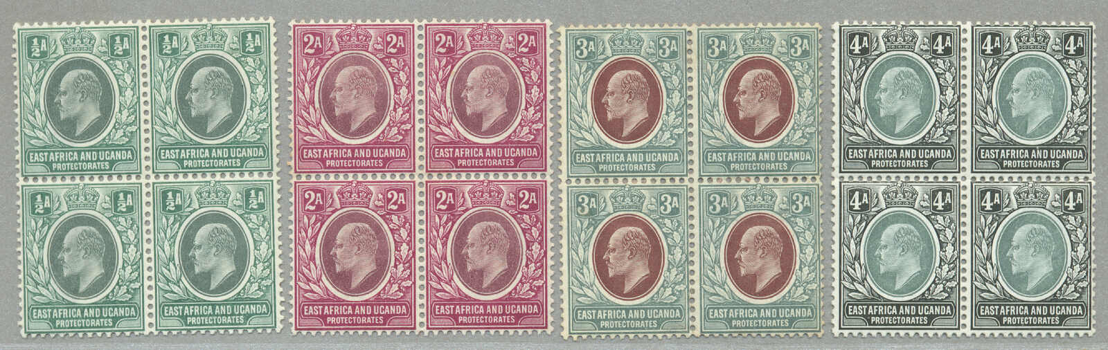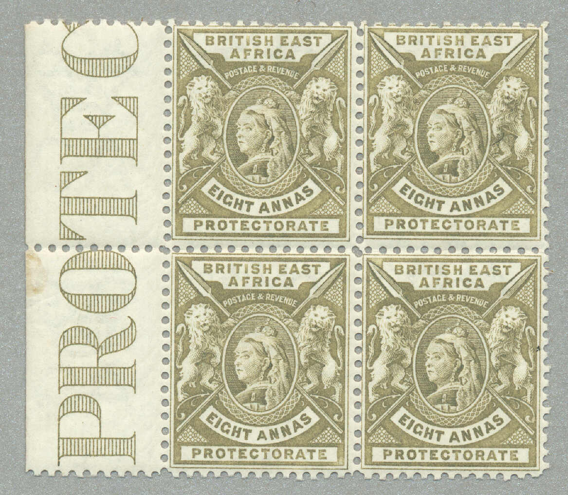 1896, 8a, grey olive, block of (4) with left margin and inscription PROTEC(TORATE), perf. 14, LPOG never hinged except small hinge in margin, CV £60++, fresh and desirable, VF-XF! set of (), perf. 14, LPOG, fresh and