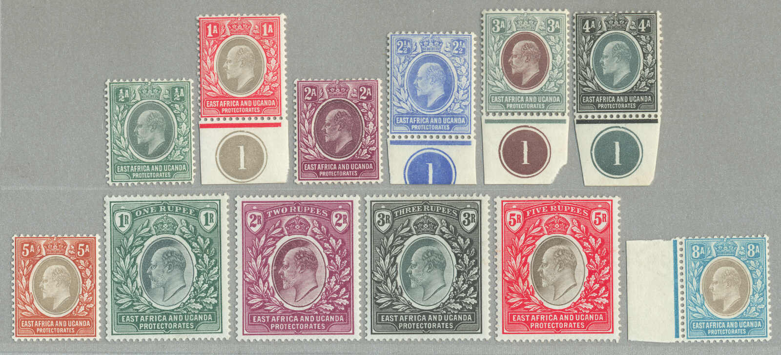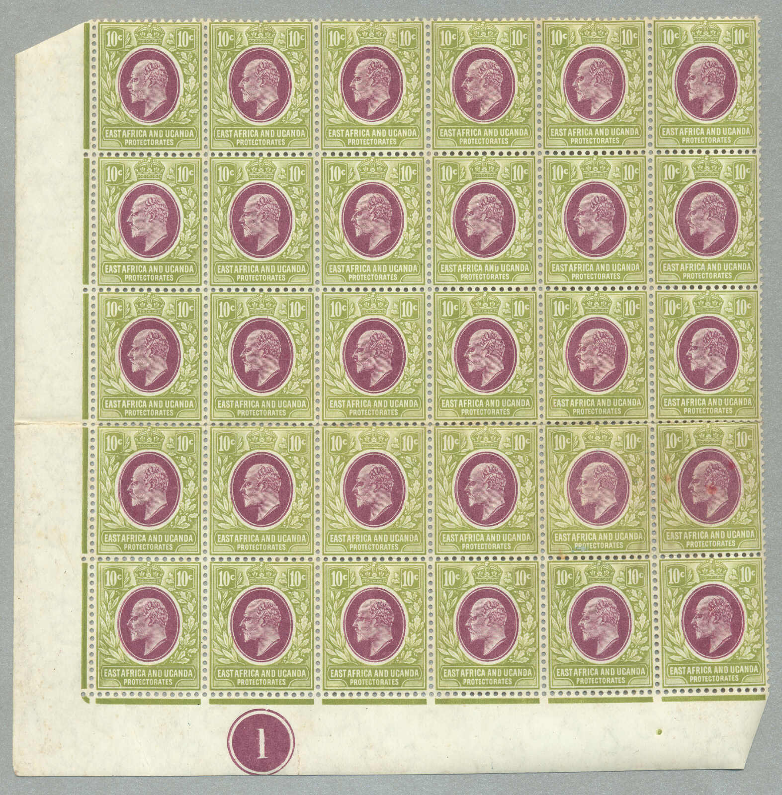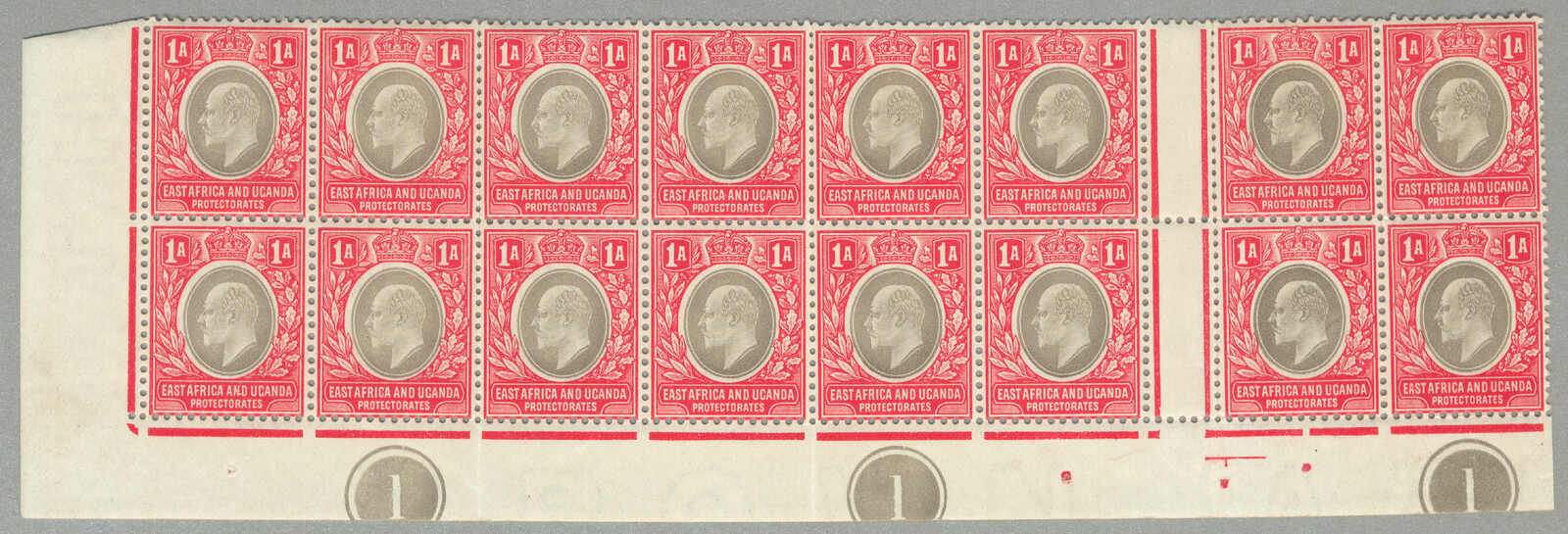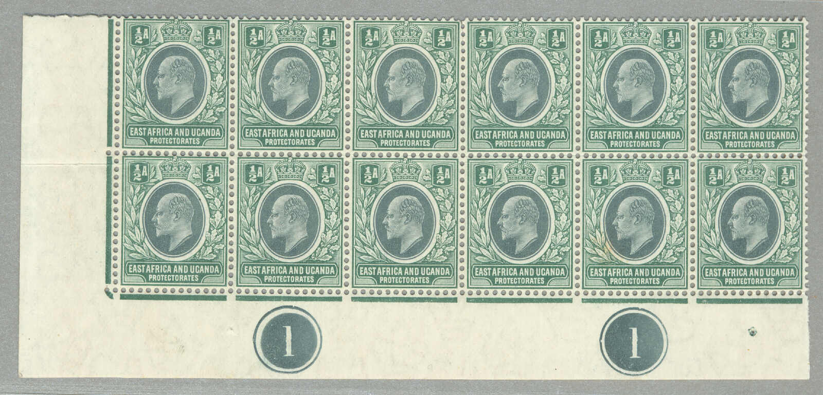 1896, 8a, grey olive, block of (4) with left margin and inscription PROTEC(TORATE), perf. 14, LPOG never hinged except small hinge in margin, CV £60++, fresh and desirable, VF-XF! set of (), perf. 14, LPOG, fresh and