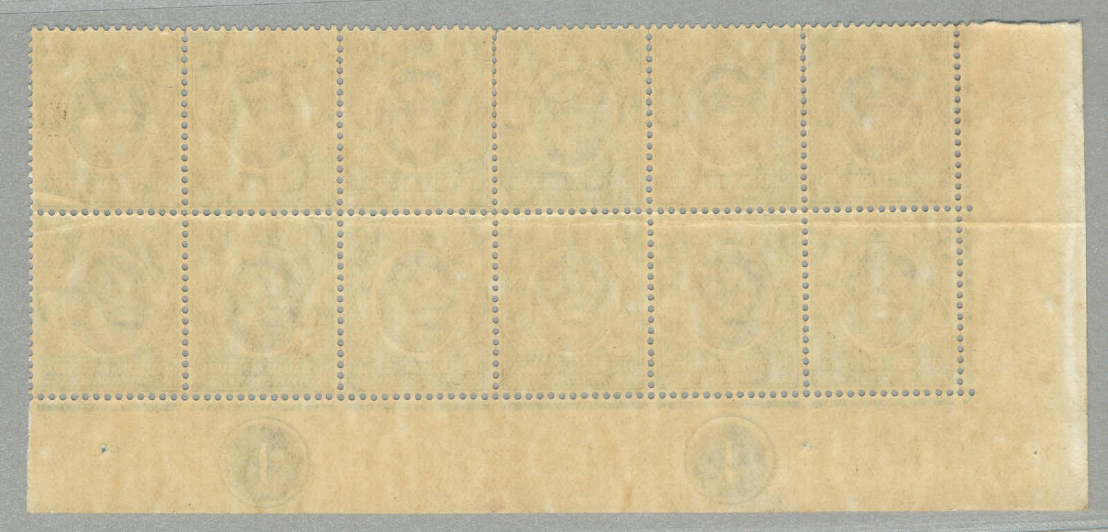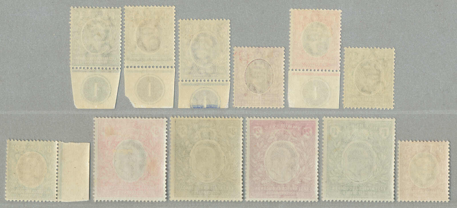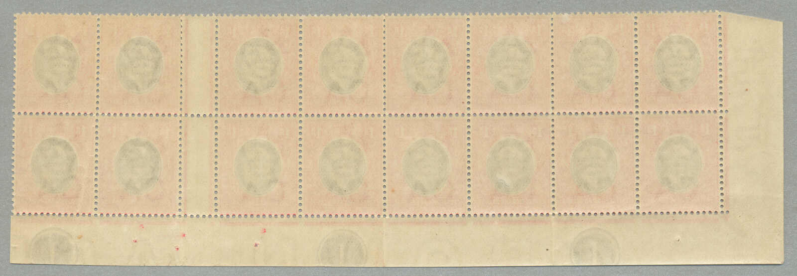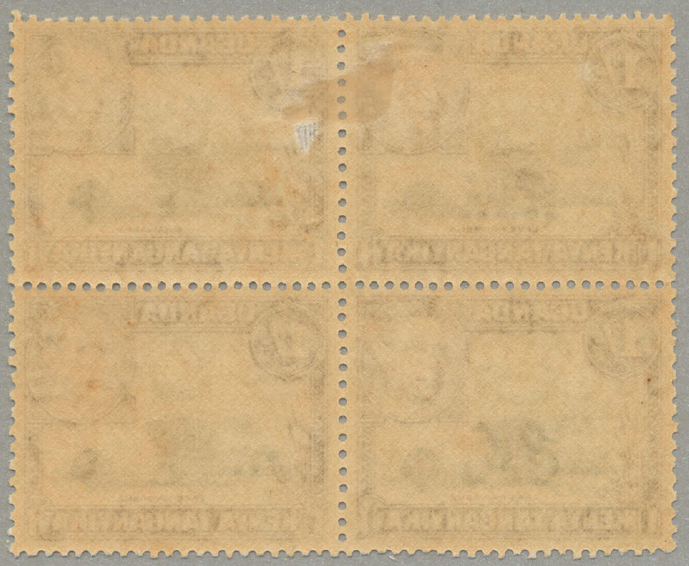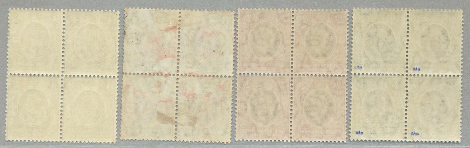 Automatisch generierte Übersetzung: 1896,8a, grauoliv, Viererblock mit linkem Rand und Aufschrift PROTEC (TORATE), Zähnung 14, großer Teil Originalgummi postfrisch außer Erstfalz im Rand,