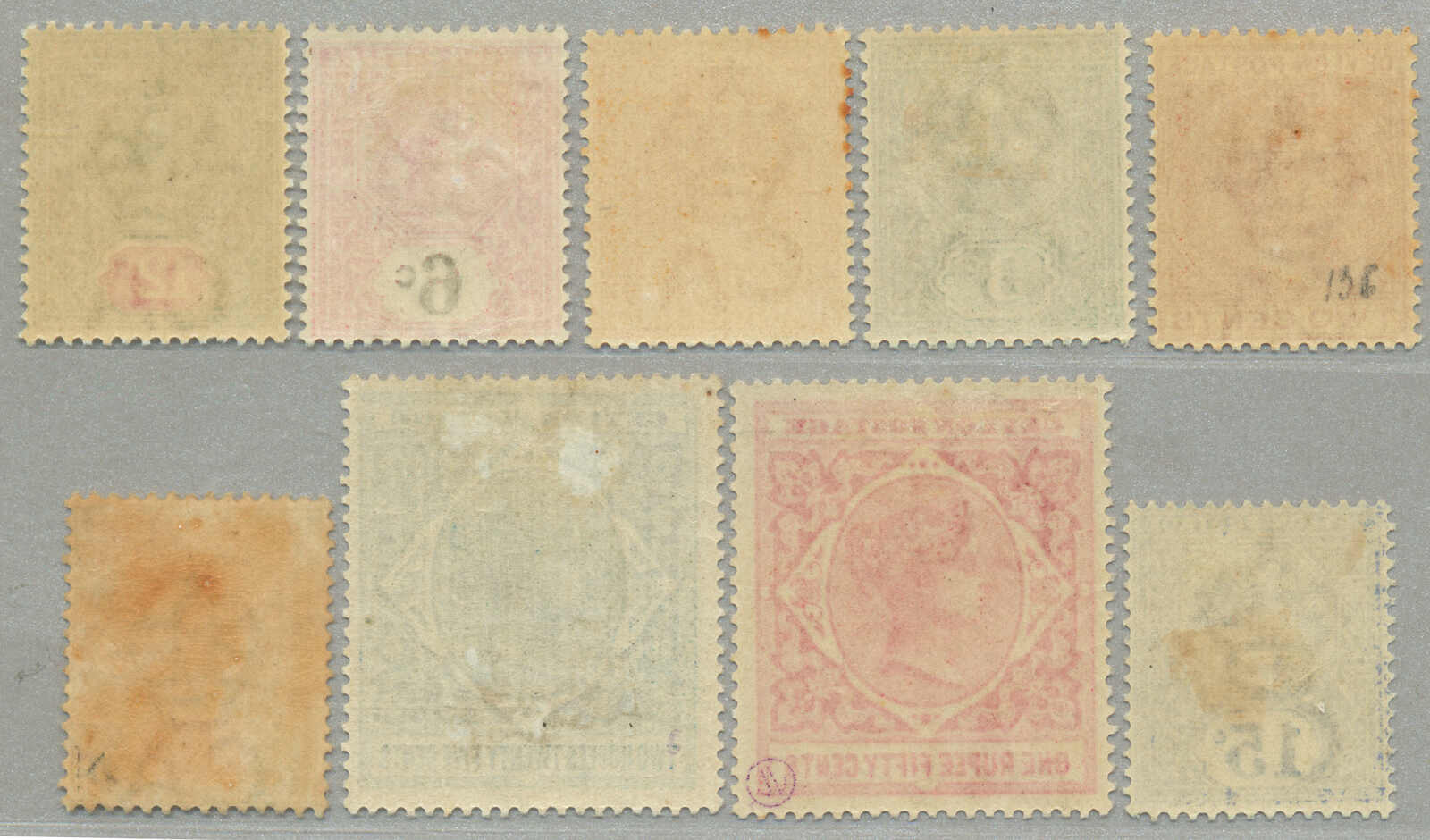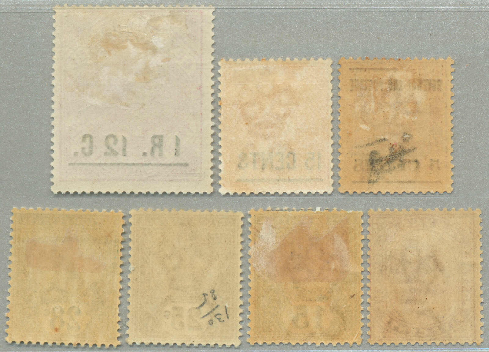 Übersetzung: 1899-1900, 1 r. 50, rosa, 2 r. 25, mattblau (2), beide Aufdruck Muster in schwarz und ULTRAMAR in blau, Zähnung 14, Wasserzeichen CA / CC, großer Teil Originalgummi postfrisch, interessant und gesucht, XF-SUP! Schätzpreis
