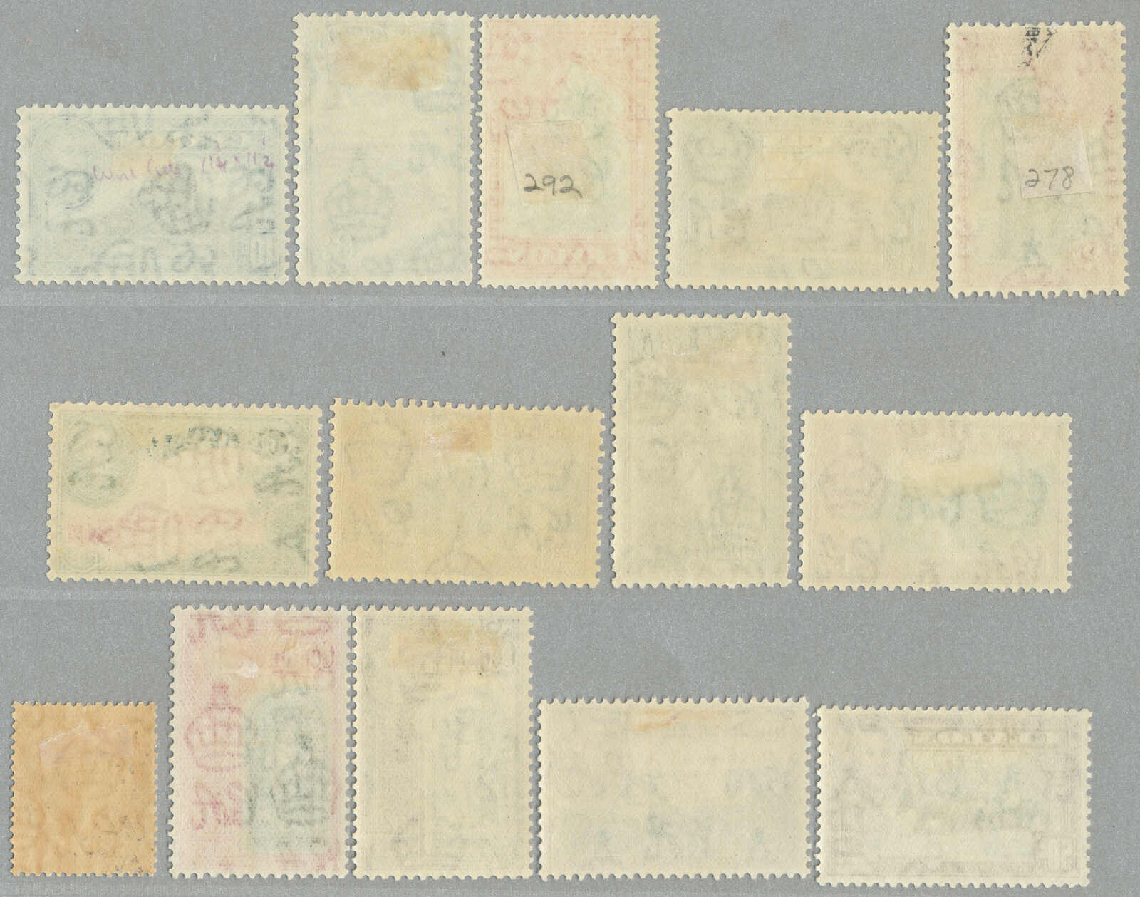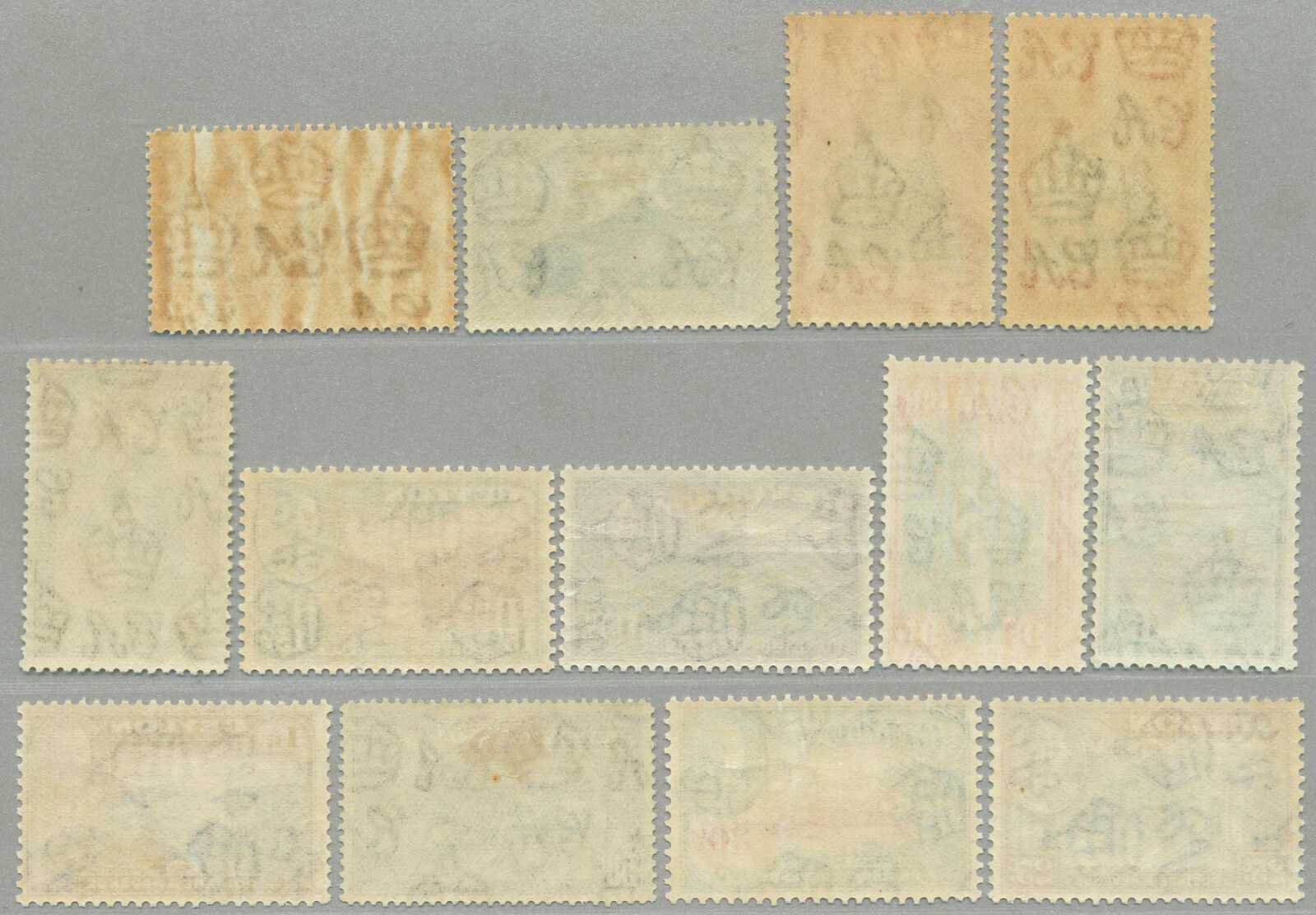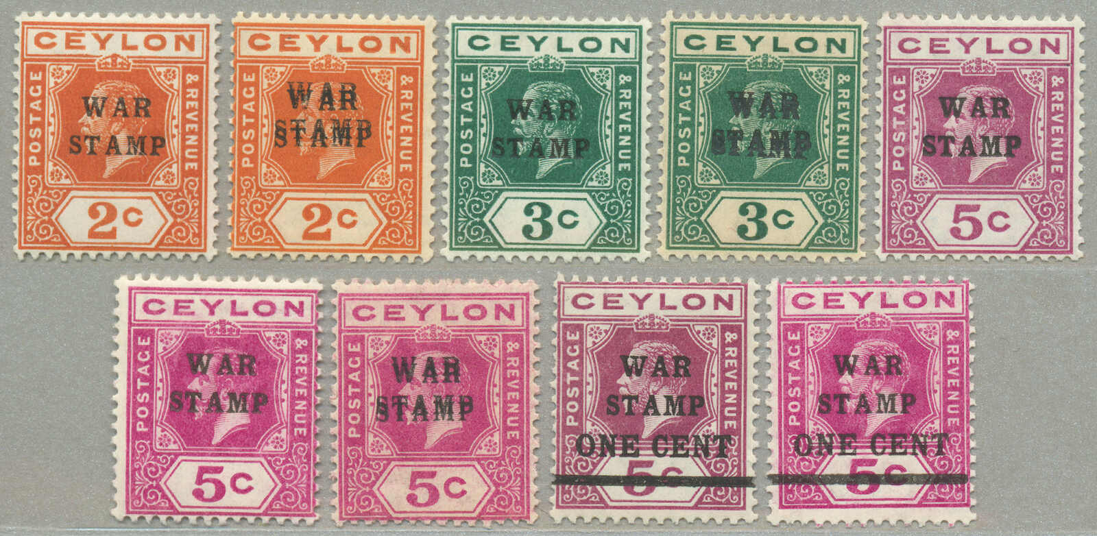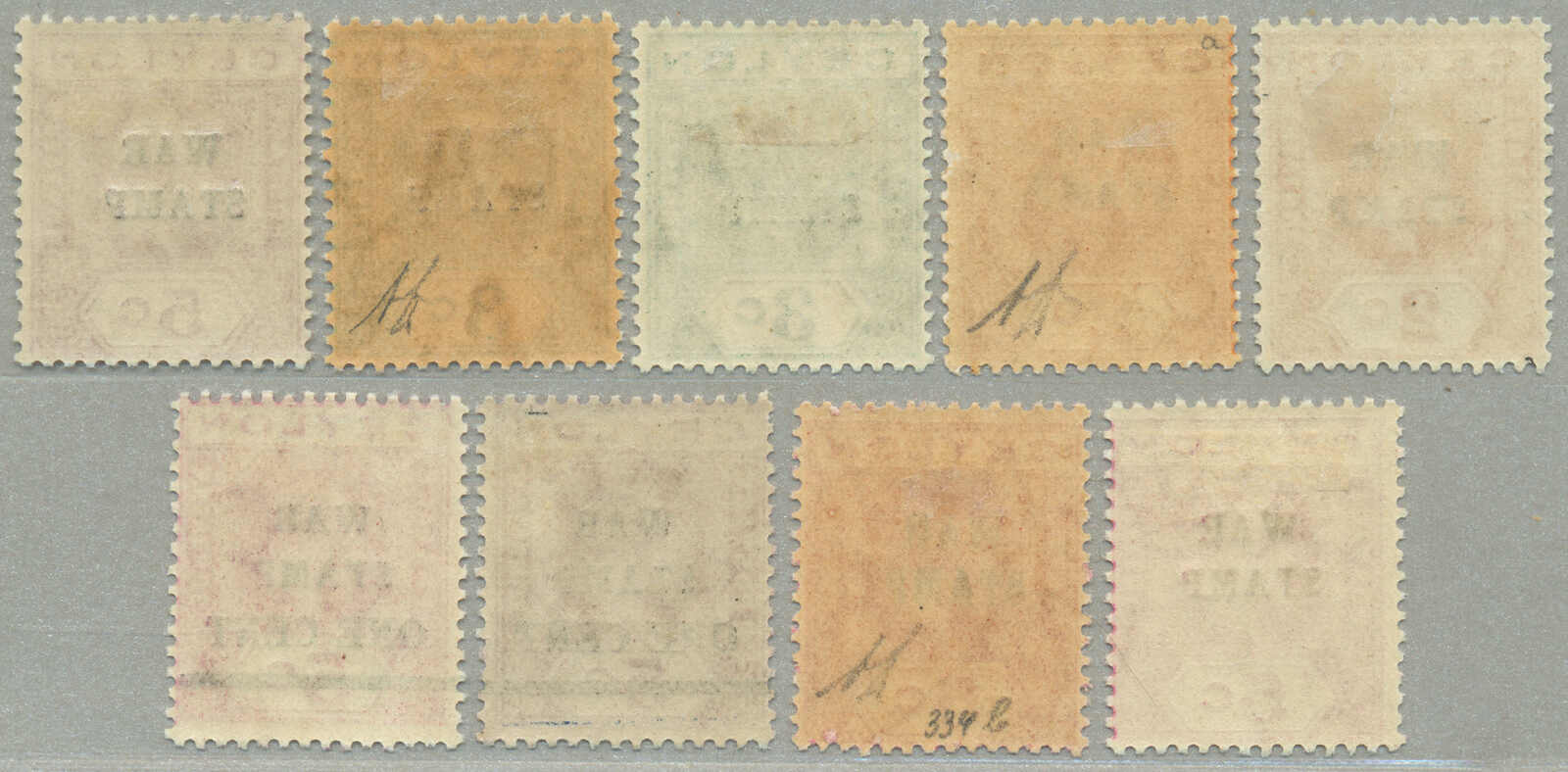 Automatisch generierte Übersetzung: 1918-19, zwei vollständige Sätze mit zusätzlichem 3 Abarten Doppelaufdruck, (9), Überdruck WAR Briefmarke / WAR Briefmarke ein CENT, 3 signiert A. Diena, großer Teil Originalgummi, interressant, VF-XF! Schätzpreis 220. (SG 330-336, 330b, 332a,