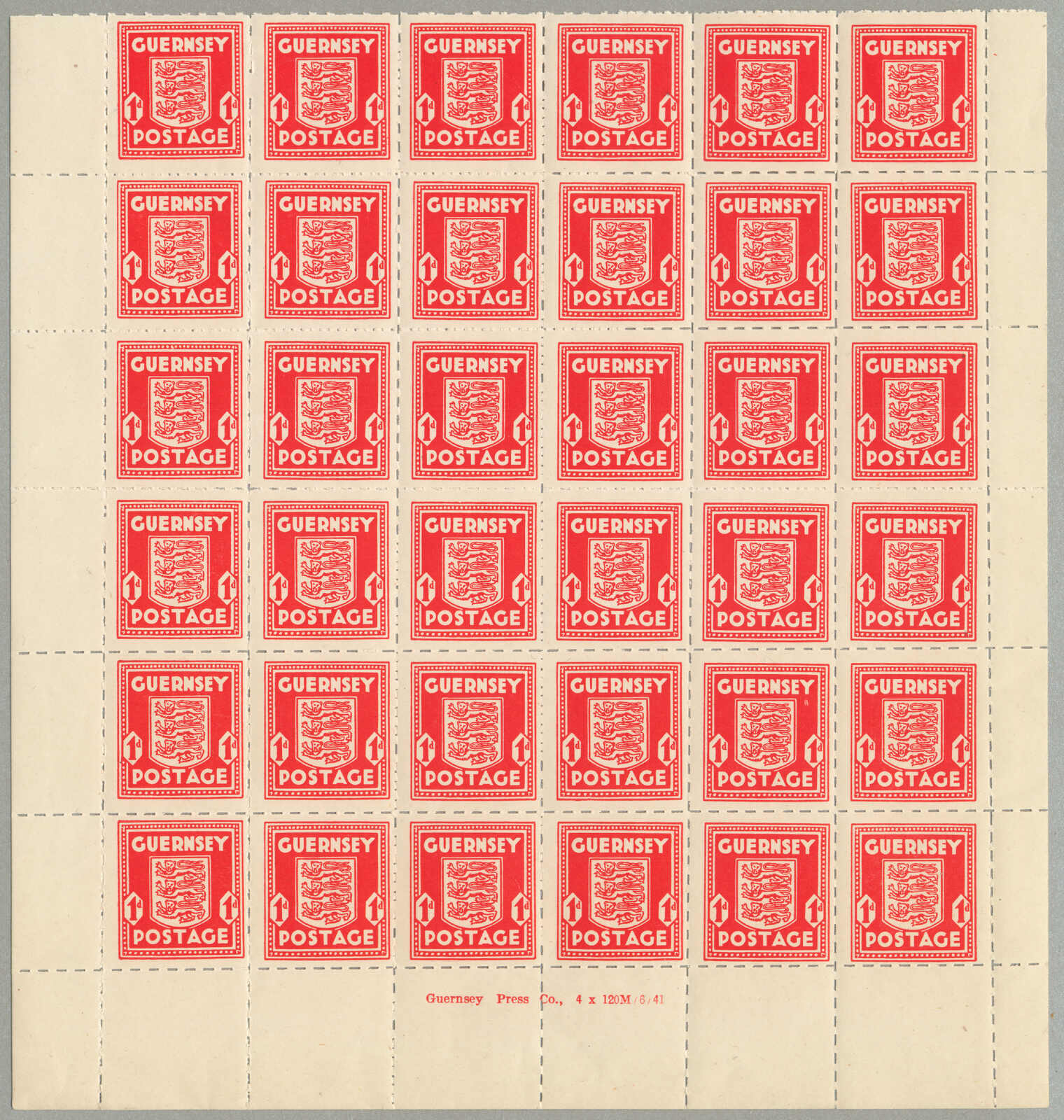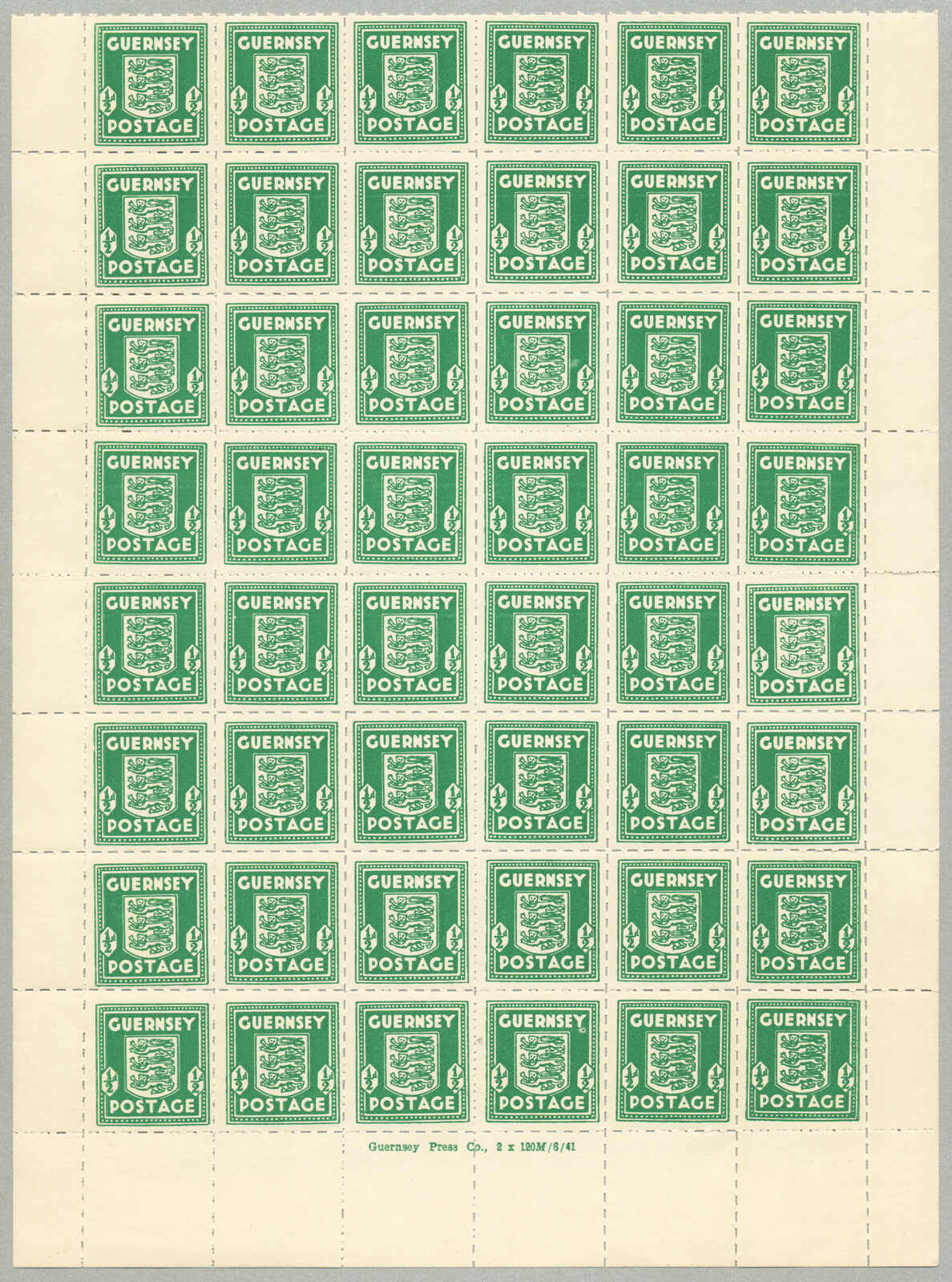 Automatisch generierte Übersetzung: 1941,1 / 2 d. hellgrün, waagrechter Viererstreifen, 1 d., scharlachrot, 6x 2 Zwölferblock und 2x 4 Achterblock, mit Rändern befestigt, großer Teil