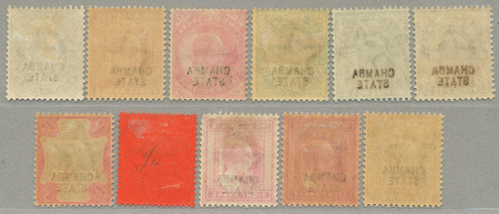 1884, official government in full sheets printed essays for a not issued stamp sold to the public - so called imitation of 8a purple fiscal stamp on laid paper, watermark Crown over INDIA, perforated 14, overprinted SERVICE