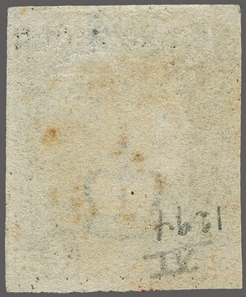 on page 442. Seal missing on reverse and two file folds well away from the adhesive but of great rarity. Cert. BPA (1989) Gi A1vd = £ 15'000. (Image
