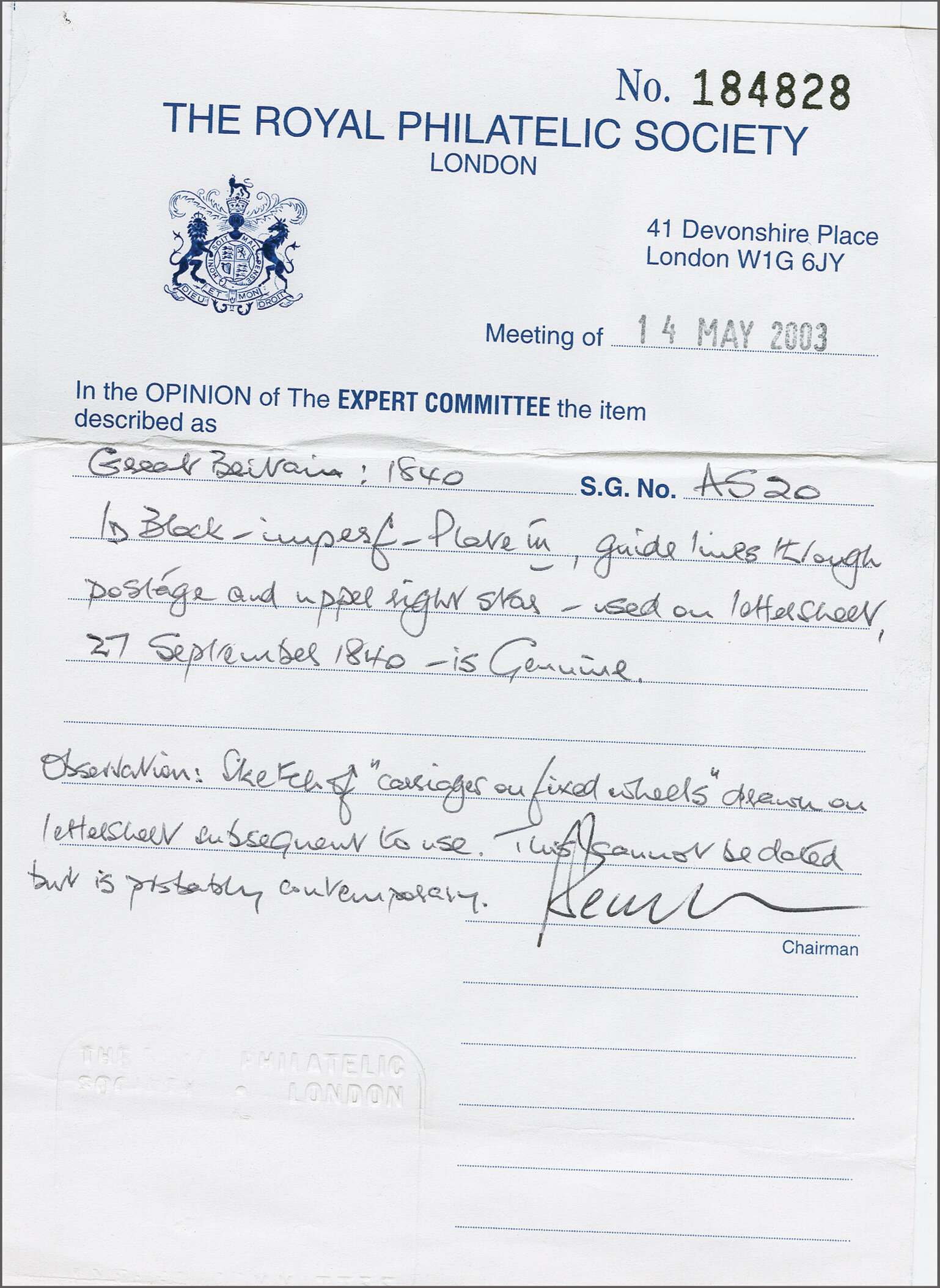 in black; a fine entire Gi AS23 = £ 850. (Image 1)