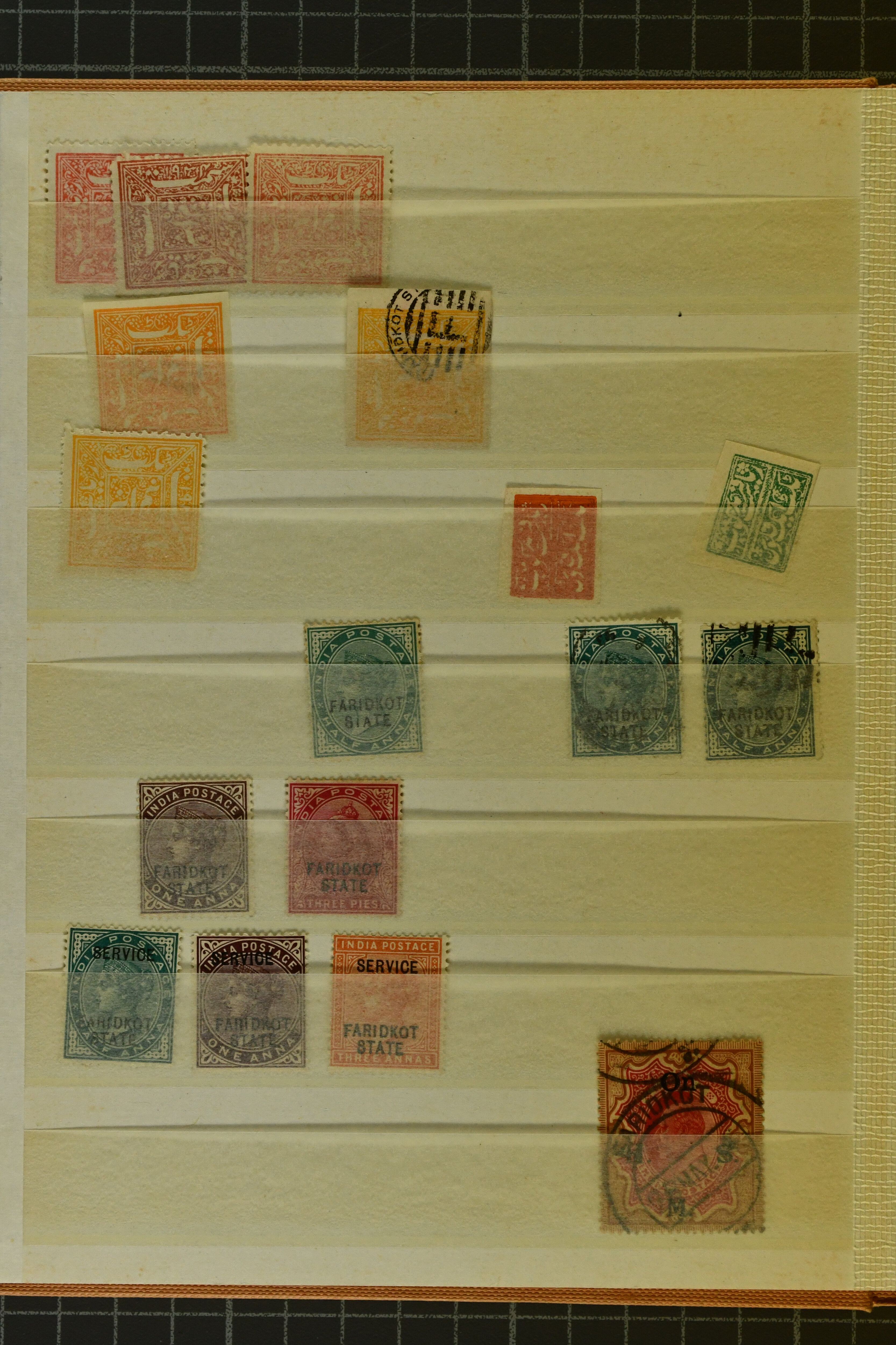 colours, also few post-1887 adhesives when Faridkot used covention state overprinted adhesives of British India. (Image 1)