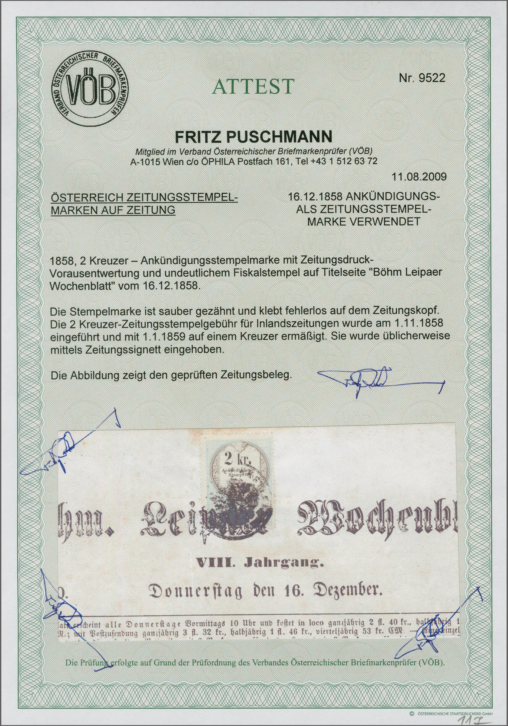 Get Market Data for [Austria Zeitungsstempelmarke] Visual Pricing Guide Sample Census