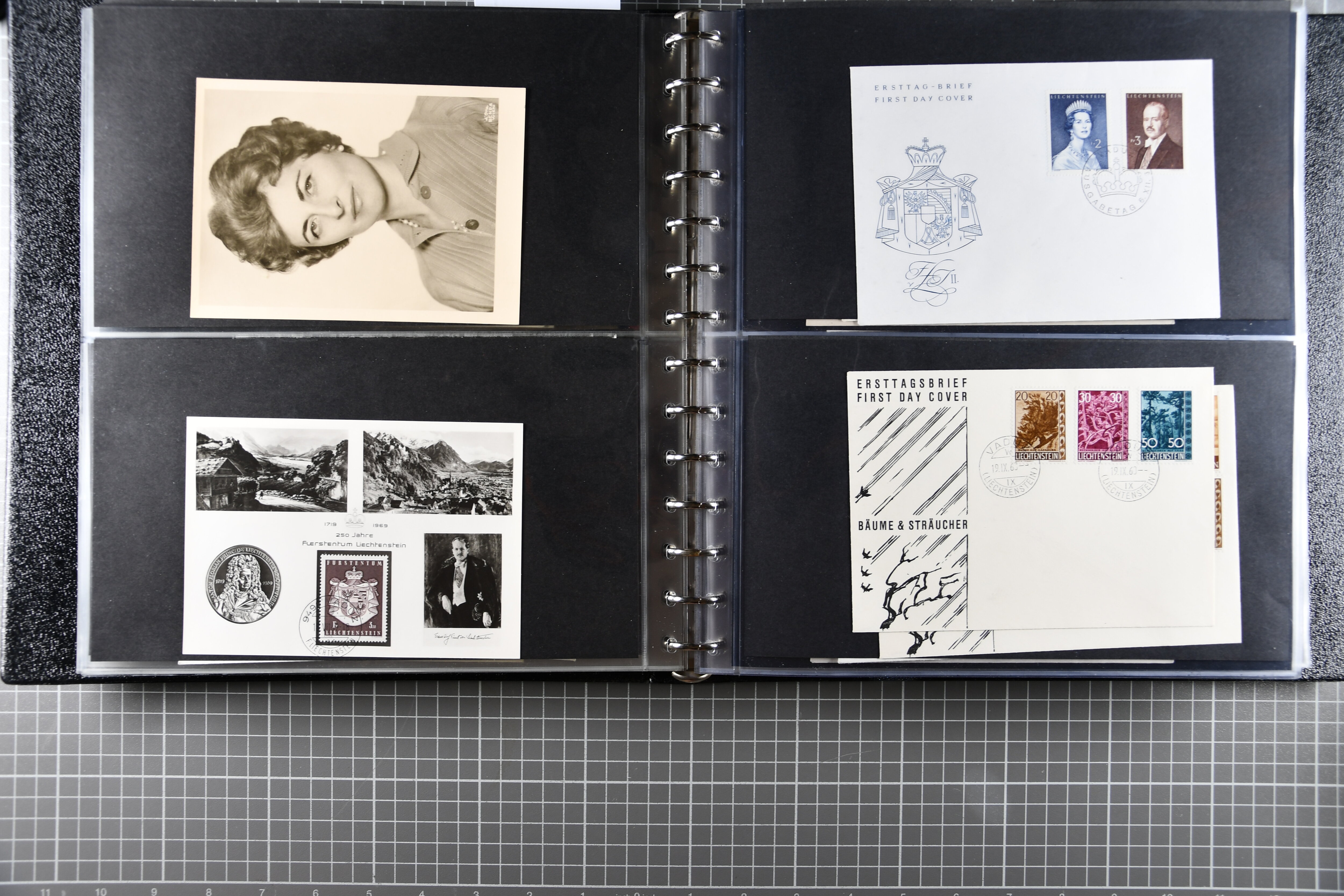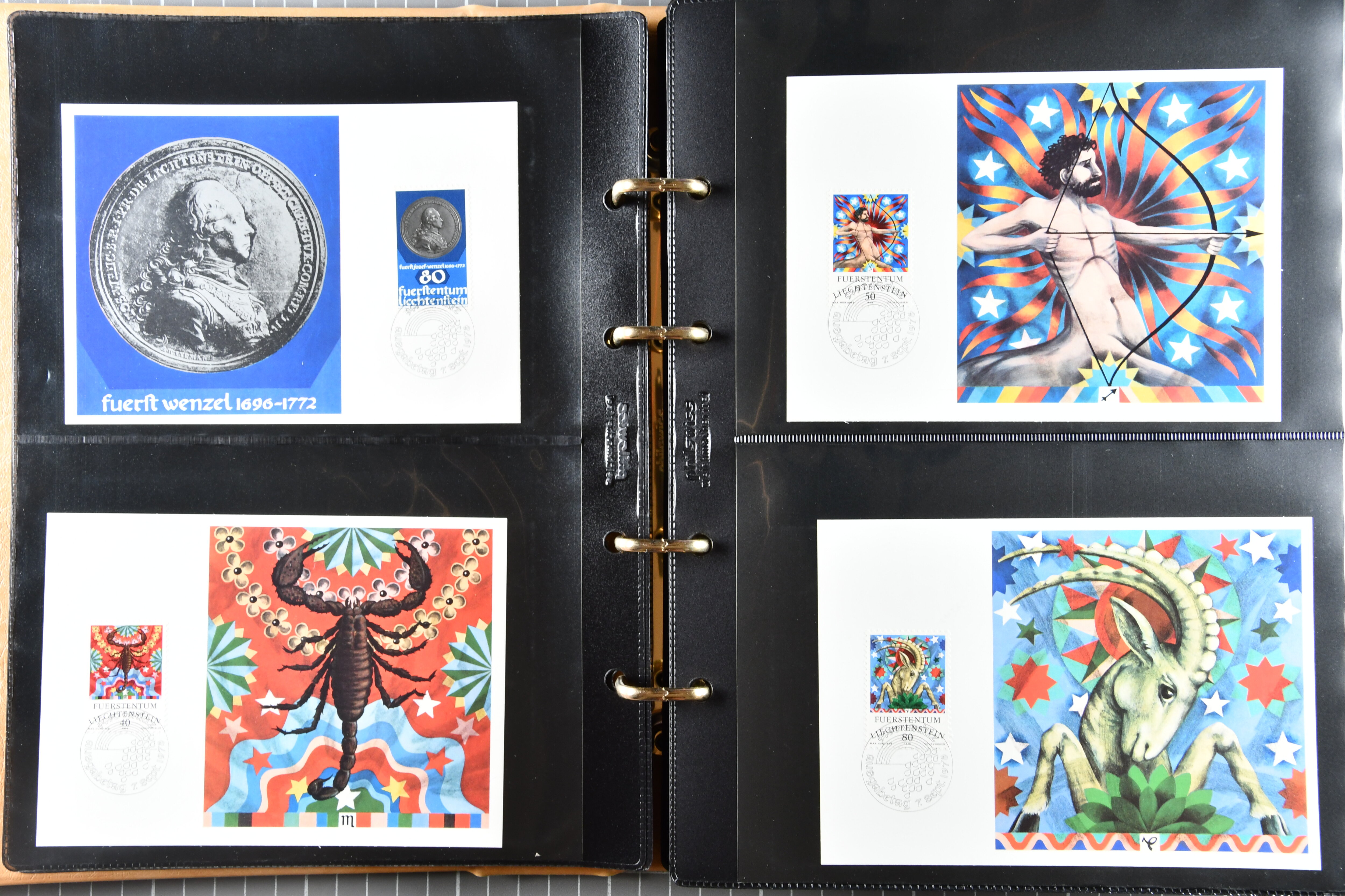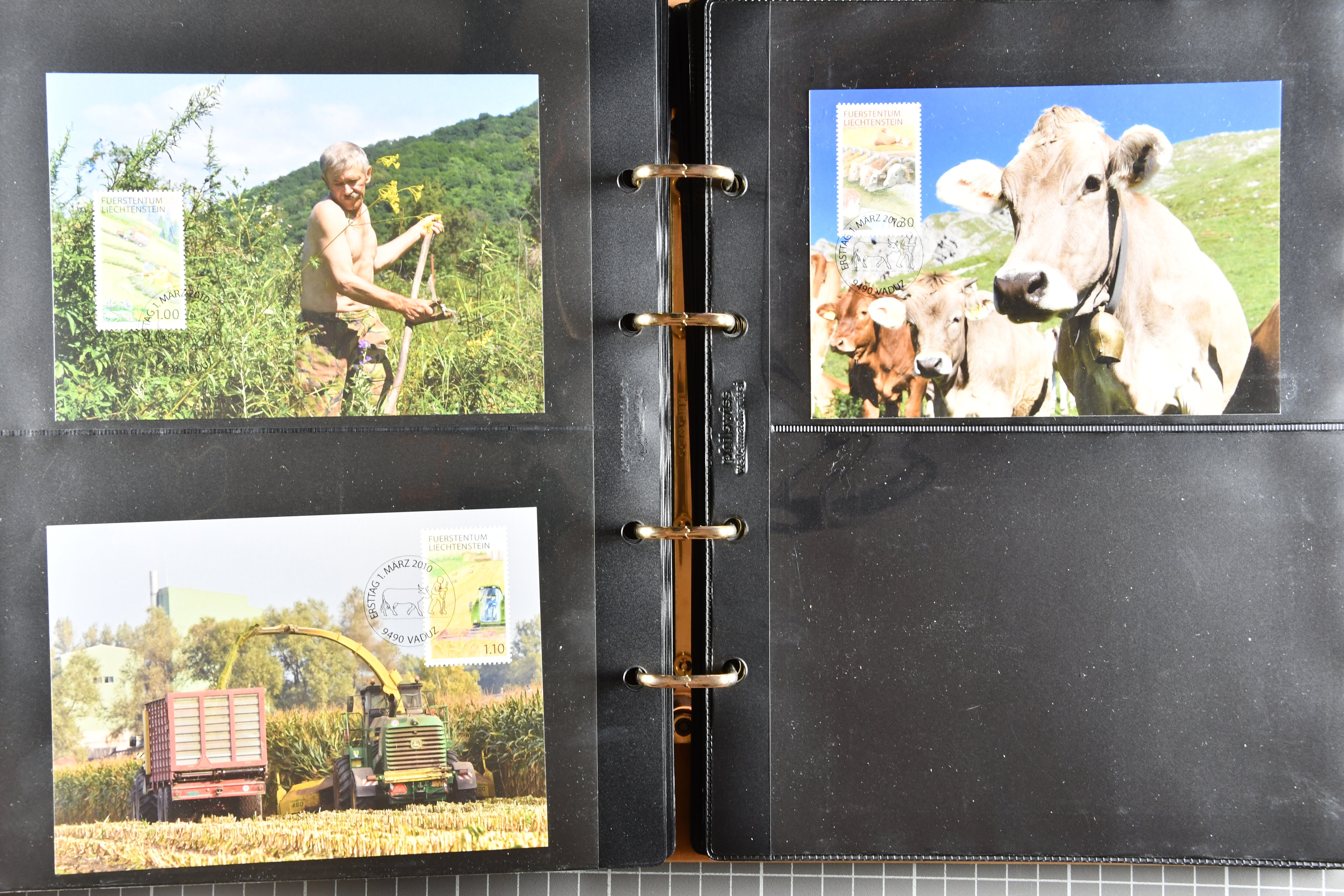 9445 cover 1978/2016: Bestand hunderter moderner Belege in sechs Kartonboxen. Dabei vier Boxen mit besseren modernen FDC aus den Jahren ab 1997 und zwei Kartons mit hunderten von Maximumkarten aus den Nummern 1 bis 424 in den ursprünglichen Umschlägen der fürstlichen Werteichenverkaufsstelle. Für diese Periode ein seltenes Angebot mit vielen Spezialitäten.