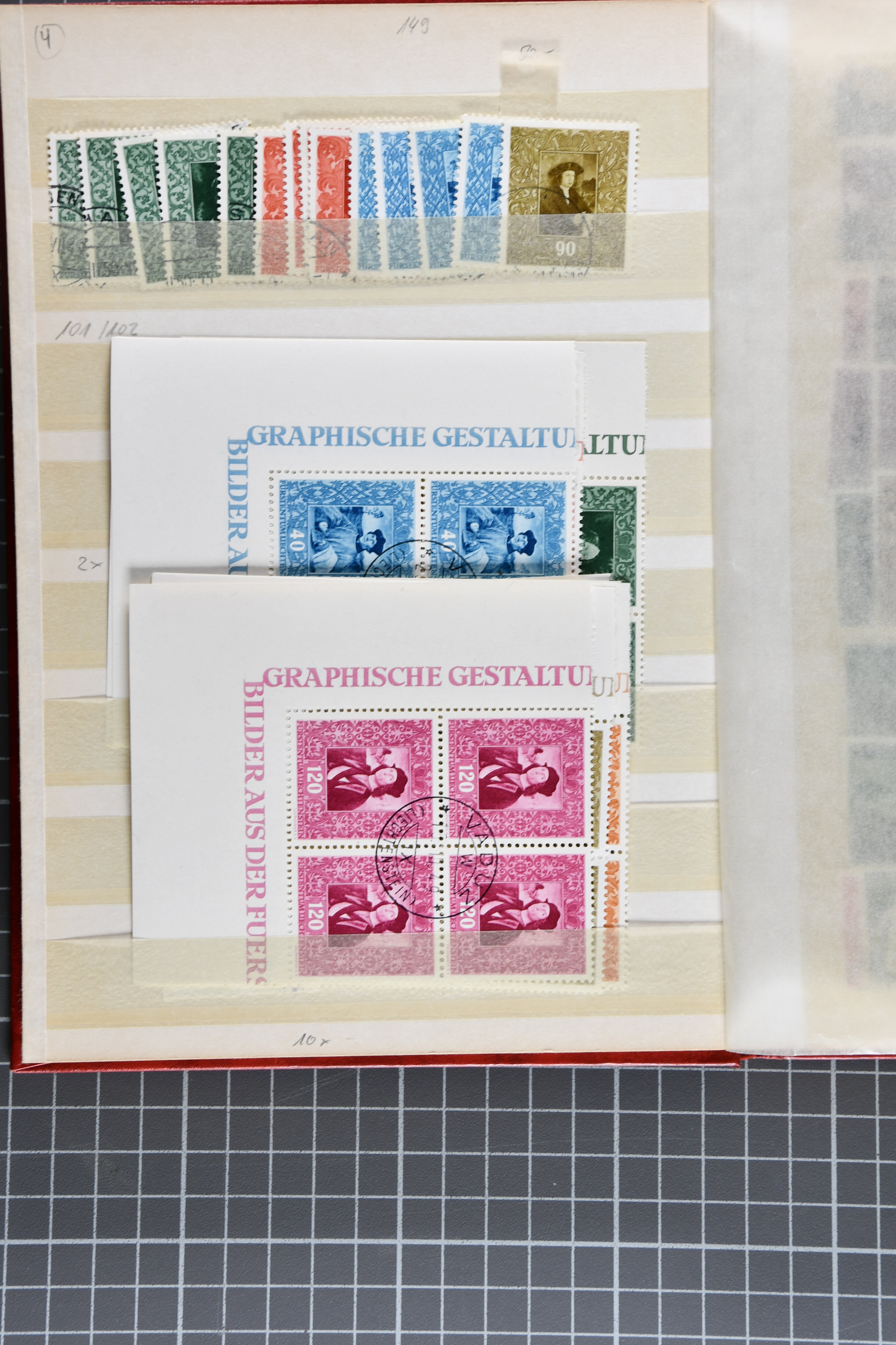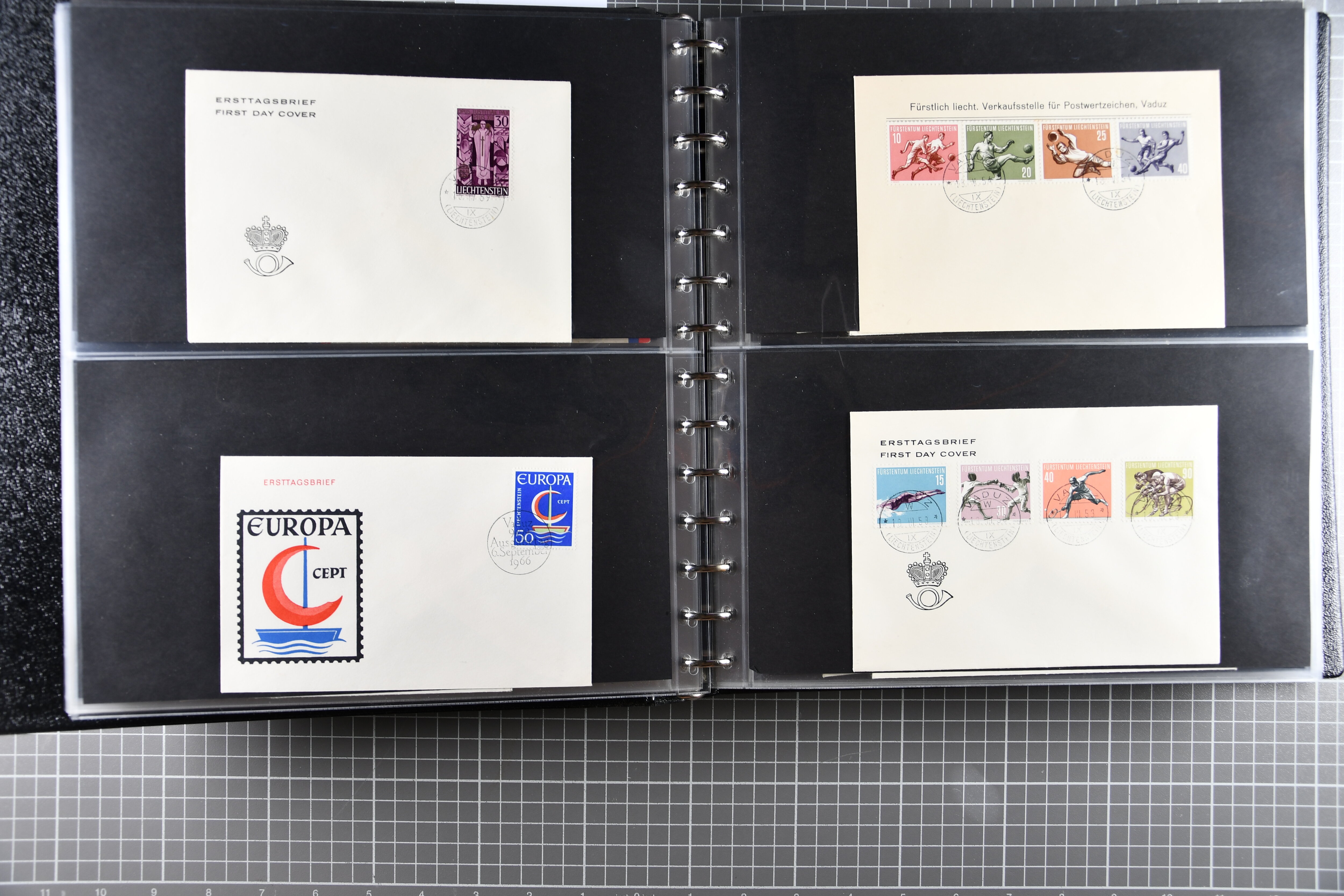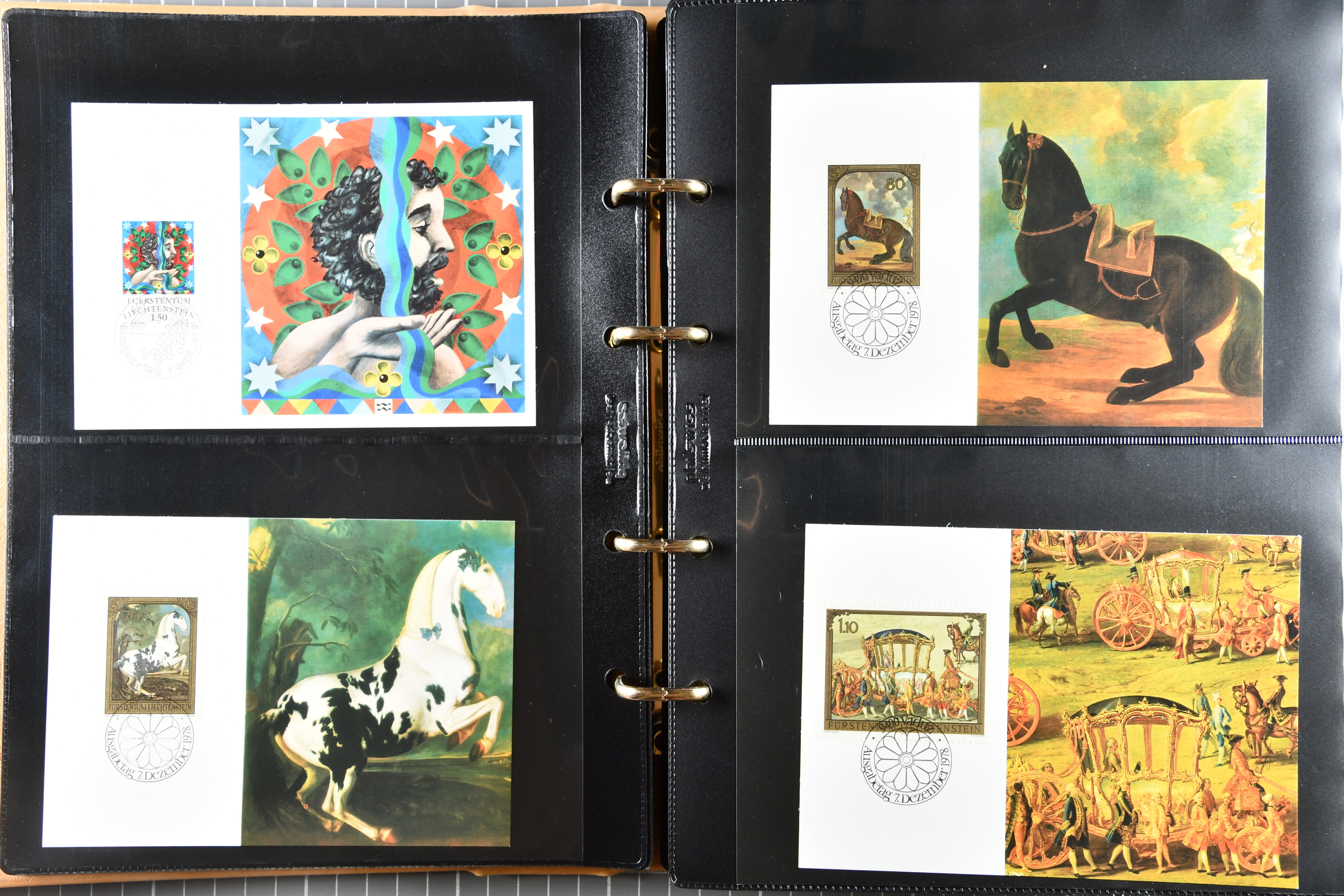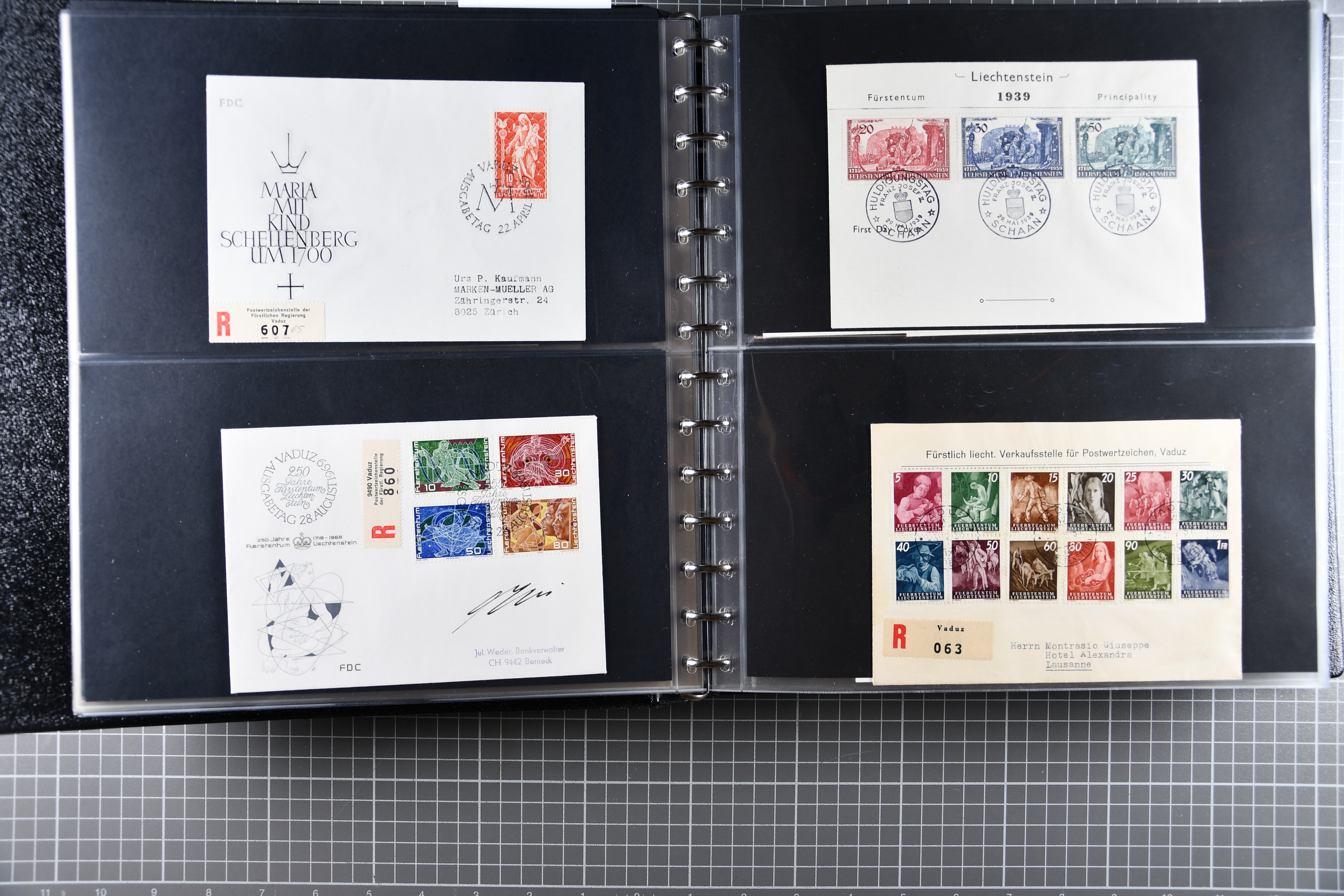9445 cover 1978/2016: Bestand hunderter moderner Belege in sechs Kartonboxen. Dabei vier Boxen mit besseren modernen FDC aus den Jahren ab 1997 und zwei Kartons mit hunderten von Maximumkarten aus den Nummern 1 bis 424 in den ursprünglichen Umschlägen der fürstlichen Werteichenverkaufsstelle. Für diese Periode ein seltenes Angebot mit vielen Spezialitäten.
