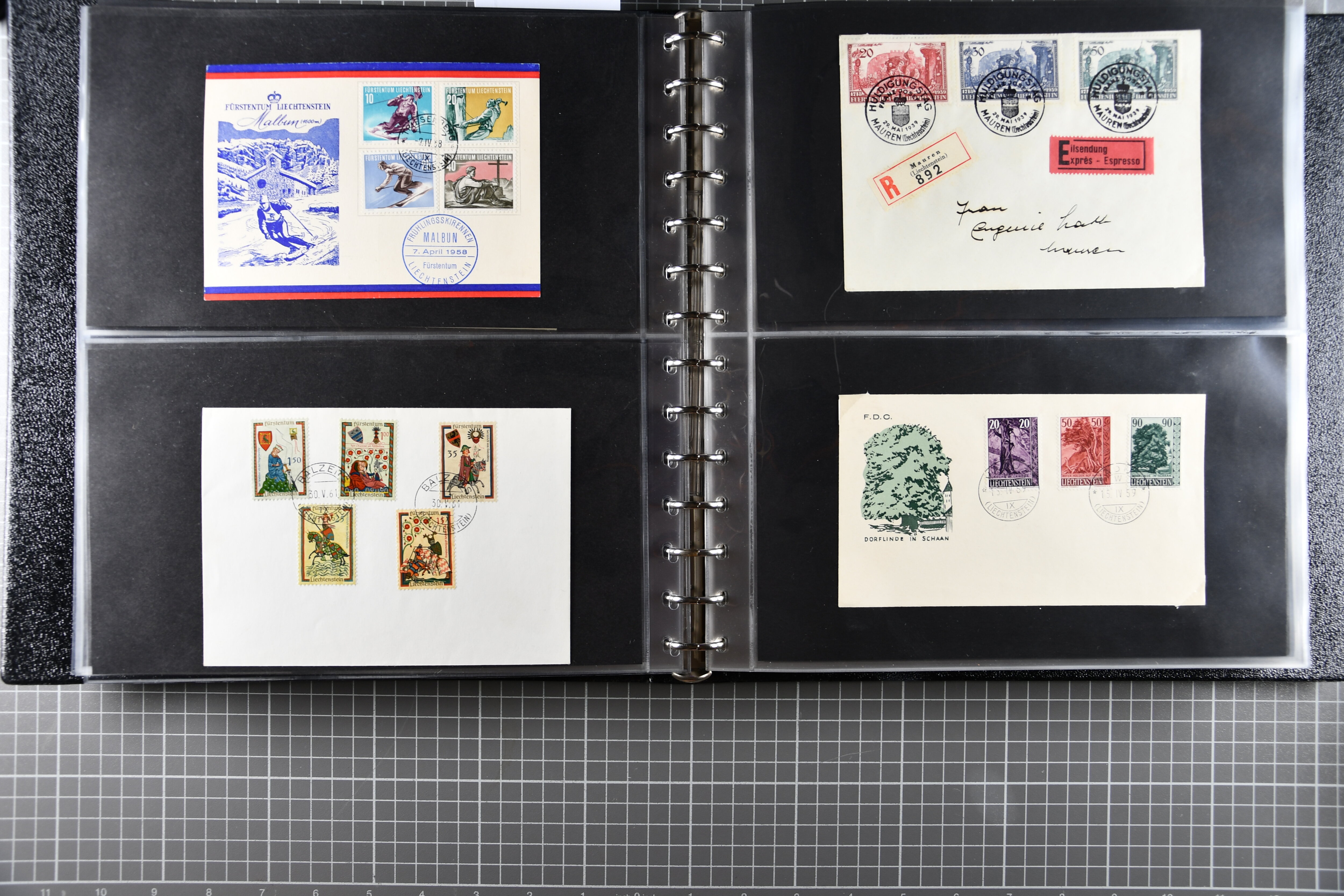 9444 cover image1920-1980ca.: Briefalbum enthaltend etliche bessere FDCs, gute Sätze und Werte auf Brief, drei Franco-Zettel auf gelaufenen Belegen - nur bis ca. 1961 gerechnet. LBK =CHF 5'900. (Image 1) (Image 2) (Image 3) (Image 4) (Image 5) (Image 6) (Image 7) (Image 8) (Image 9) (Image 10) (Image 11) (Image 12) (Image 13) (Image 14) (Image 15) (Image 16) (Image 17) (Image 18) (Image 19)