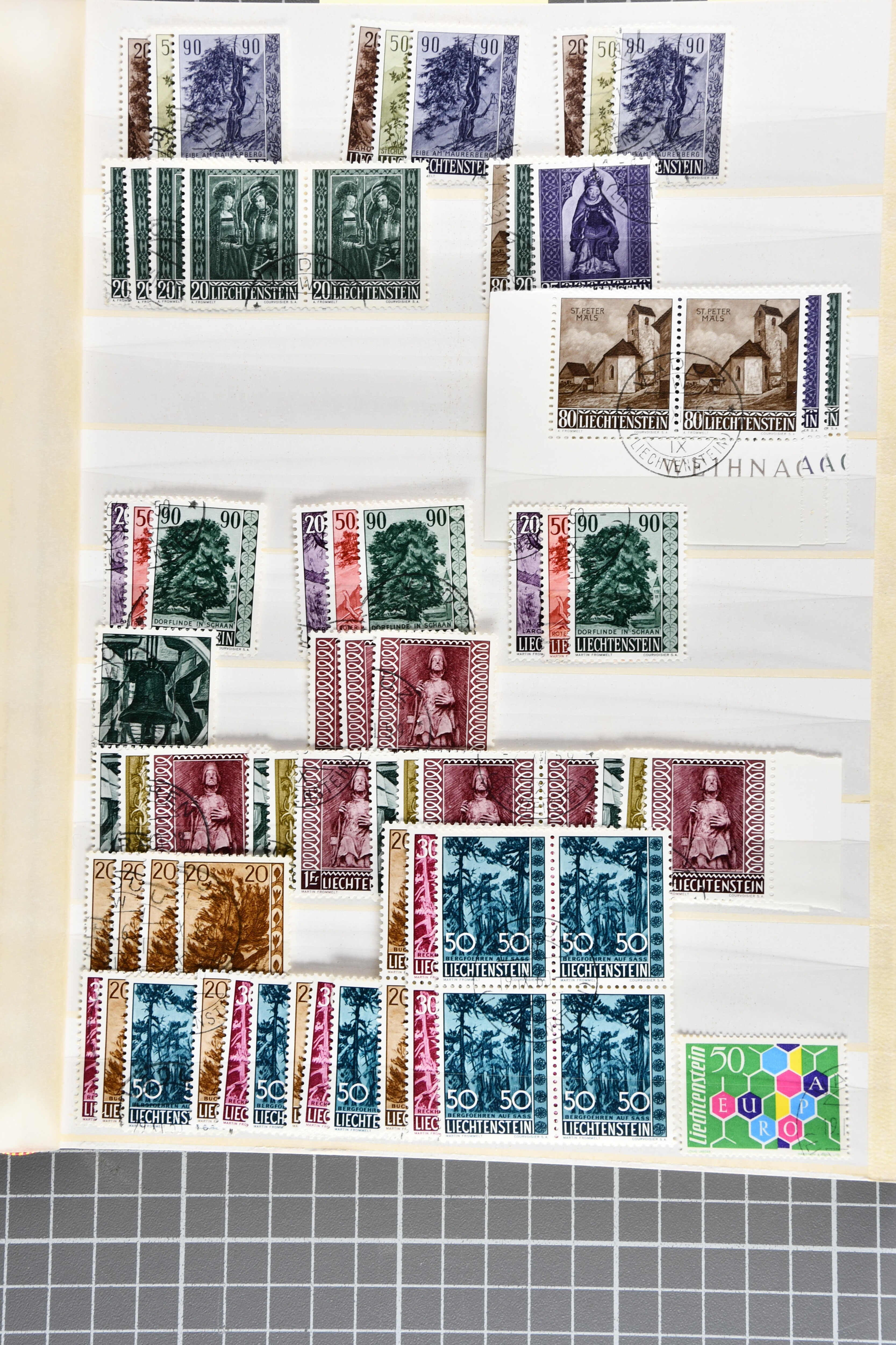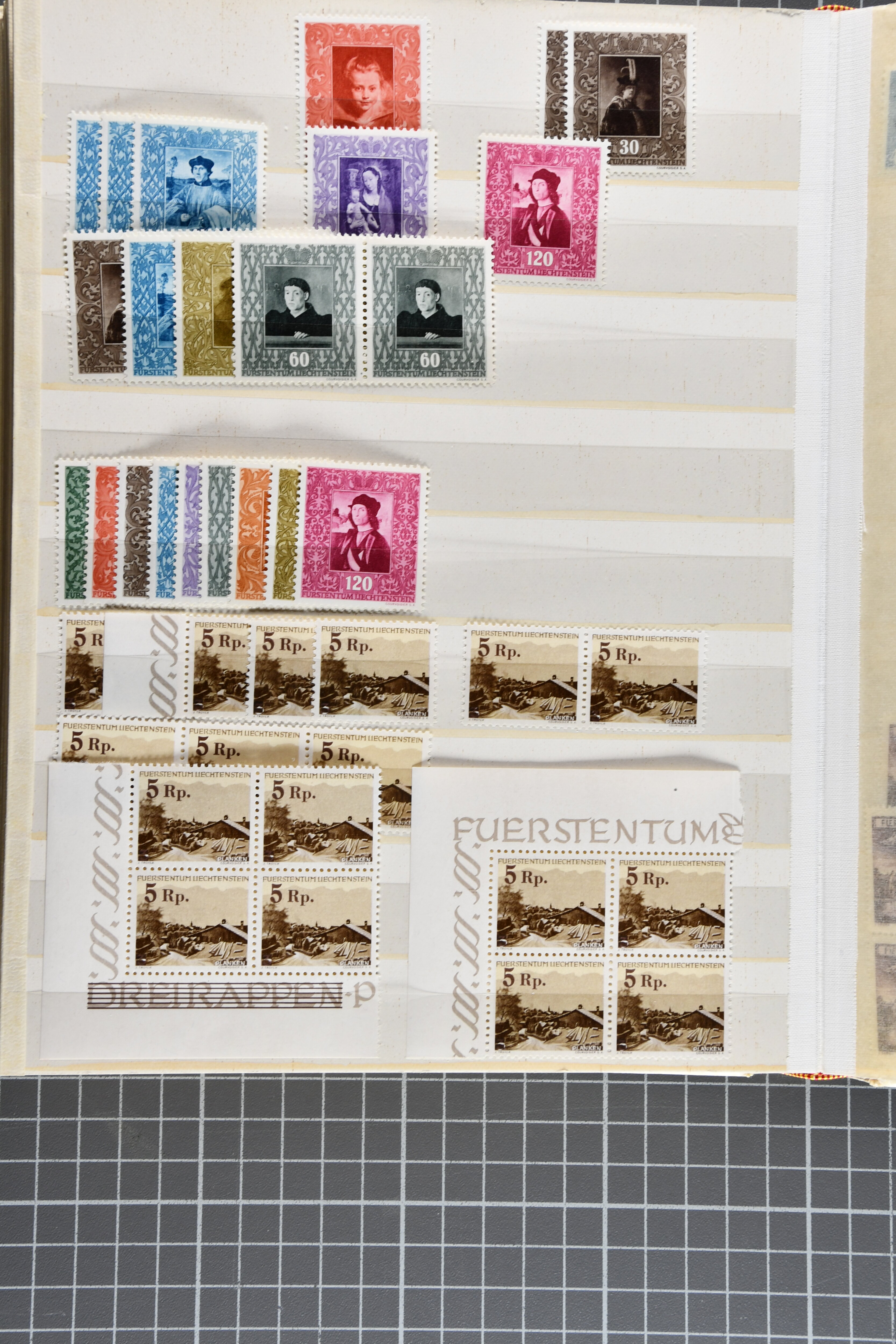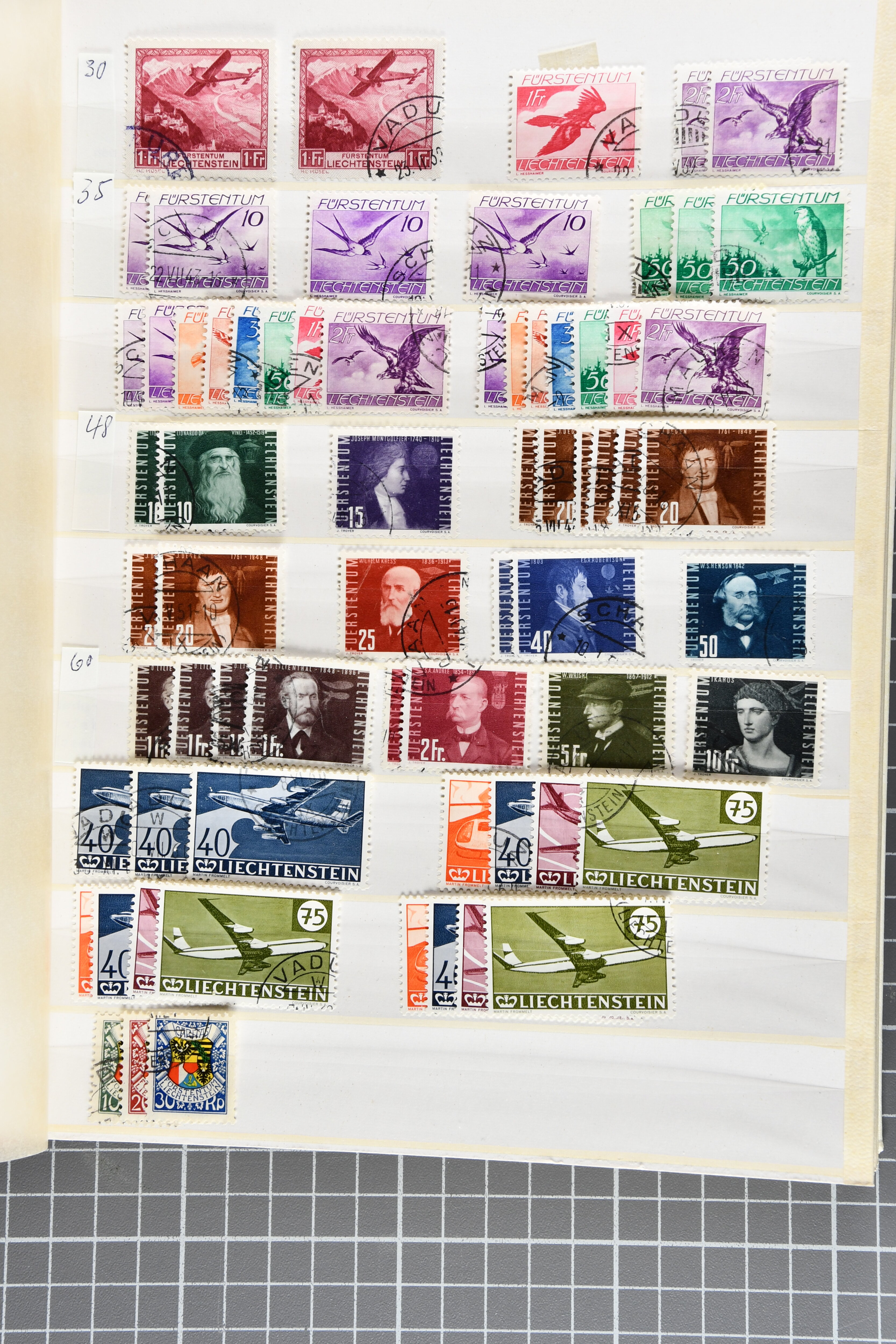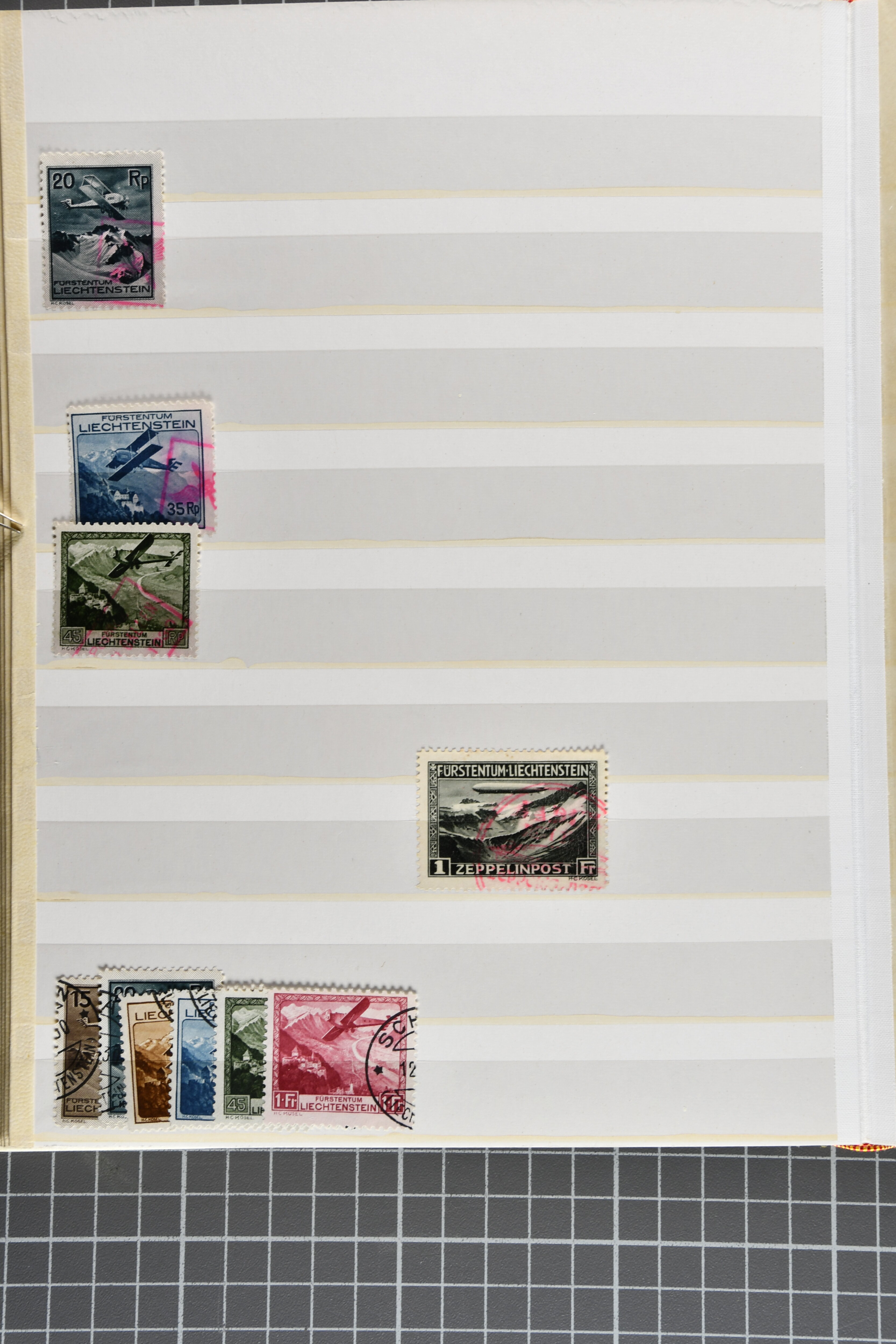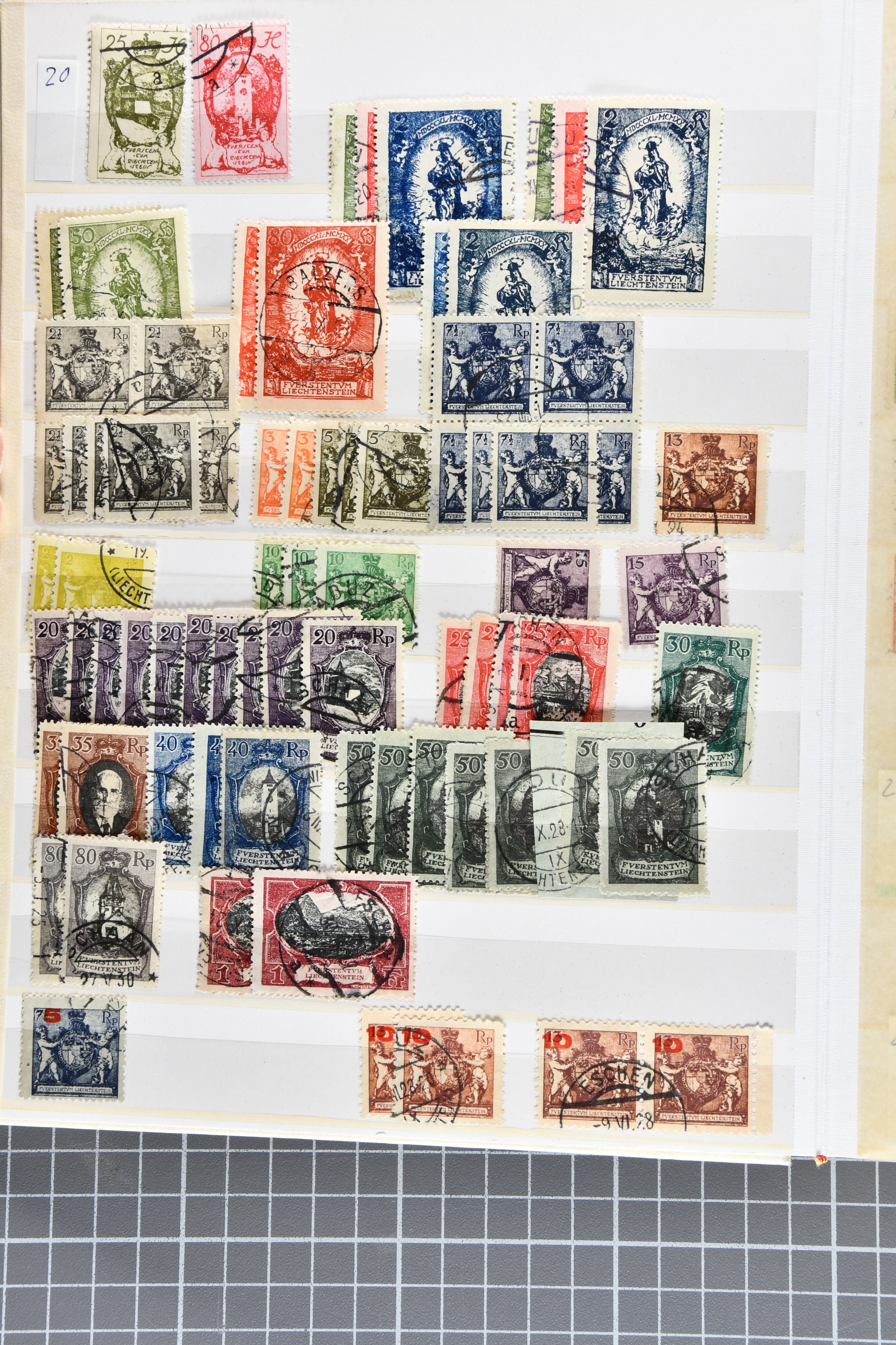 9434 image1908/65 (ca.): Kleines aber reichhaltiges Händlerlager postfr./ungebr., gest. und im Viererblock auf Steckkarten mit zahlreichen mittleren und besseren Marken und Sätzen. Dabei 1912 "Fürst Johann II", 5-25 H. auf Kreidepapier (LBK 1x-3x), zwei kompl. postfr. Sätze, 1928 "Rheinnot" ungezähnt in leicht abweichenden Farben (Mi.-Nr. 78-81U), postfr., 1921 Freimarken 20 Rp. "St. Mammertus-Kappelle" (LBK 53A) und 1 Fr. "Rheintal bei Vaduz" (LBK 53B), beide postfr., 1935 Flugpost "Adler", 10-30 Rp. (LBK F9y-F12y) im Viererblock, sauber und zentr. gest. "TRIESENBERG 4.VI.35", 1941 "Madonna von Dux" (LBK 150) postfr. (3) und im gest. Kleinbogen oder 1948/50 "Flugpioniere" postfr. und im gest. Viererblock. Gute Erhaltung. LBK=CHF 9'500+. (Image 1) (Image 2) (Image 3)