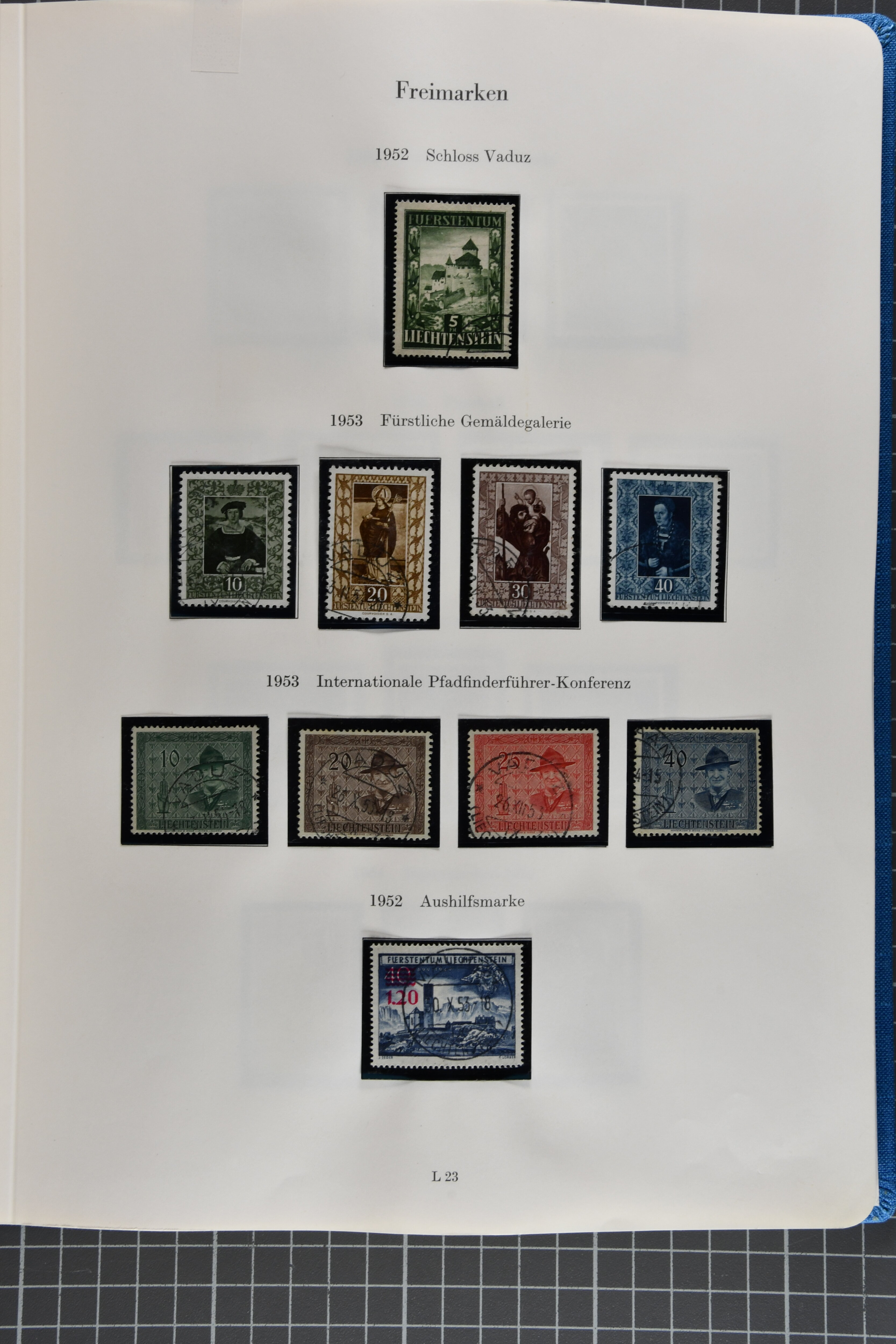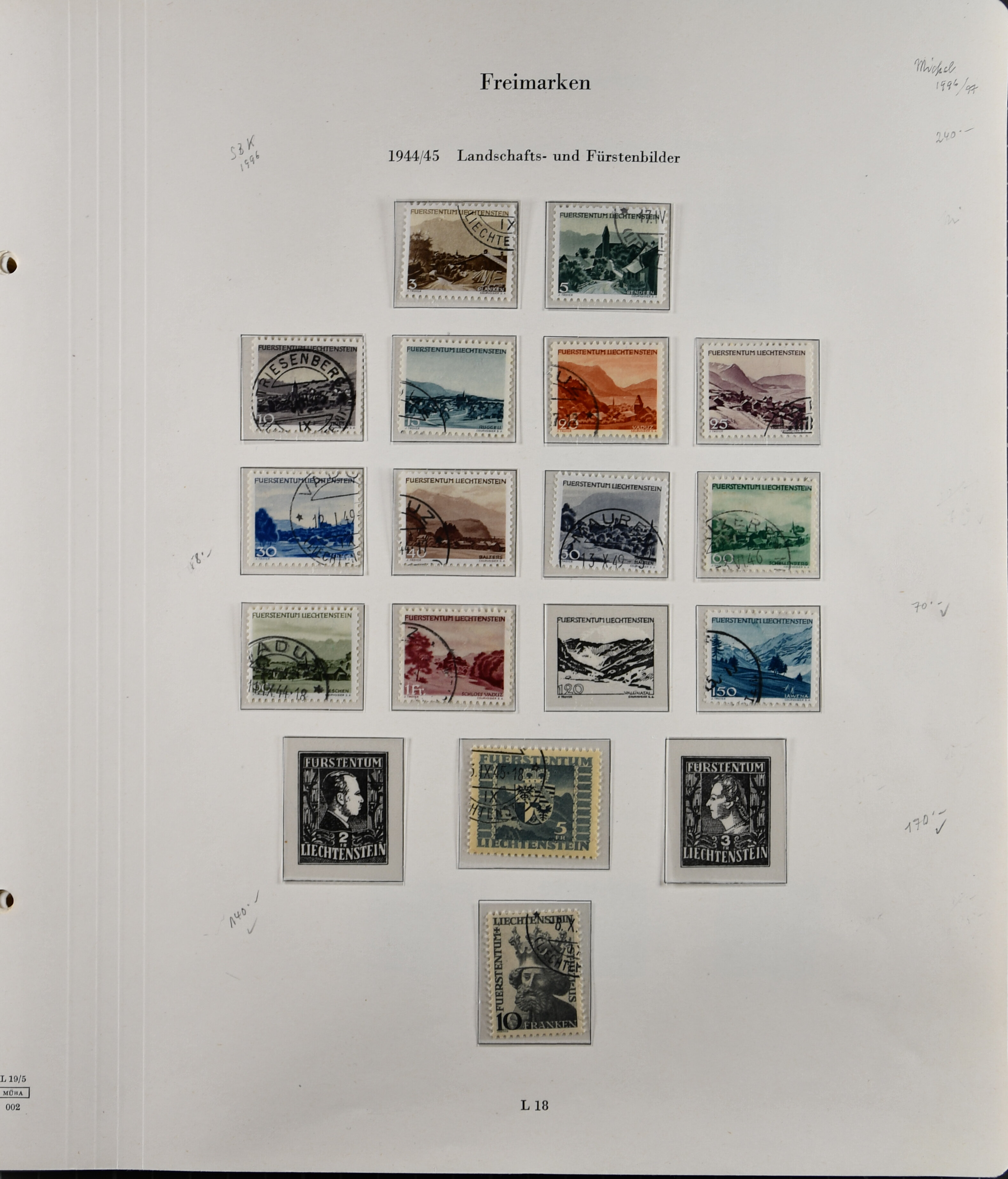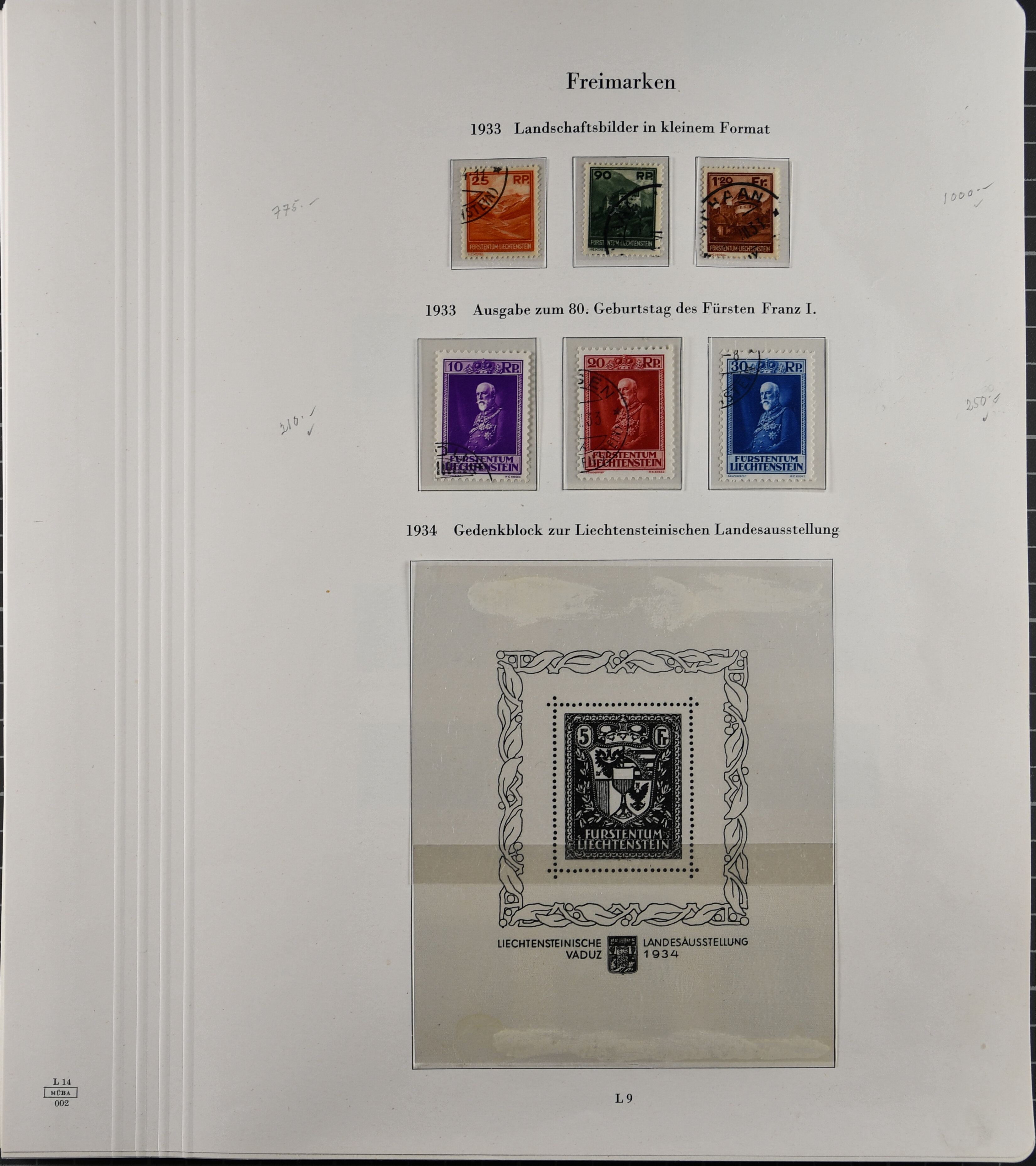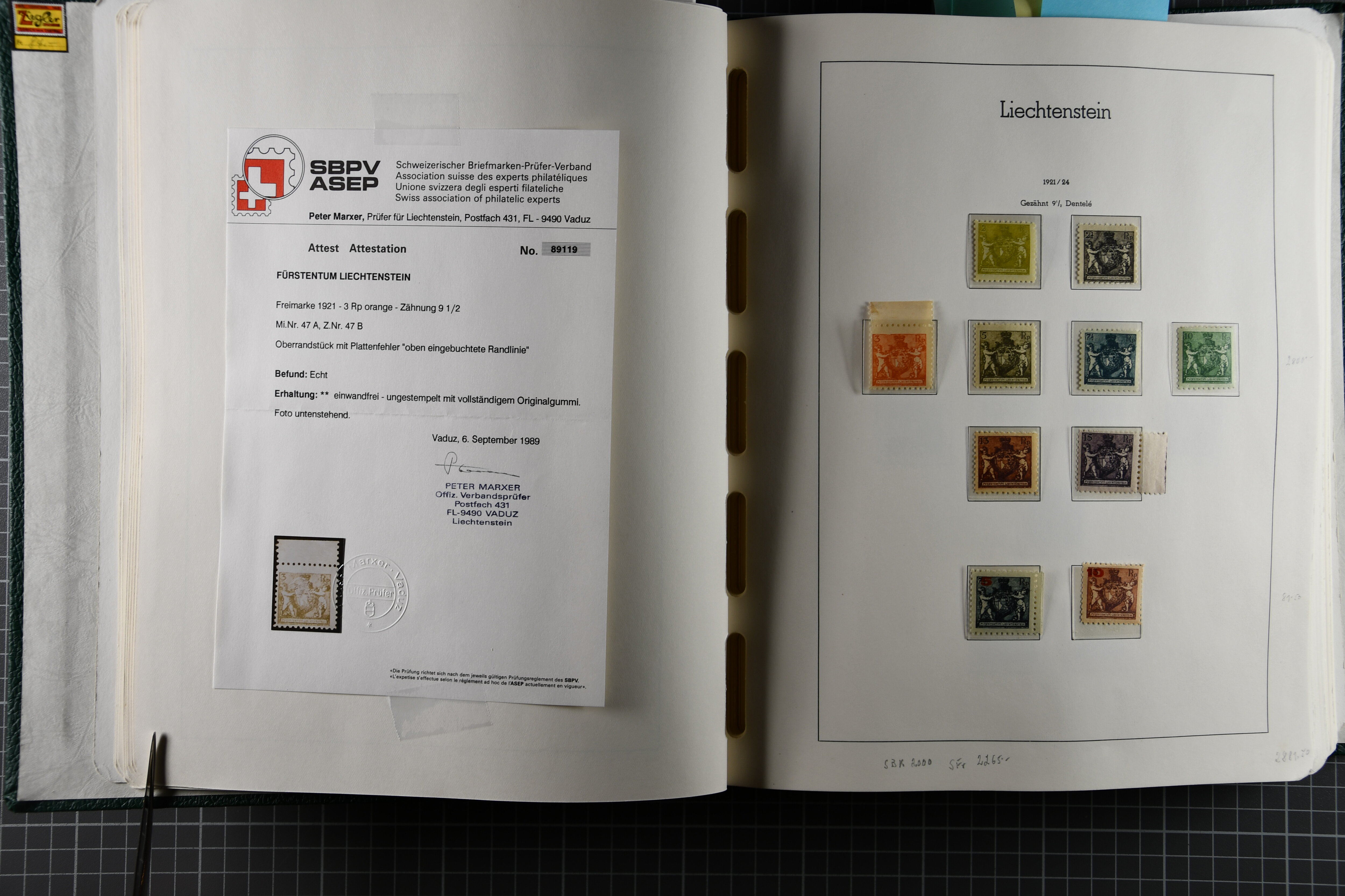 9439 image1912/85:Prächtige ungebrauchte, meist postfrische Sammlung im Leuchtturm-Vordruckalbum, mit nur wenigen Werten mit Falzspur (z. B. Vaduz-Block). Enthalten sind zahlreiche hochwertige Sätze, darunter Freimarken 1912, 25 Heller ultramarin von 1916 (Attest Rupp 1984), Landeswappen (grobe Zähnung) 1920, Regierungsjubiläum 1928, Kosel-Serie 1930, Kleine Landschaften 1933, Fürstenpaar gez 14¾ von 1951 sowie Flugpost- und Dienstmarken. Wenige Lücken – hoher Katalogwert! (Image 1) (Image 2) (Image 3) (Image 4) (Image 5) (Image 6) (Image 7) (Image 8) (Image 9) (Image 10) (Image 11) (Image 12) (Image 13) (Image 14) (Image 15) (Image 16) (Image 17) (Image 18) (Image 19) (Image 20) (Image 21) (Image 22) (Image 23) (Image 24) (Image 25) (Image 26) (Image 27) (Image 28) (Image 29) (Image 30) (Image 31)