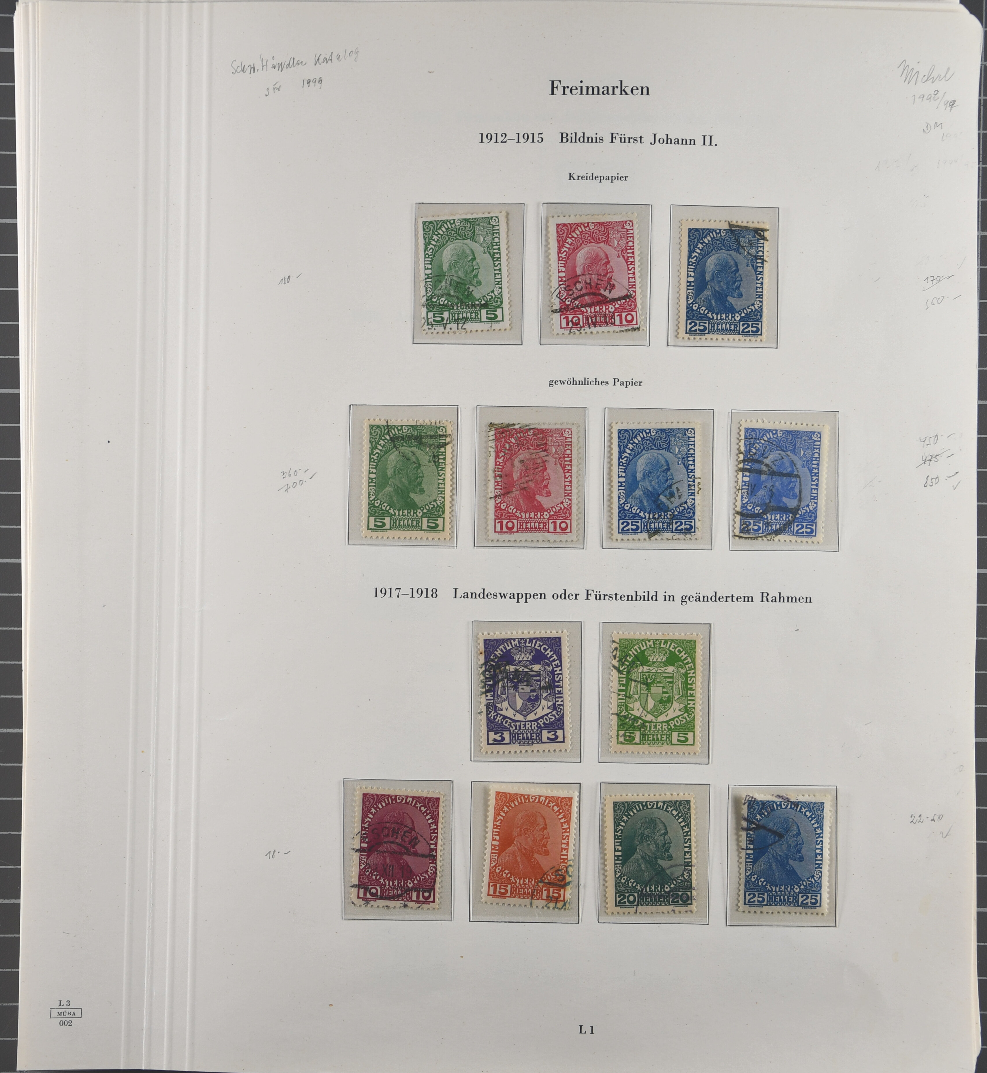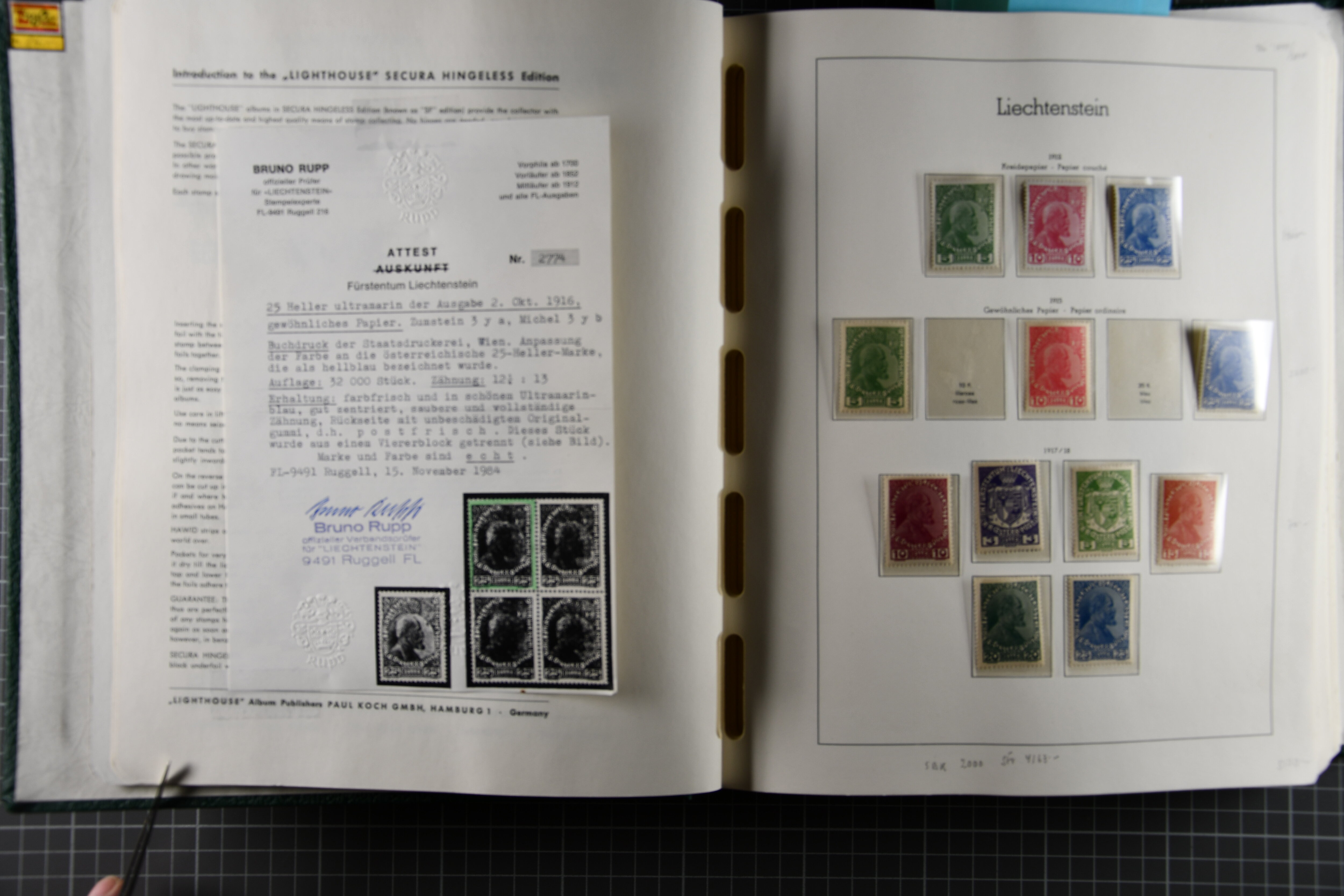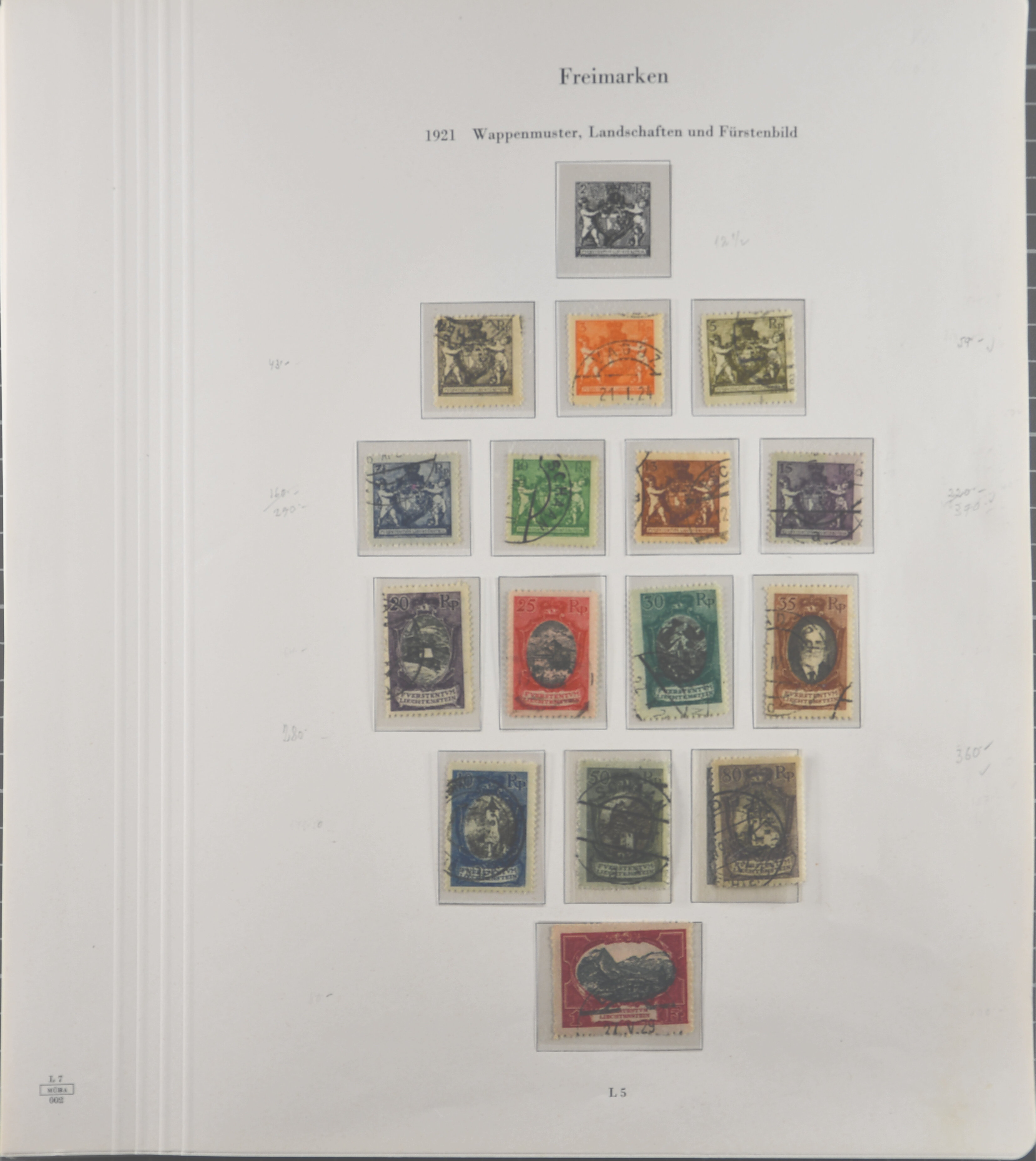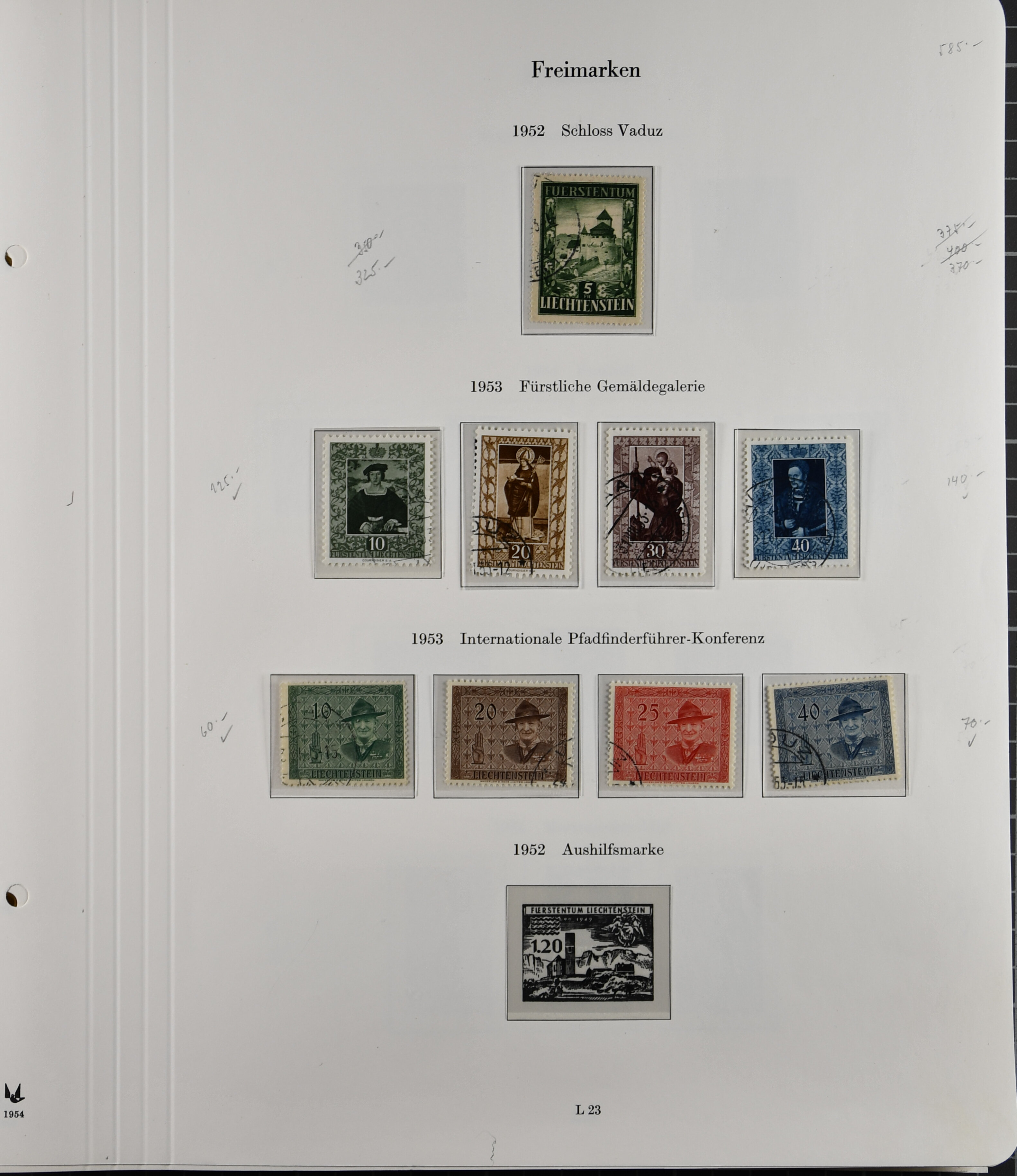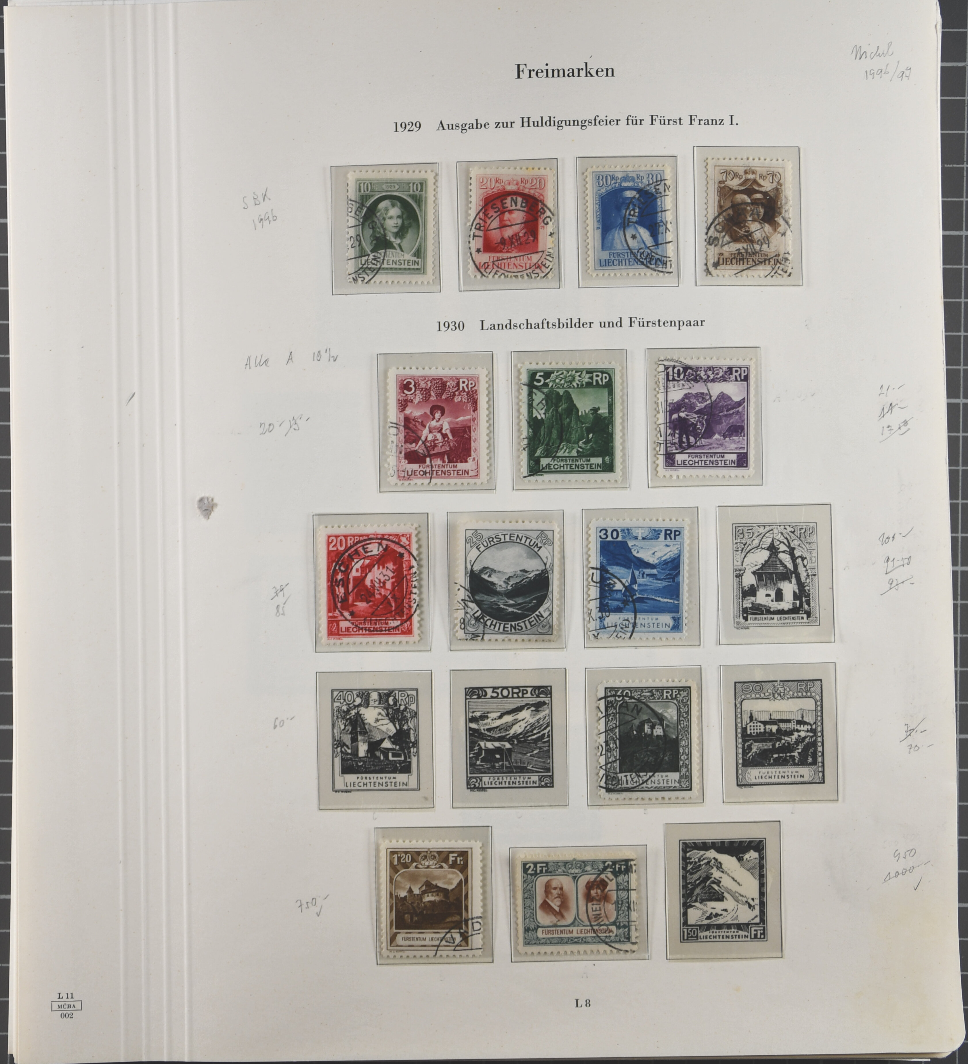 9439 image1912/85:Prächtige ungebrauchte, meist postfrische Sammlung im Leuchtturm-Vordruckalbum, mit nur wenigen Werten mit Falzspur (z. B. Vaduz-Block). Enthalten sind zahlreiche hochwertige Sätze, darunter Freimarken 1912, 25 Heller ultramarin von 1916 (Attest Rupp 1984), Landeswappen (grobe Zähnung) 1920, Regierungsjubiläum 1928, Kosel-Serie 1930, Kleine Landschaften 1933, Fürstenpaar gez 14¾ von 1951 sowie Flugpost- und Dienstmarken. Wenige Lücken – hoher Katalogwert! (Image 1) (Image 2) (Image 3) (Image 4) (Image 5) (Image 6) (Image 7) (Image 8) (Image 9) (Image 10) (Image 11) (Image 12) (Image 13) (Image 14) (Image 15) (Image 16) (Image 17) (Image 18) (Image 19) (Image 20) (Image 21) (Image 22) (Image 23) (Image 24) (Image 25) (Image 26) (Image 27) (Image 28) (Image 29) (Image 30) (Image 31)