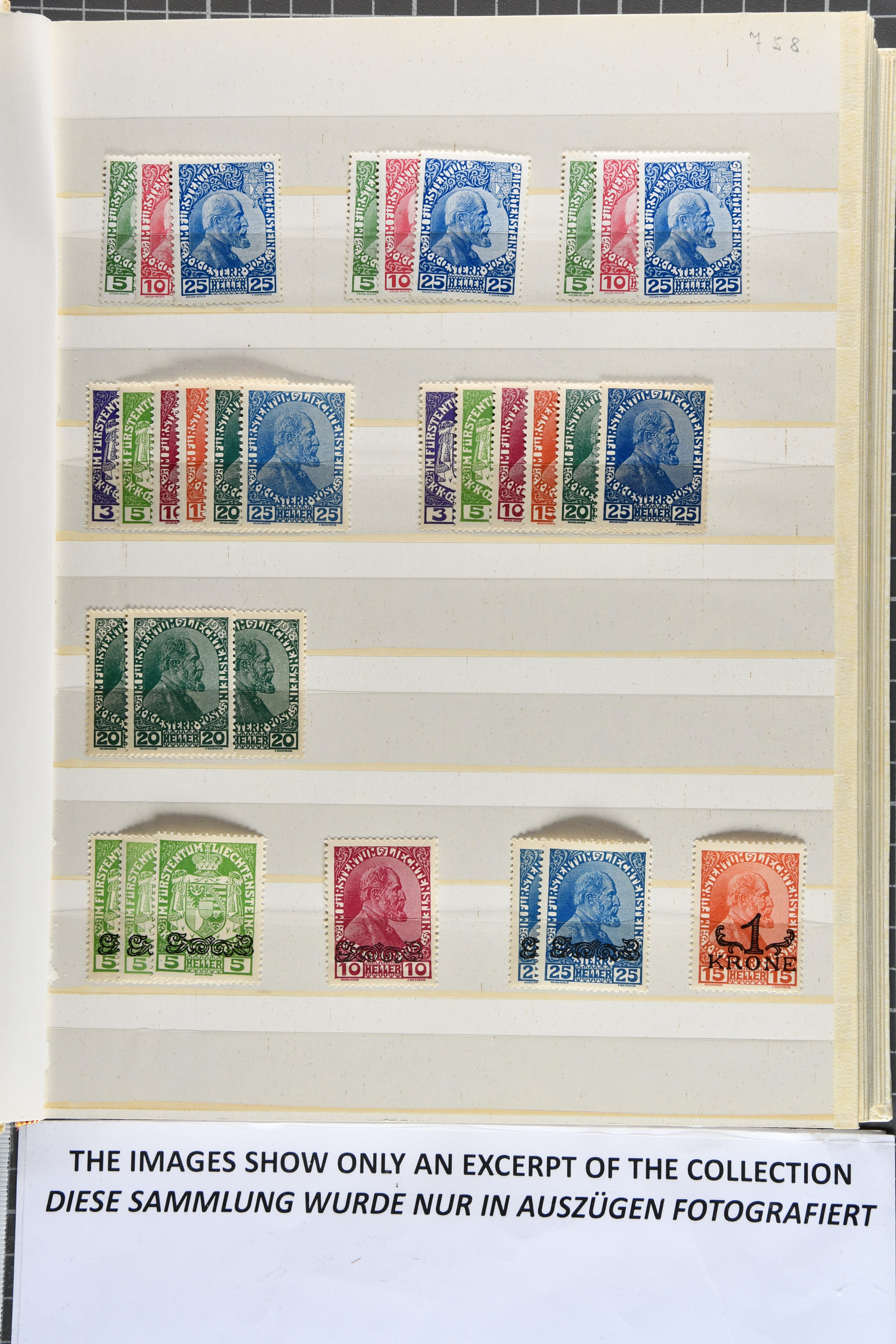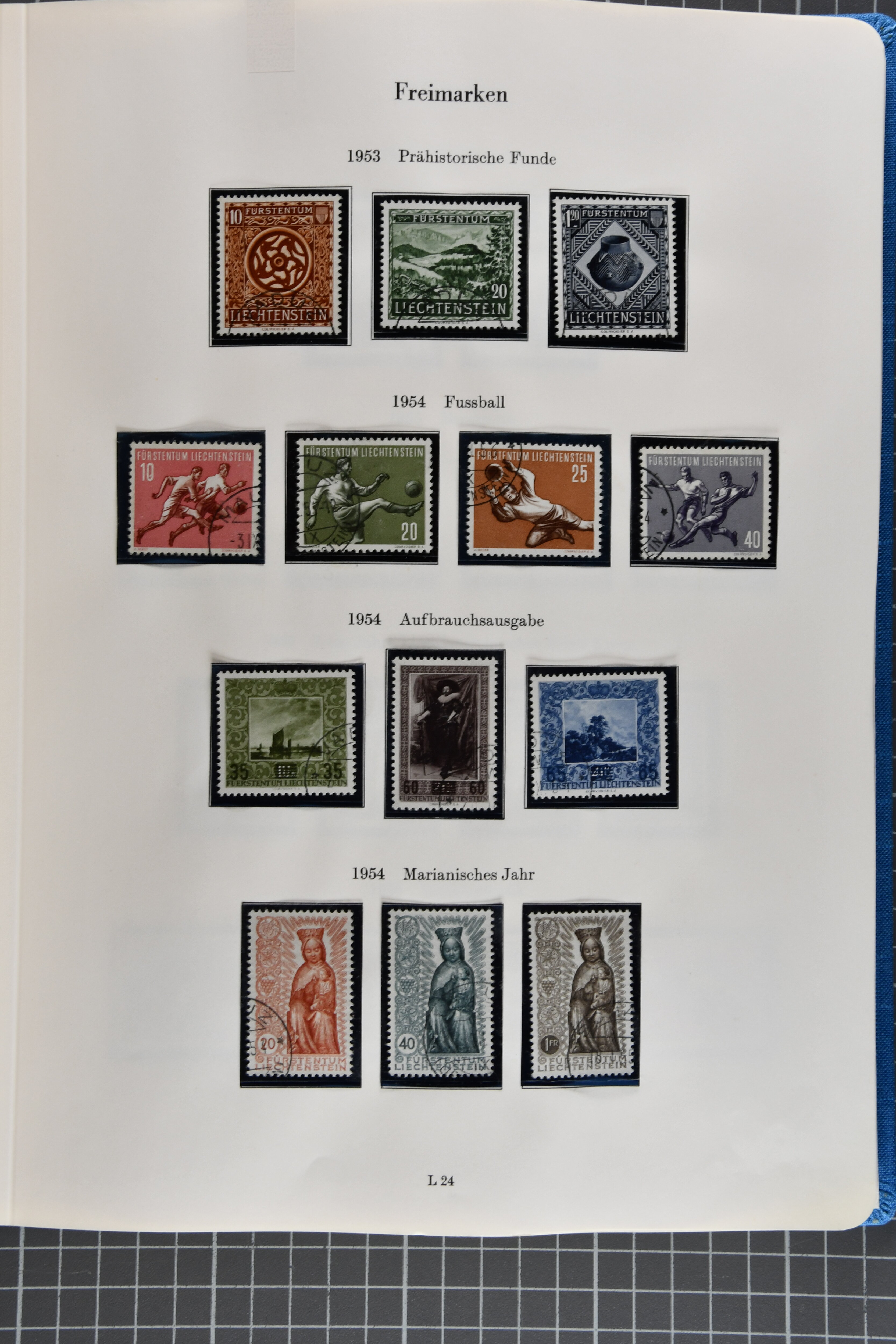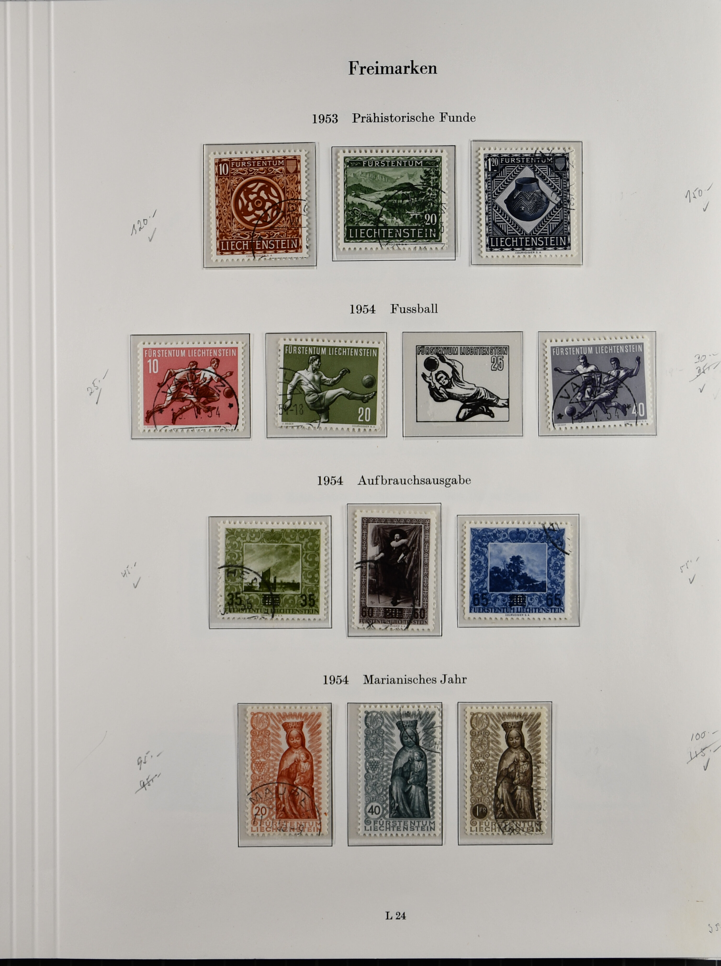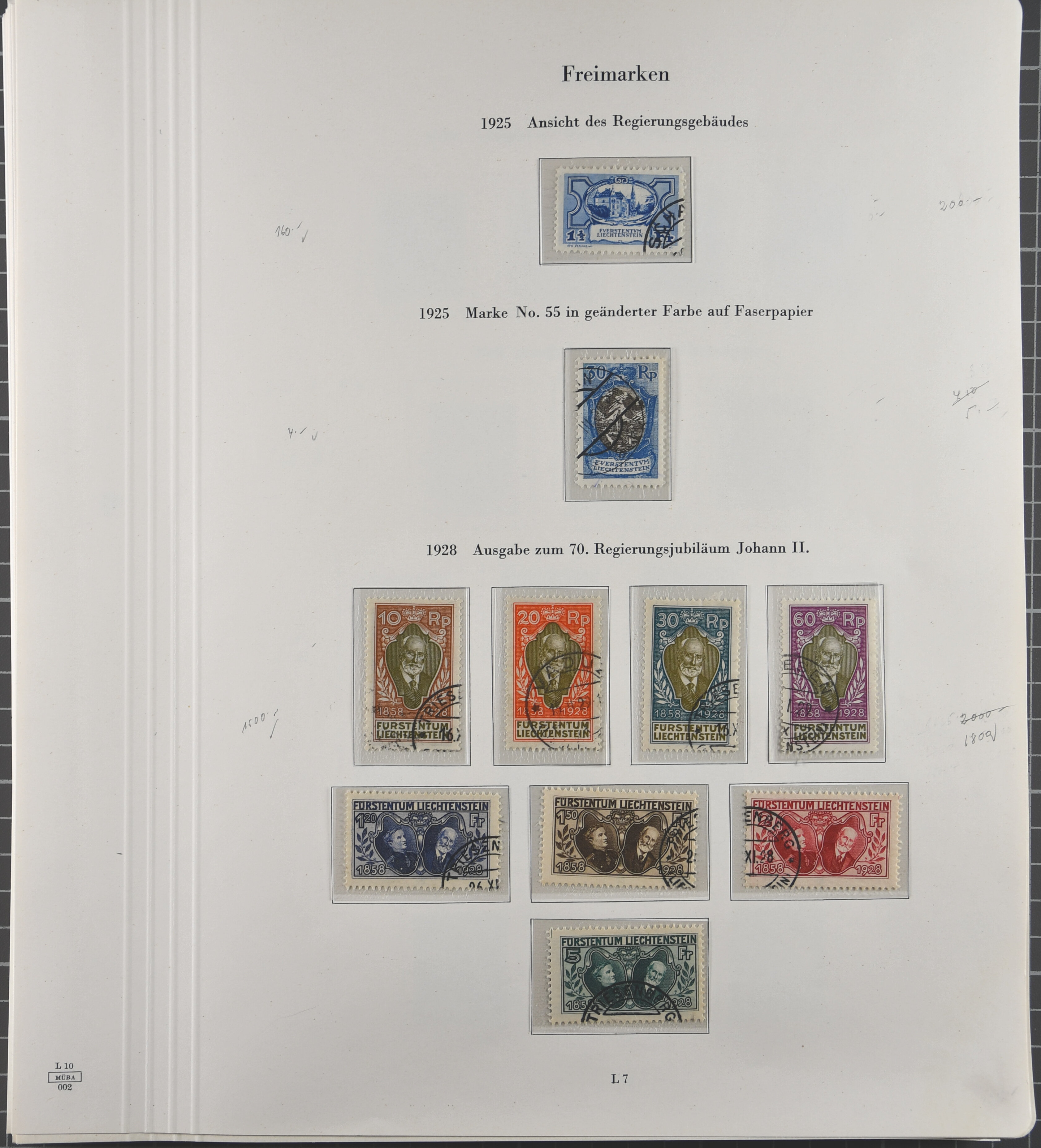 9439 image1912/85:Prächtige ungebrauchte, meist postfrische Sammlung im Leuchtturm-Vordruckalbum, mit nur wenigen Werten mit Falzspur (z. B. Vaduz-Block). Enthalten sind zahlreiche hochwertige Sätze, darunter Freimarken 1912, 25 Heller ultramarin von 1916 (Attest Rupp 1984), Landeswappen (grobe Zähnung) 1920, Regierungsjubiläum 1928, Kosel-Serie 1930, Kleine Landschaften 1933, Fürstenpaar gez 14¾ von 1951 sowie Flugpost- und Dienstmarken. Wenige Lücken – hoher Katalogwert! (Image 1) (Image 2) (Image 3) (Image 4) (Image 5) (Image 6) (Image 7) (Image 8) (Image 9) (Image 10) (Image 11) (Image 12) (Image 13) (Image 14) (Image 15) (Image 16) (Image 17) (Image 18) (Image 19) (Image 20) (Image 21) (Image 22) (Image 23) (Image 24) (Image 25) (Image 26) (Image 27) (Image 28) (Image 29) (Image 30) (Image 31)