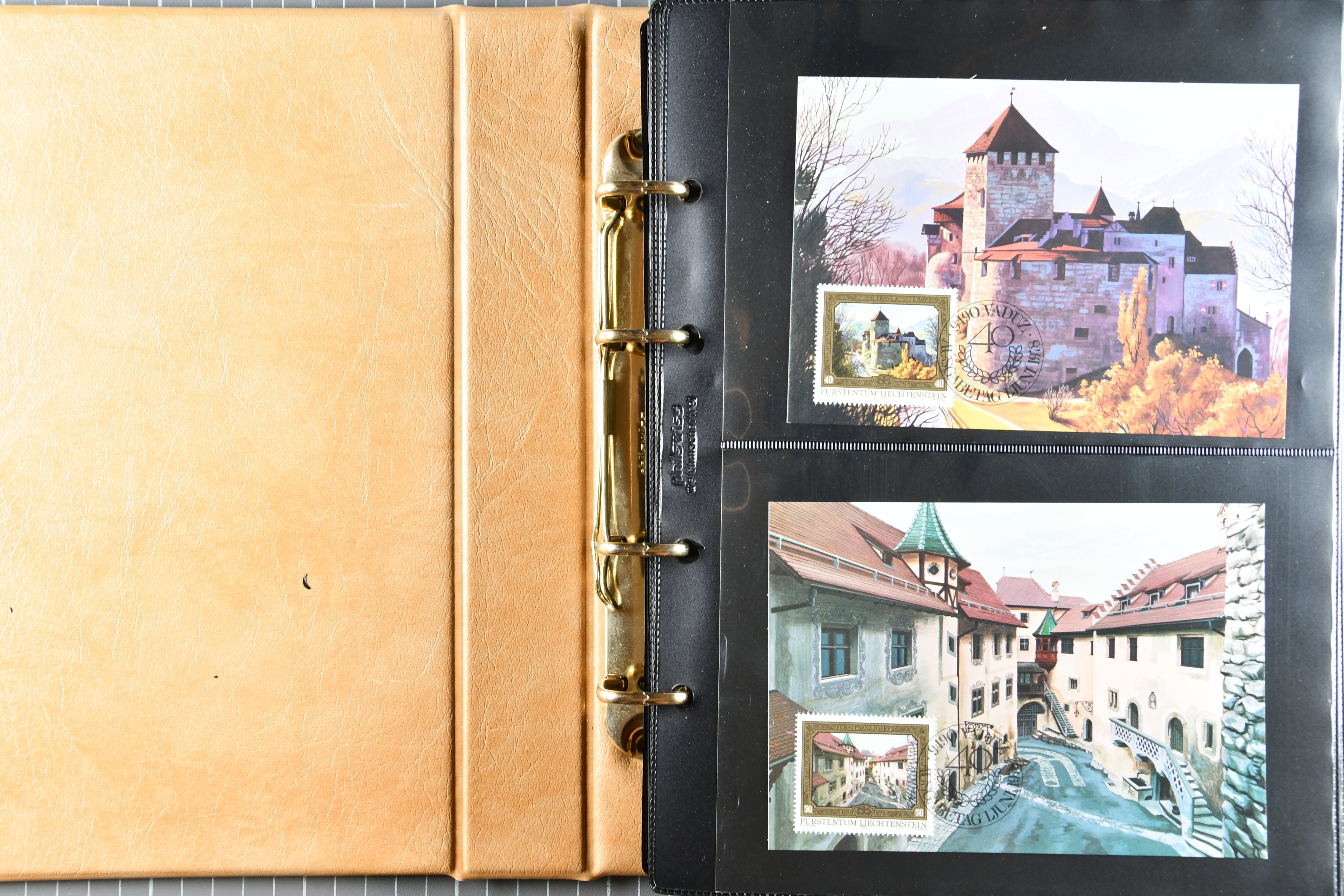 9442 cover 1978/94: Lagerbestand der Maximumkarten Nr. 1 bis 128, meist mehrfach vorhanden, in den ursprünglichen Umschlägen der fürstlichen Postwertzeichenstelle, wobei gerade auch die frühen Karten Nr. 1 (5), 2 (5), 3 (5) und 10 (3) mehrfach zu verzeichnen sind. Dazu gut 50 privat hergestellte Karten, meist aus den 1960er Jahren. Gute Erhaltung.