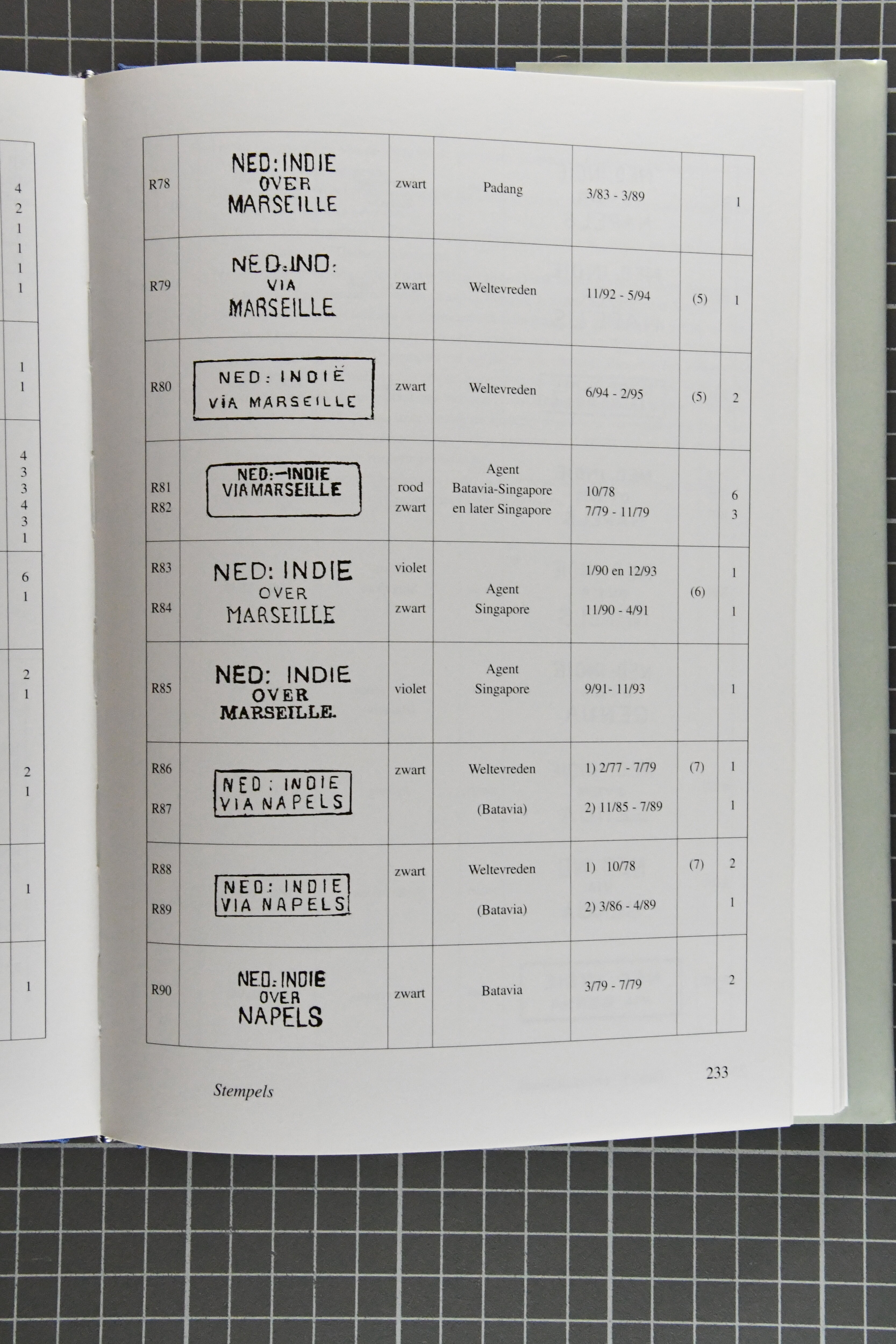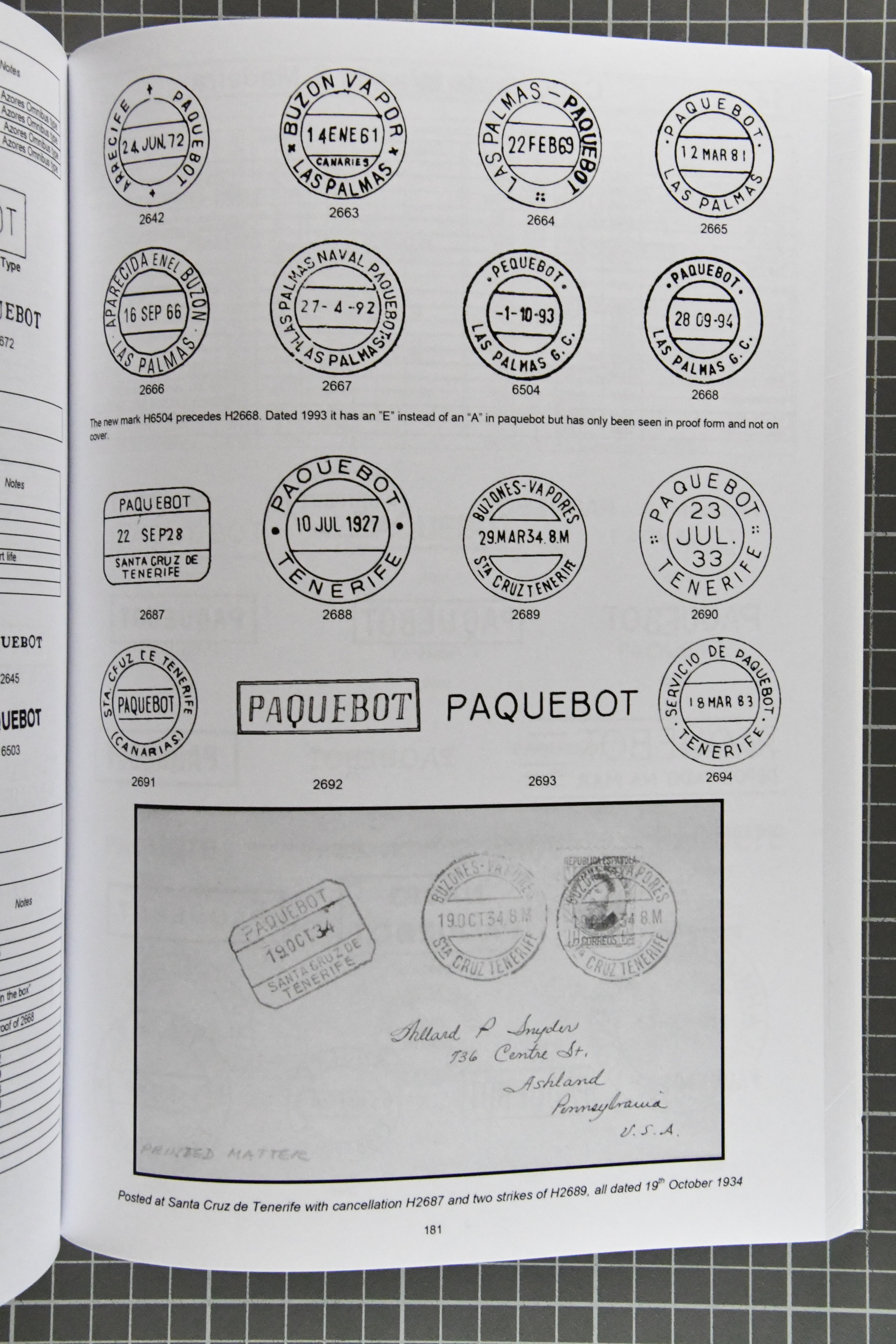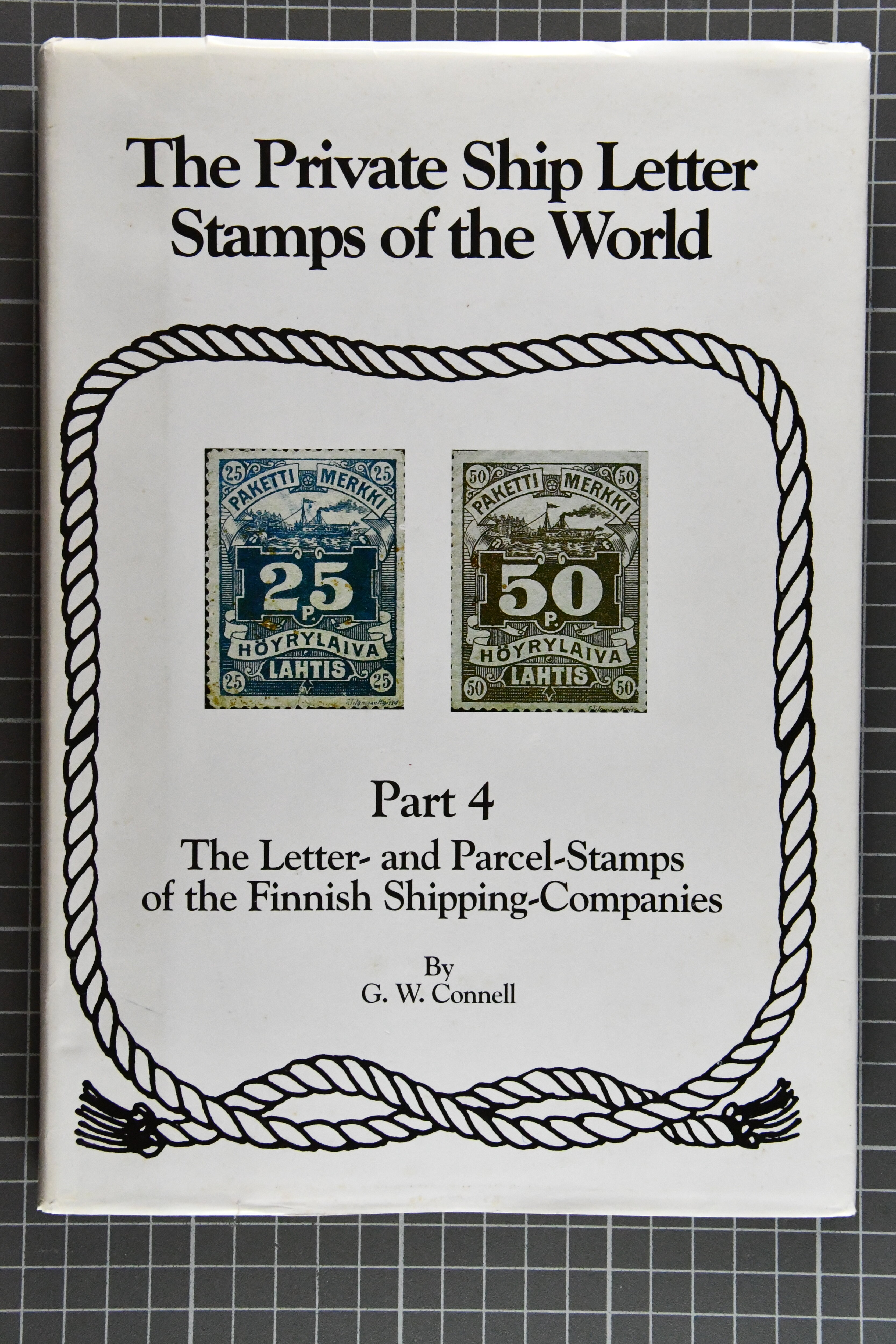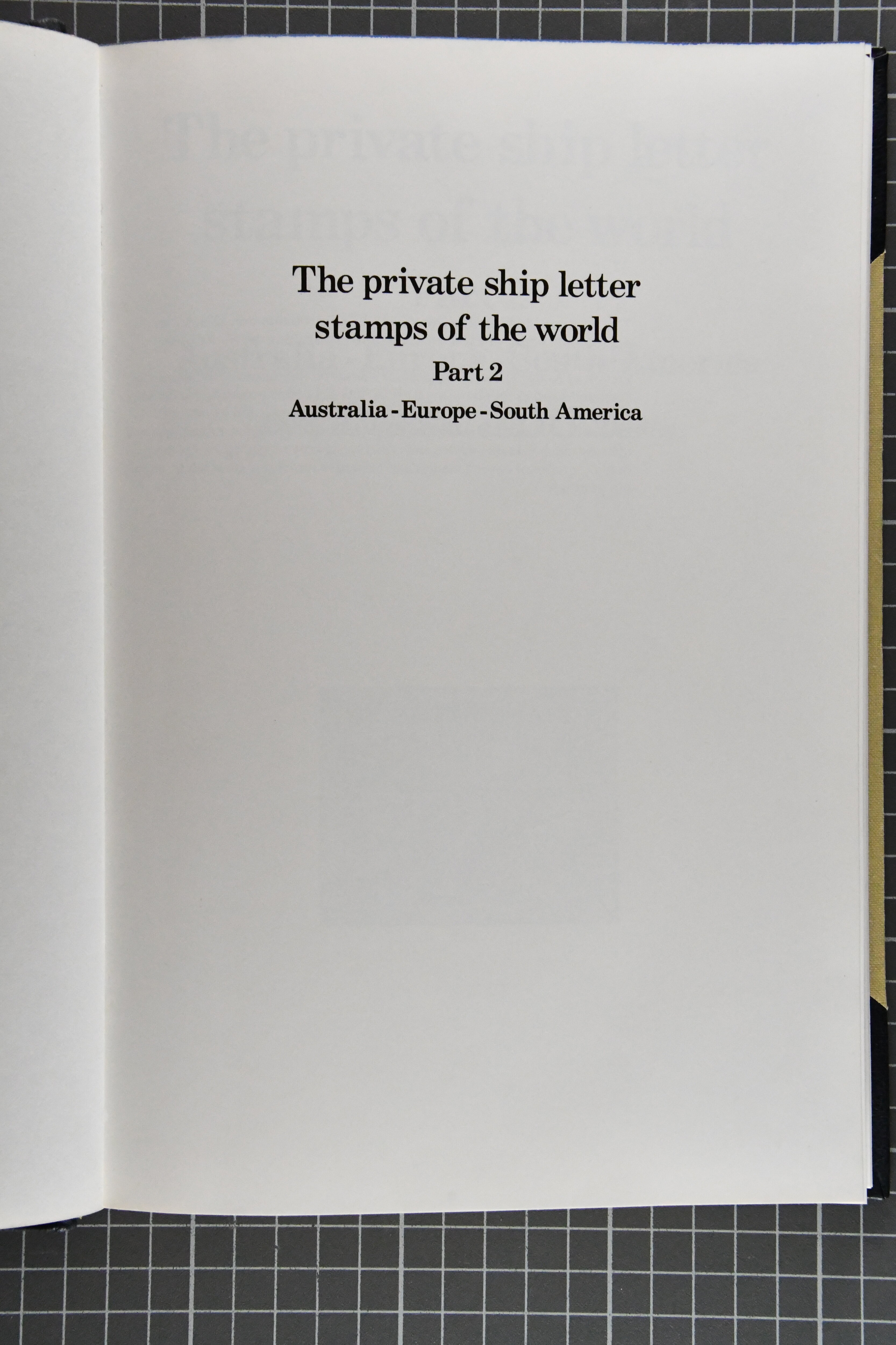 1579 image1973/2010: Maritime Postal History – Specialist Literature Collection The lot includes Encyclopédie de la Poste Maritime Française, Volumes I–IX (Salles), presented as the James Bendon reprint set of nine volumes in excellent condition. Also featured is The Private Ship Letter Stamps of the World, Part I (1976), with the reprints tipped in and the priced catalogue, along with Part II (1981–82, CRAWFORD medal 1982), which has minor water stains on the cover. These volumes are special editions in half-leather. Additionally, Part IV, The Letter and Parcel Stamps of the Finnish Shipping Companies by Connell (1993), is included as number 26 of 50 in half-leather with stamp reproductions, some spotting, and a dust jacket. Also present is Nederlandse Scheepspost II by Delbeke, a two-volume set published in 2004 (CRAWFORD medal 2004). Volume I, hardbound with a dust jacket, was issued in 1998, while Volume II, also hardbound with a dust jacket, dates from 2002. Both volumes are in excellent condition. Catalogue des Marques de Passage 1661–1875 by Van der Linden (CRAWFORD medal 1994), together with the 1998 supplement, is included in a hardbound blue cloth edition from 1994, both in excellent condition. The collection is completed by Paquebot Cancellations of the World by Mike Dovey & Keith Morris (2010). (Image 1) (Image 2) (Image 3) (Image 4) (Image 5) (Image 6) (Image 7) (Image 8) (Image 9) (Image 10) (Image 11) (Image 12) (Image 13) (Image 14) (Image 15) (Image 16) (Image 17) (Image 18) (Image 19) (Image 20) (Image 21) (Image 22) (Image 23)