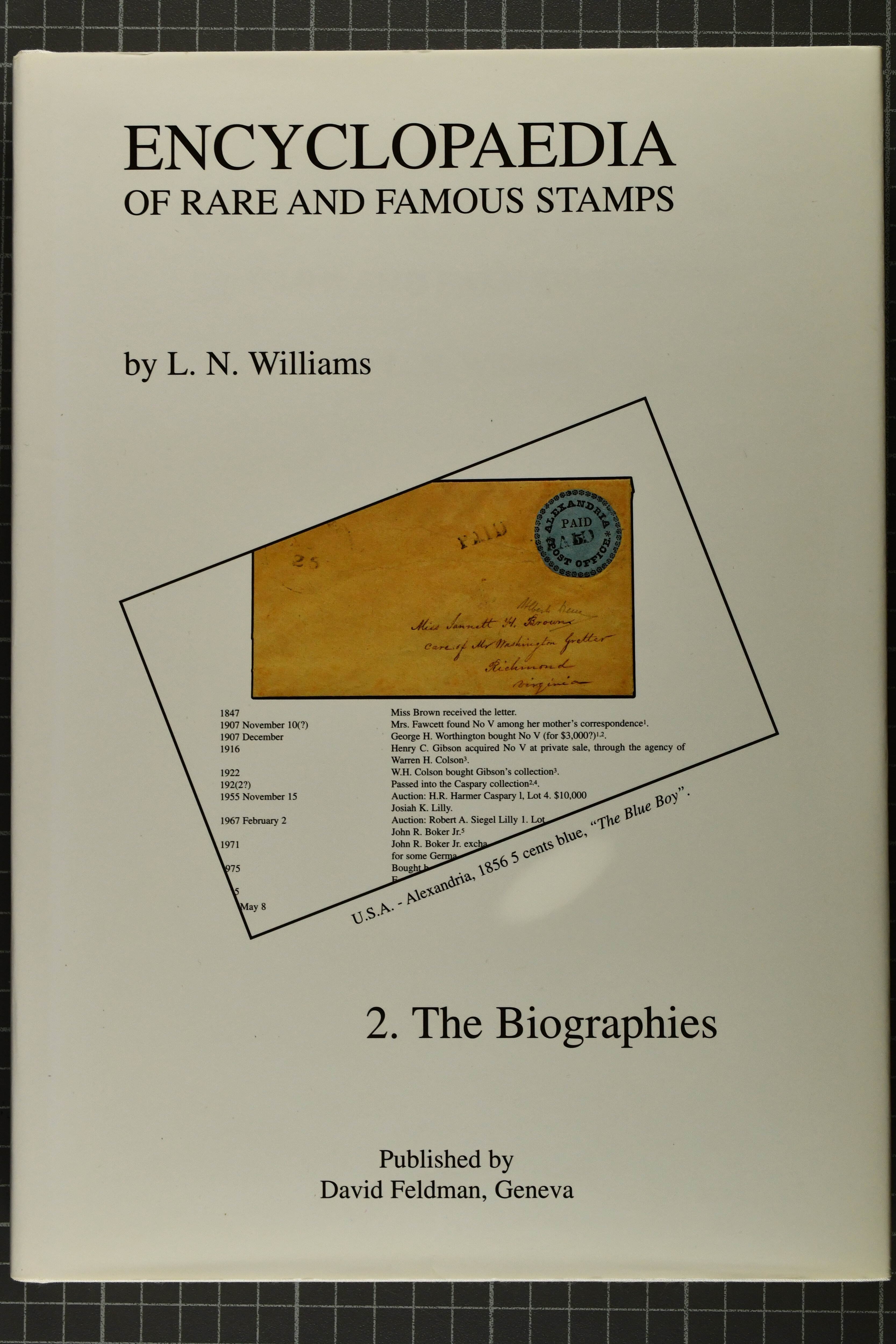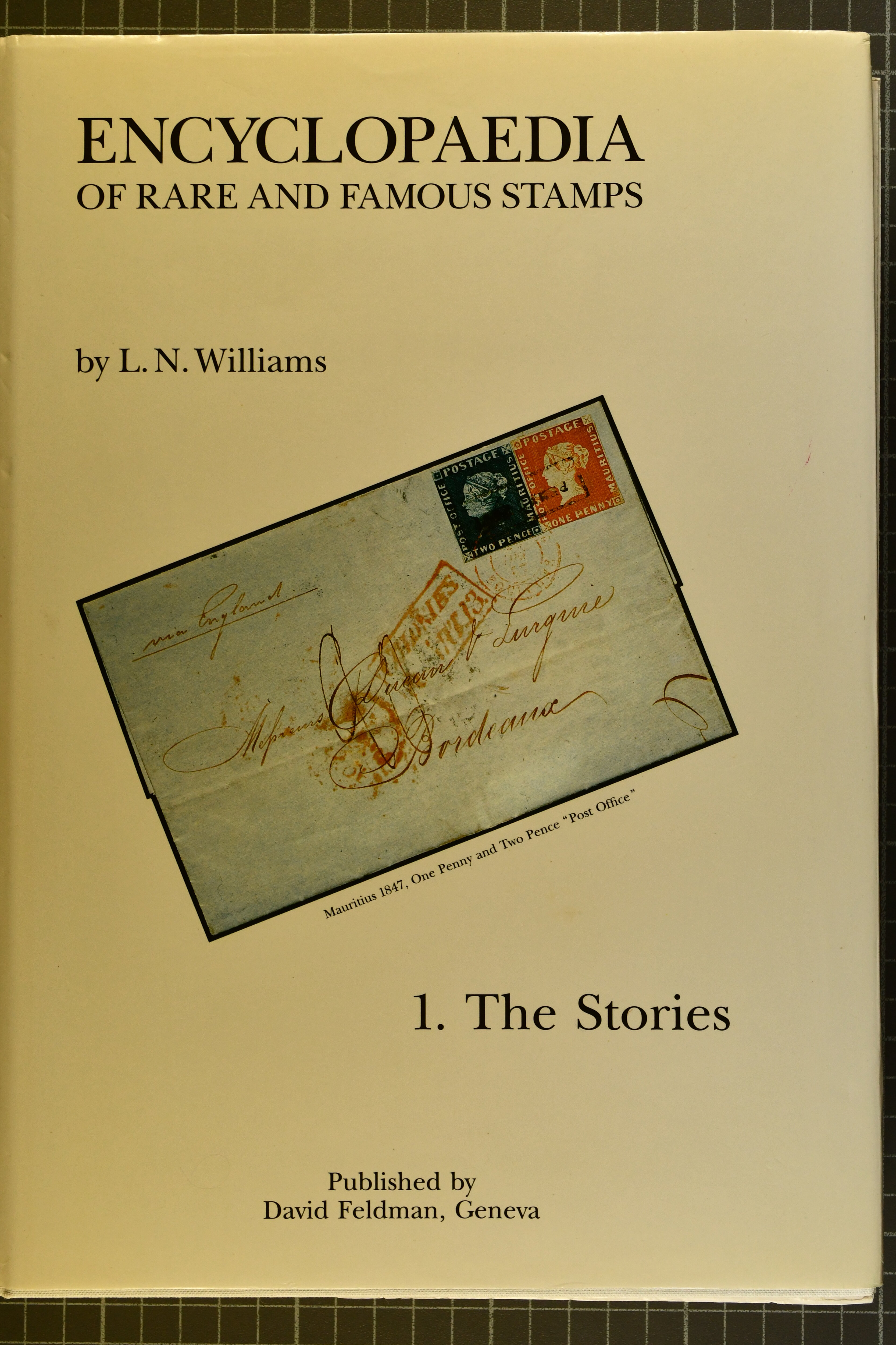 1577 image1993/97: Encyclopaedia of Rare and Famous Stamps: Vol. 1 The Stories and Vol. 2 The Biographies. Vol 1 (1993) by Williams, hardbound in white cloth with dust jacket. Signed by the author. Vol 2 (1997) by Williams, hardbound in white cloth with dust jacket. Signed dedication to 'John' (Arnold Rudge). Both volumes in good condition and ex Arnold Rudge (A Mauritius specialist of the early primitive issues). (Image 1) (Image 2) (Image 3) (Image 4) (Image 5) (Image 6) (Image 7) (Image 8) (Image 9) (Image 10) (Image 11) (Image 12)