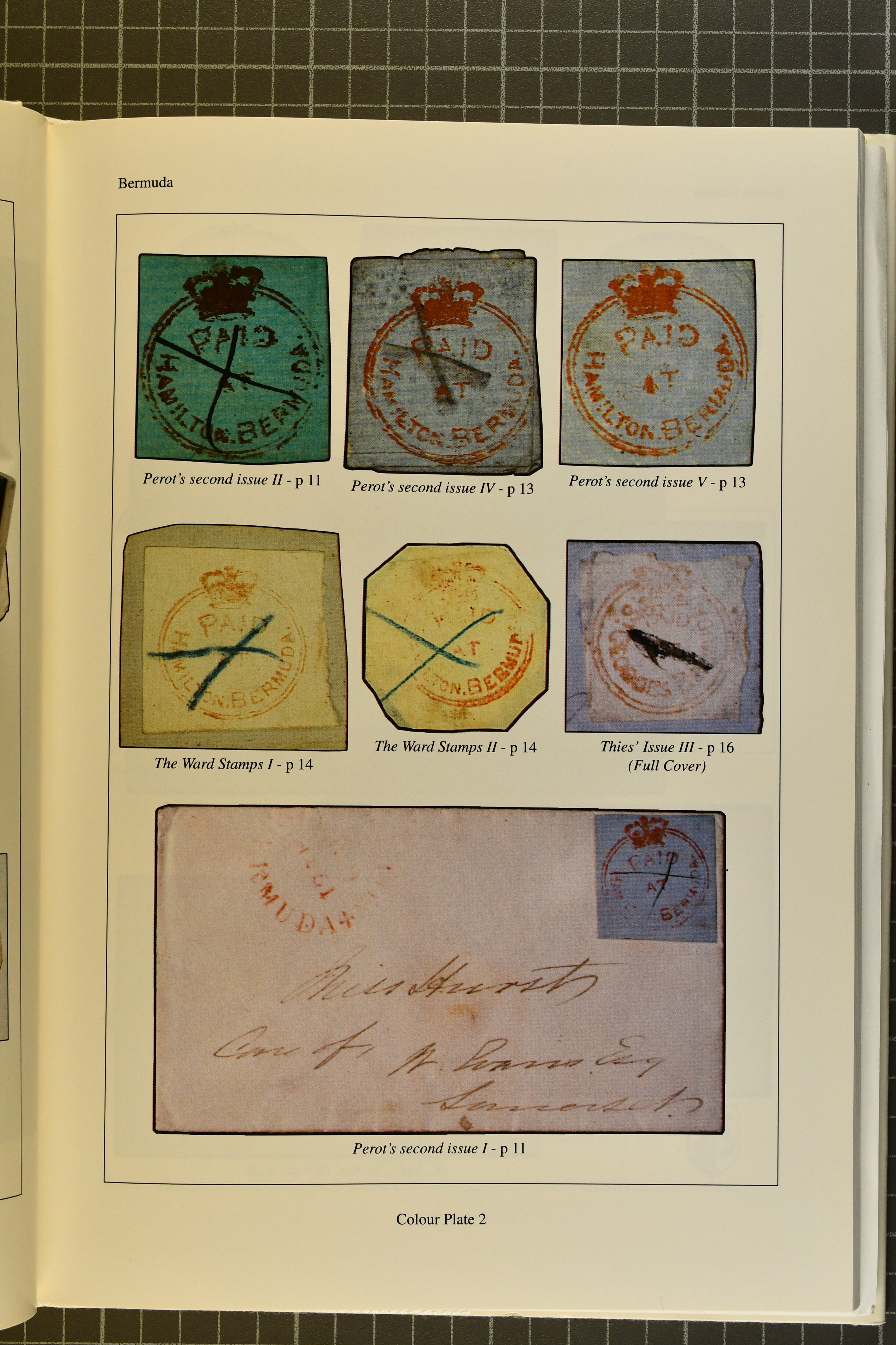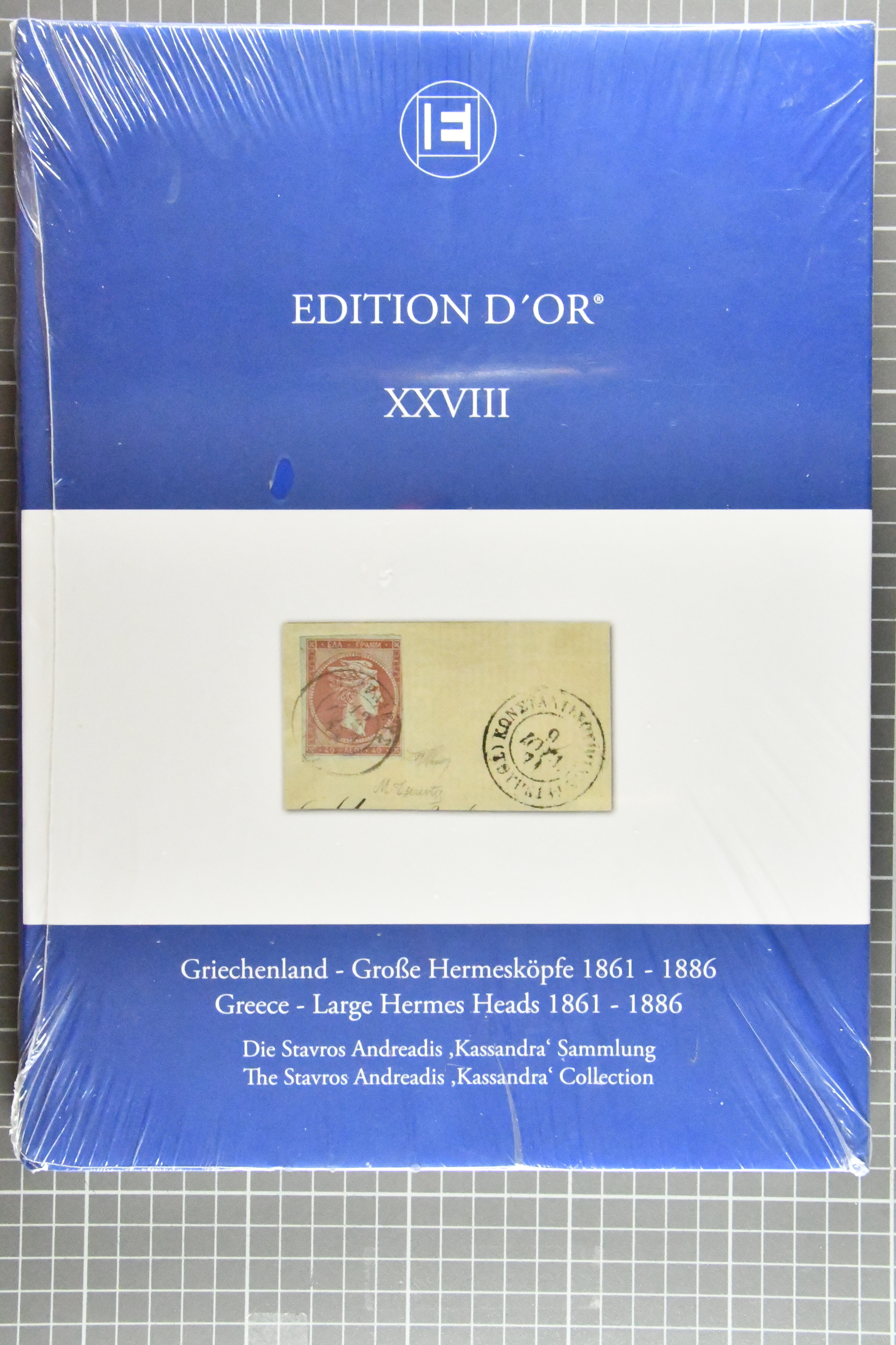 1578 image1935/2000ca.: 'From the Azores to New Zealand', Patrick Maselis ; 'Great Britain and Colonies; Handbook of thematic Philately' W.E.J van den Bold, 1990; 'Geschichte der Philatelie', Vols. I & II (Bruhl). Hardbound in blue cloth with dust wrappers in slipcase. In excellent condition, Carlrichard Brühl; Edition D'Or number 28 Greece - Large Hermes Heads 1861 - 1886, 'The Stavros Andreadis, "Kassandra" Collection', hardbound with dust jacket in excellent condition in original shrink wrap, this title is sold out. Plus 7 colour guides (3 per 2x). (Image 1) (Image 2) (Image 3) (Image 4) (Image 5) (Image 6) (Image 7) (Image 8) (Image 9) (Image 10)