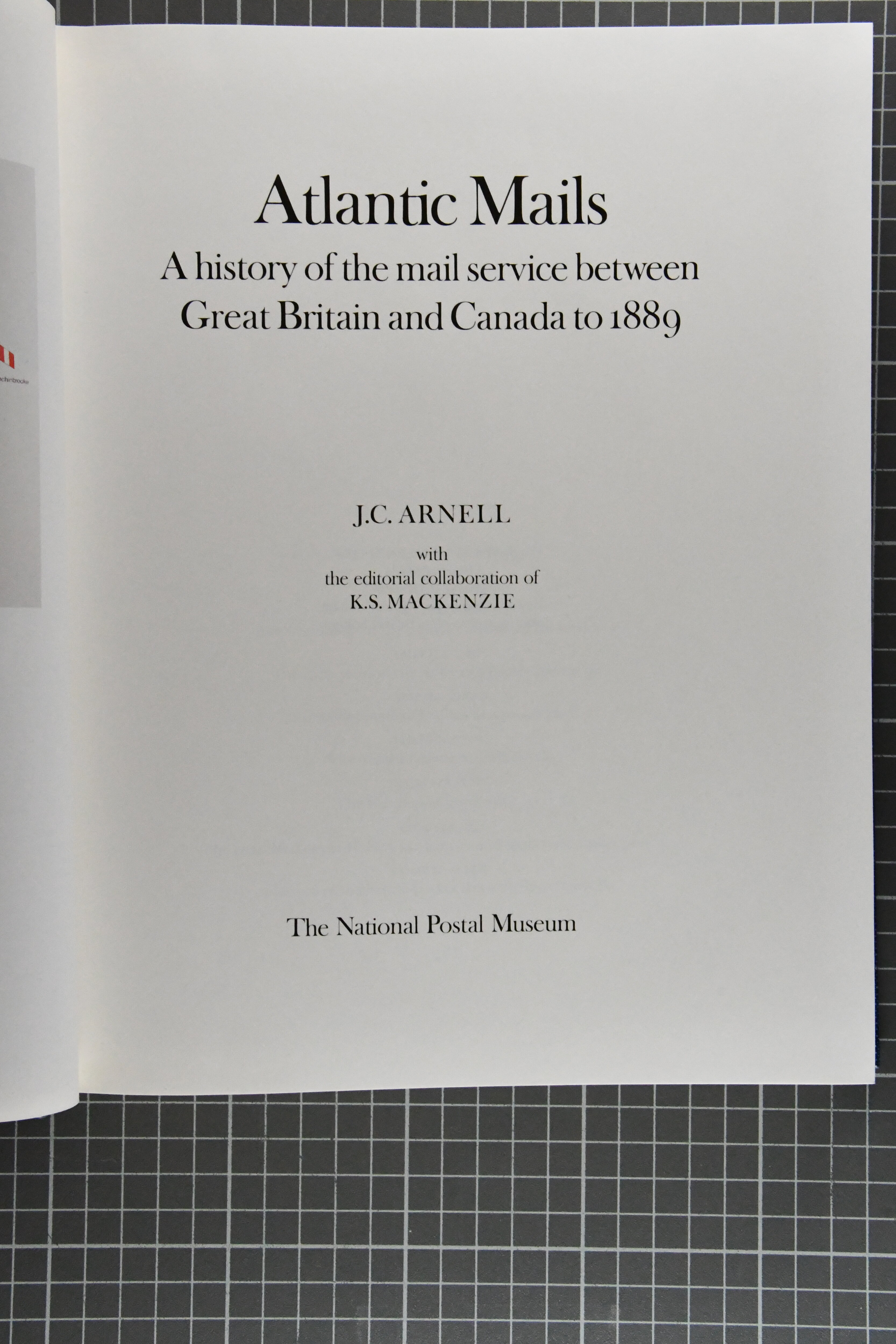 1581 image1980/2006: Transatlantic Mail, fine assembly of literature - 'ATLANTIC MAILS, A history of the mail service between Great Britain and Canada to 1889' by J.C. Arnell , De Luxe Edition from 1980, number 26 of 250 handbound in quarter morocco slipcased, and signed by the author; 'North Atlantic Mails Sailings 1840/75' by Walter Hubbard and Richard F. Winter; 'Understanding Transatlantic Mail Volume 1 and 2', includes CD by Richard F. Winter 2006; 'La correspondance à travers les océans Des origines jusqu'a 1875' by James van der Linden 2019. (Image 1) (Image 2) (Image 3) (Image 4) (Image 5)
