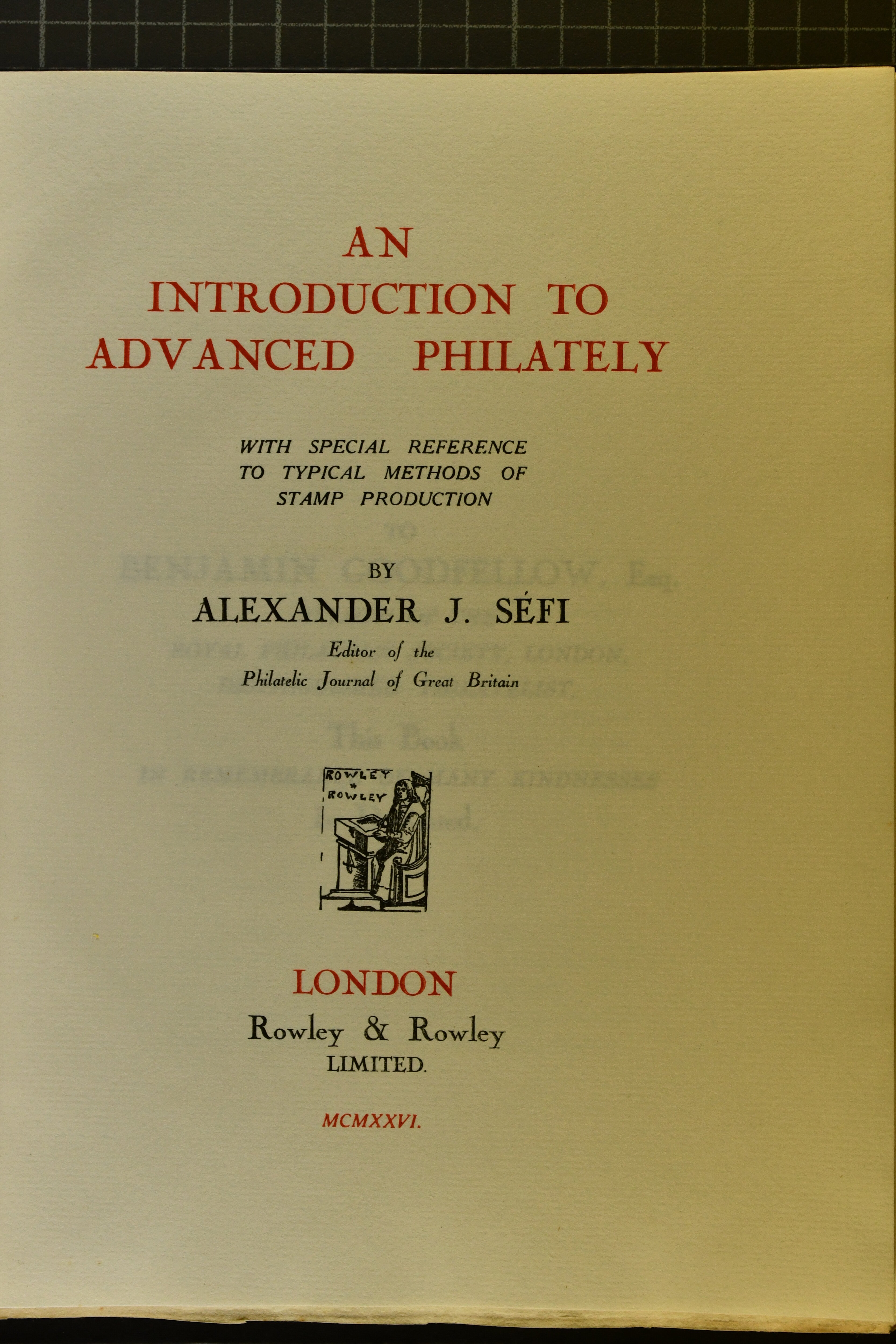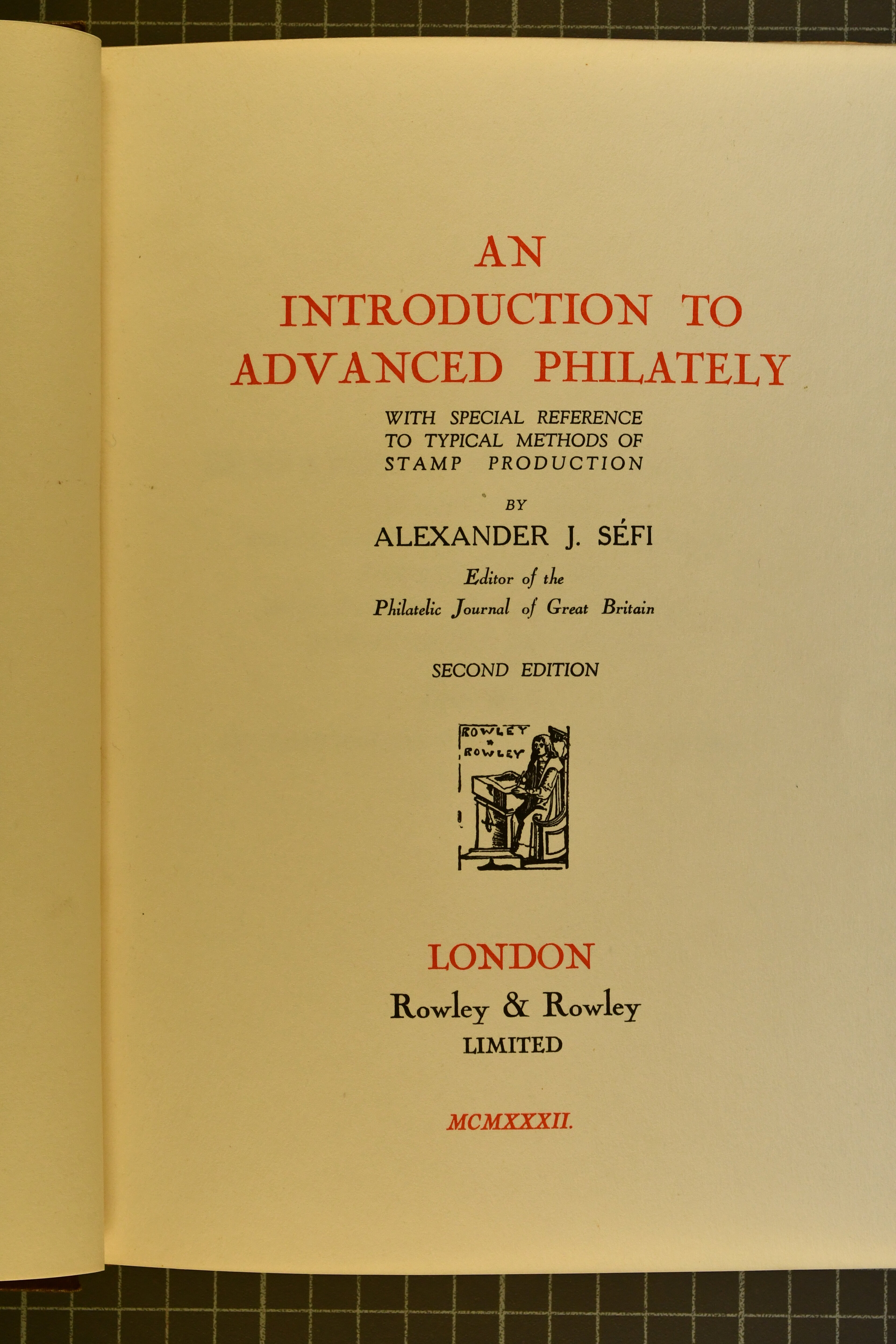 1576 image1926/32: 'An Introduction to Advanced Philately: With Special Reference to Typical Methods of Stamp Production' by Alexander J. Séfi. 1st edition 1926 number 126 of 250 and 2nd editon, 1932, number 32 of 350, both edited by Rowley & Rowley Limited, (Image 1) (Image 2) (Image 3) (Image 4) (Image 5) (Image 6) (Image 7) (Image 8) (Image 9) (Image 10)