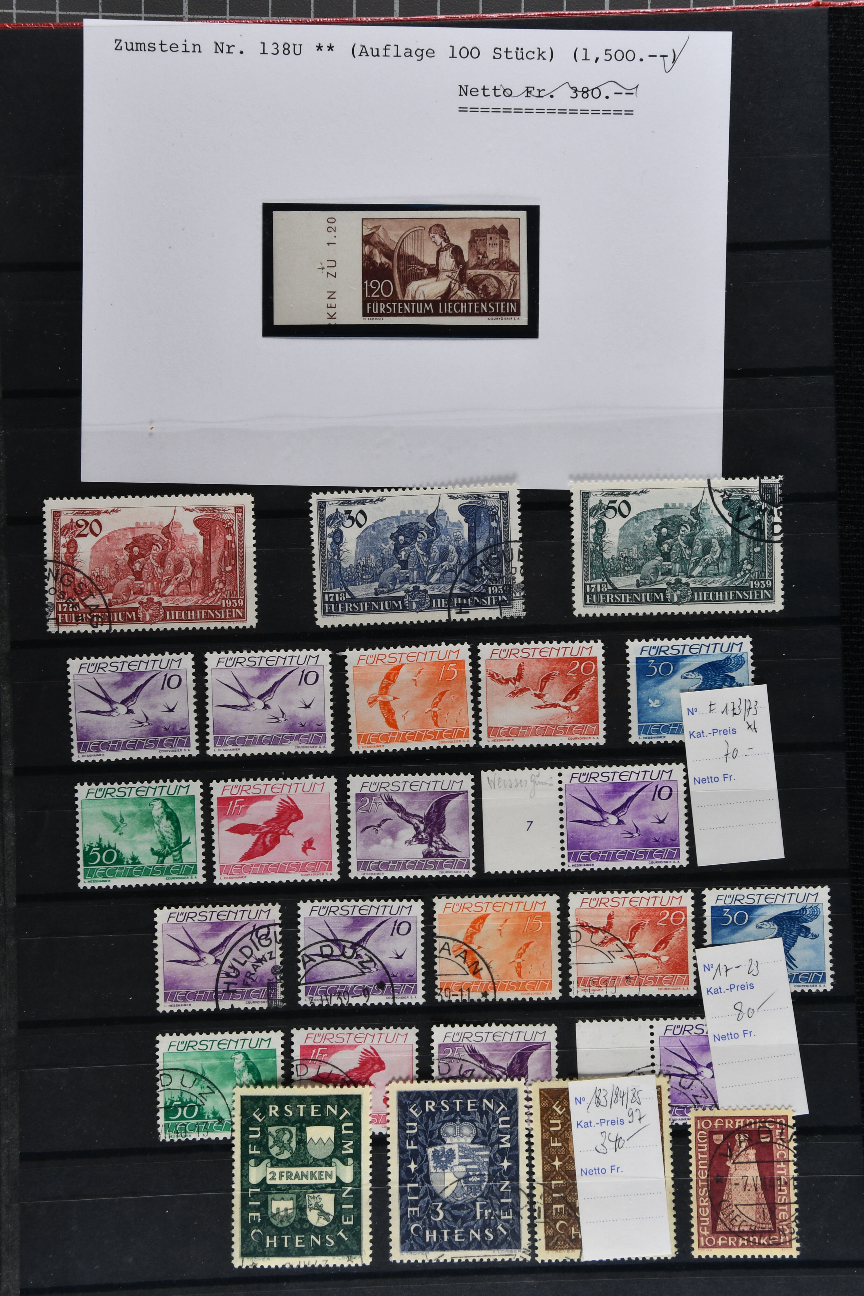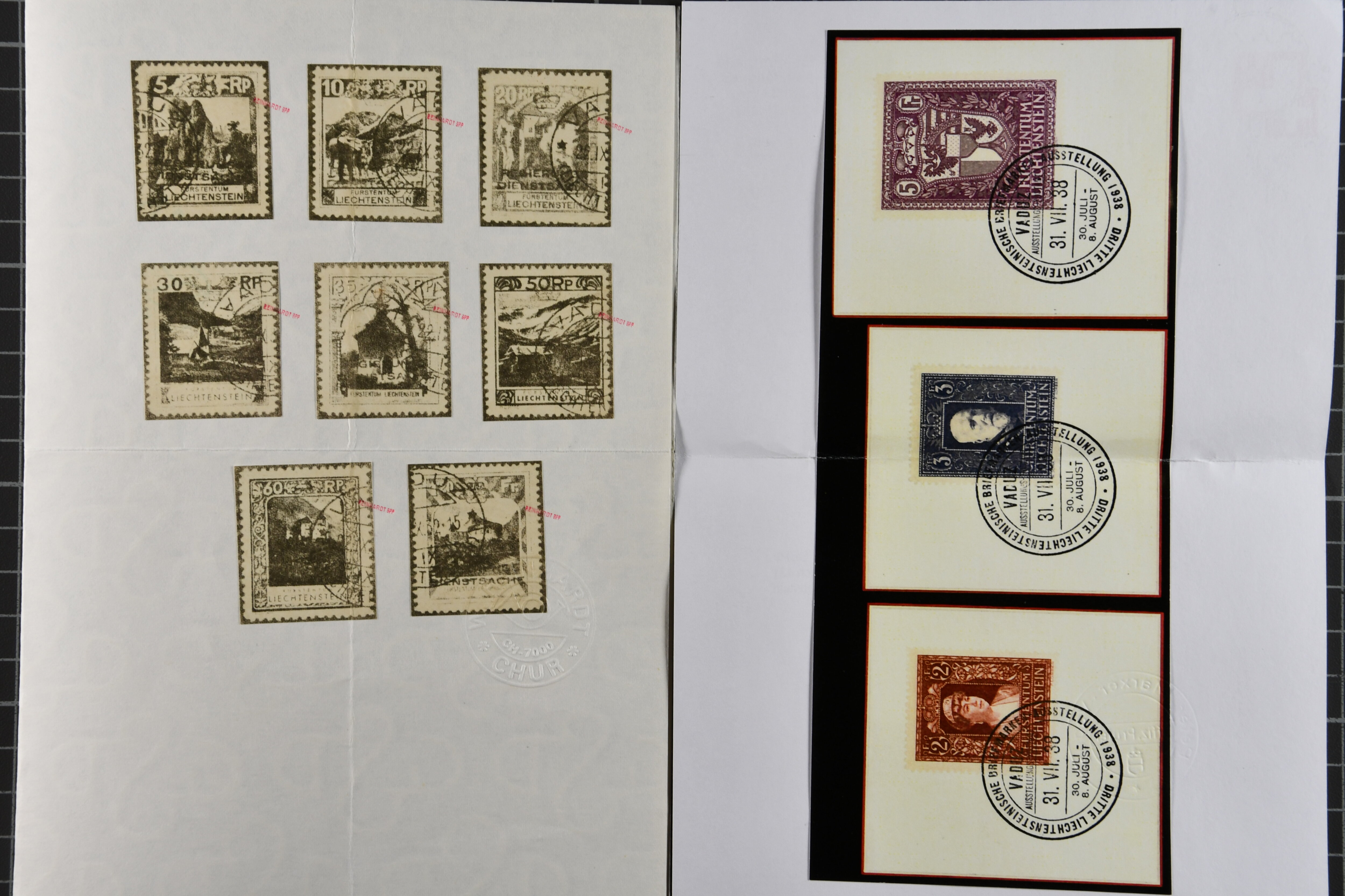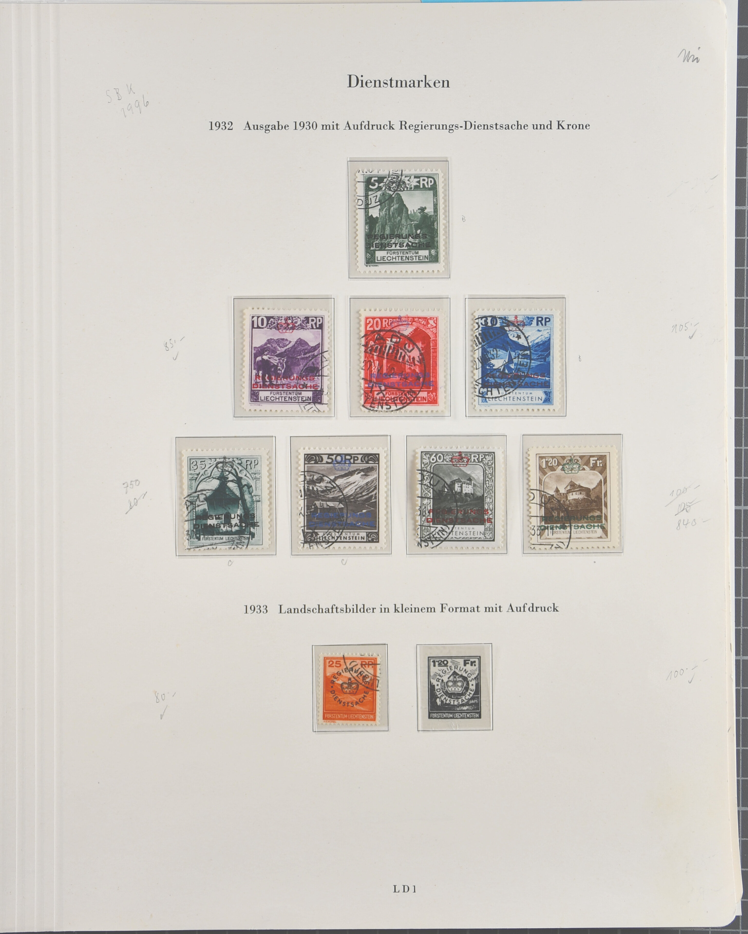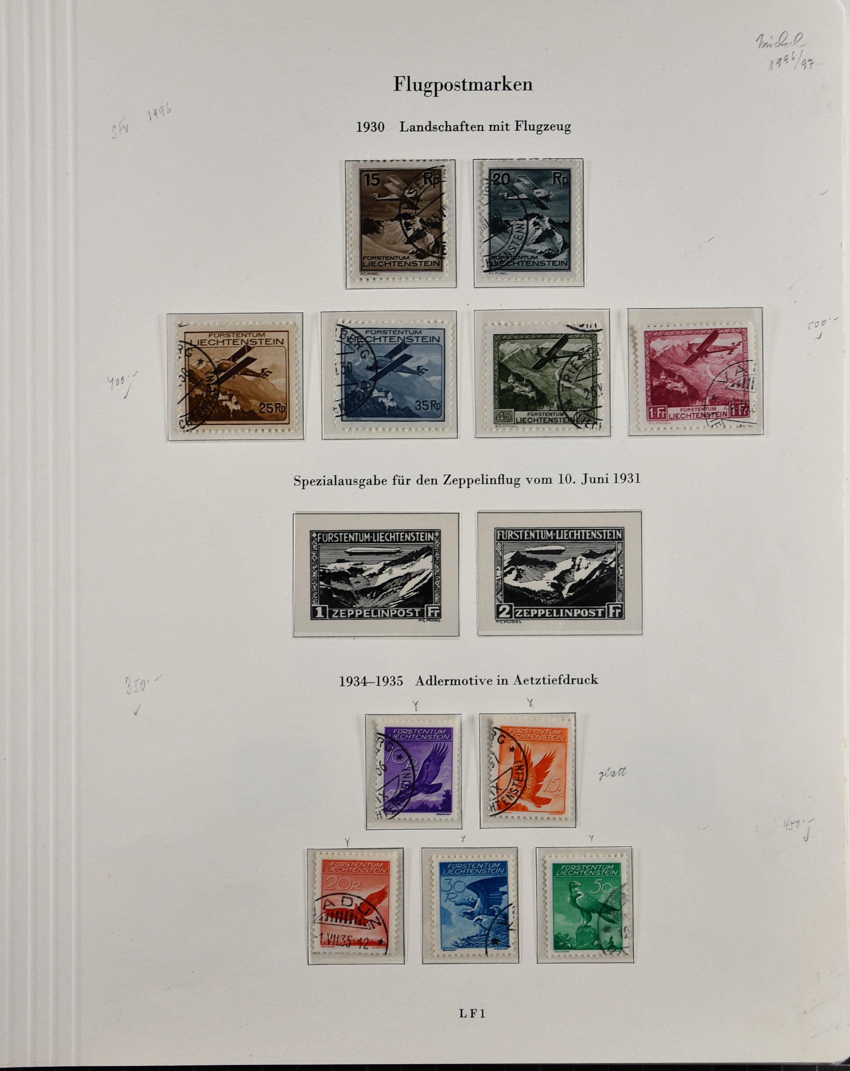 9440 image1912/99: Vorab doppelt gest. / ungest. geführte Sammlung der Markenausgaben von Liechtenstein, dabei 1912 Kreidepapier, 1928 Regierungsjubiläum, 1933 Freimarken, VADUZ-Block, 1933/35 Freimarken, der 3 Fr.-Wert signiert "Ferd. Lorbeer", auch Flugpost mit Zeppelin, Porto- und Dienstmarken mit Landschaften. SBK nach Angaben des Einlieferers CHF 40'000. (Image 1) (Image 2) (Image 3) (Image 4) (Image 5) (Image 6) (Image 7) (Image 8) (Image 9) (Image 10) (Image 11) (Image 12) (Image 13) (Image 14) (Image 15) (Image 16) (Image 17) (Image 18) (Image 19) (Image 20) (Image 21) (Image 22) (Image 23) (Image 24) (Image 25) (Image 26) (Image 27) (Image 28)