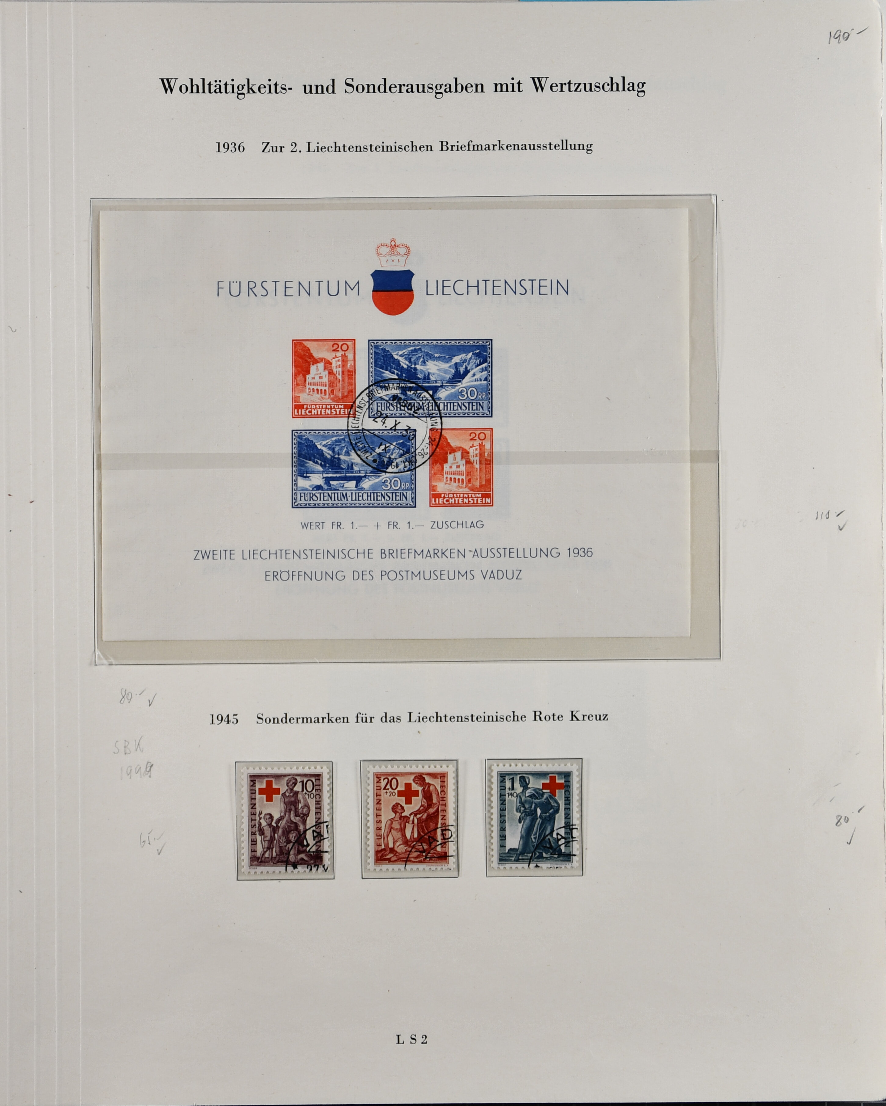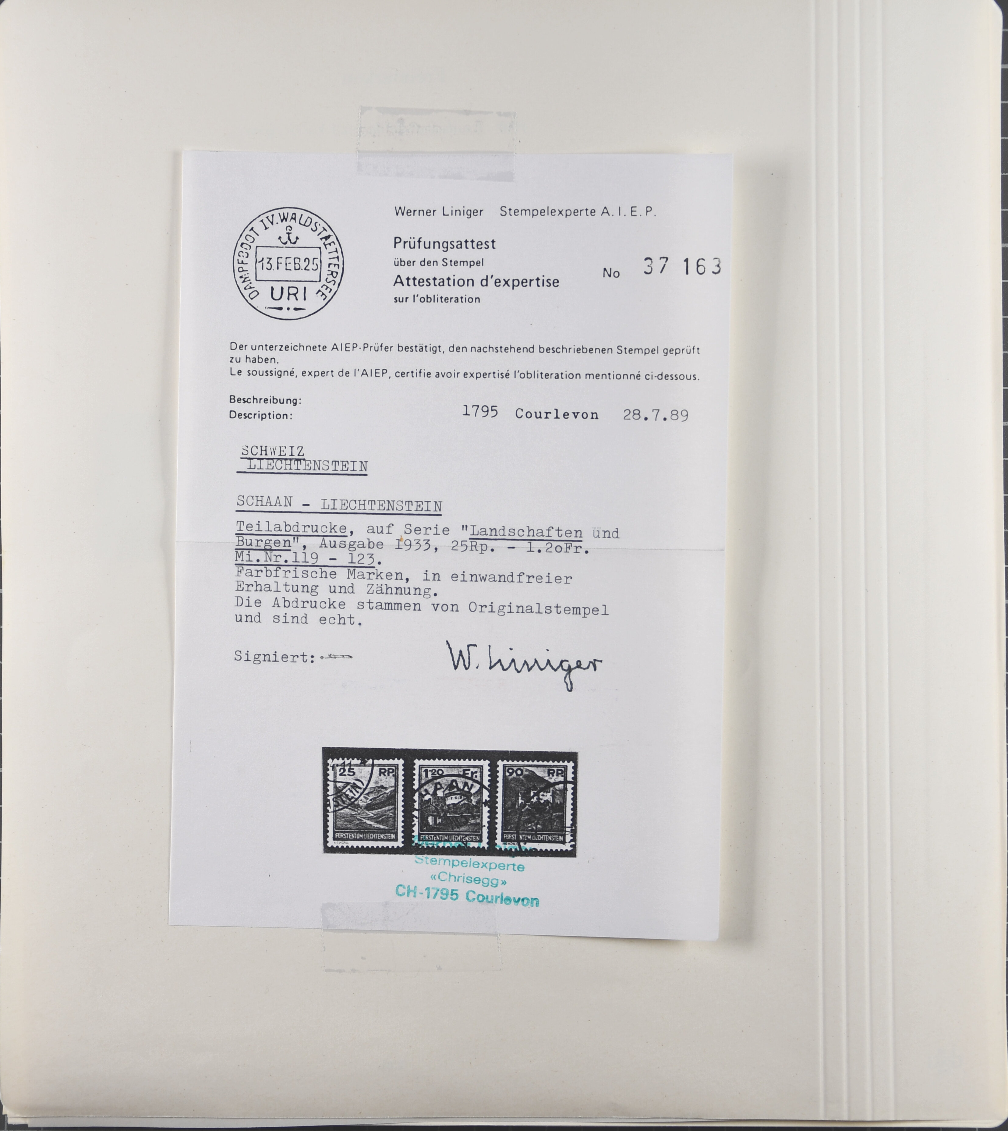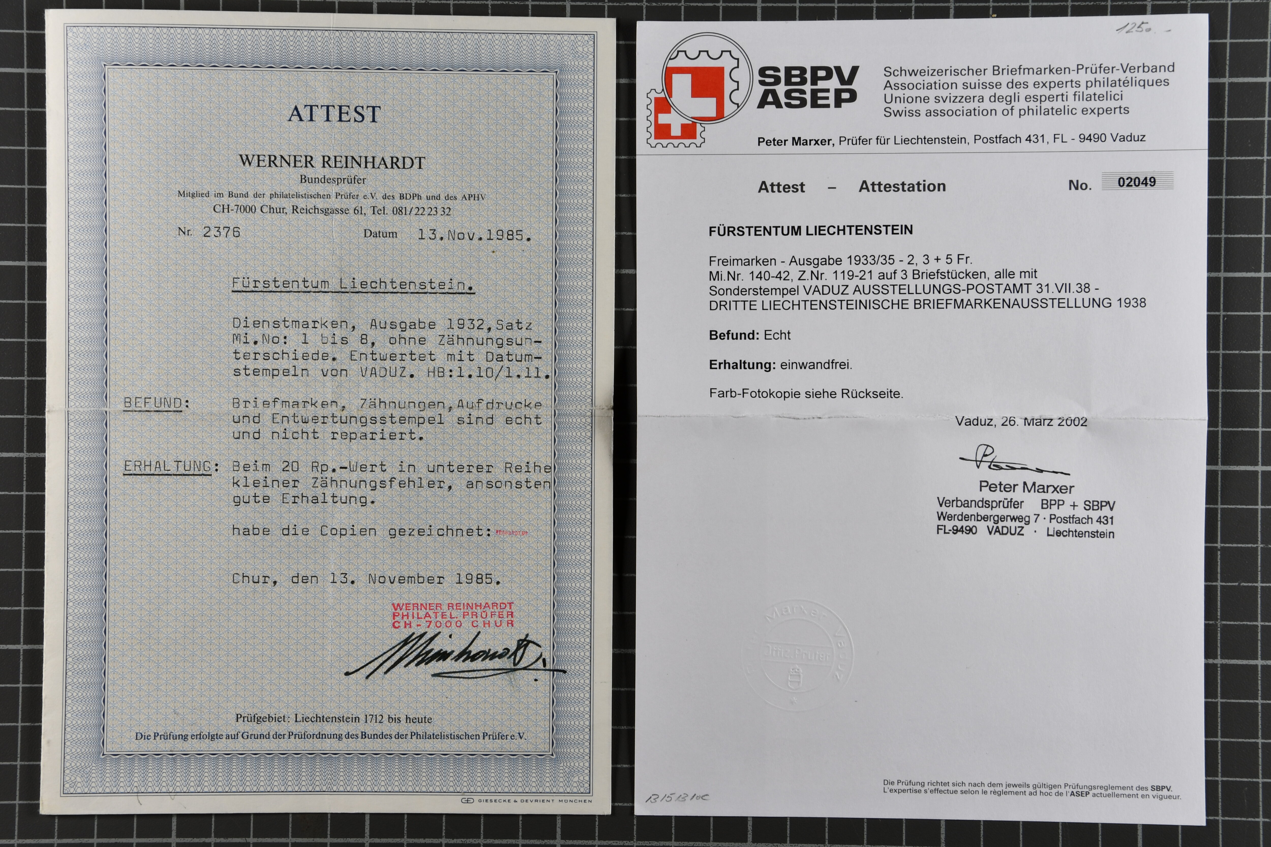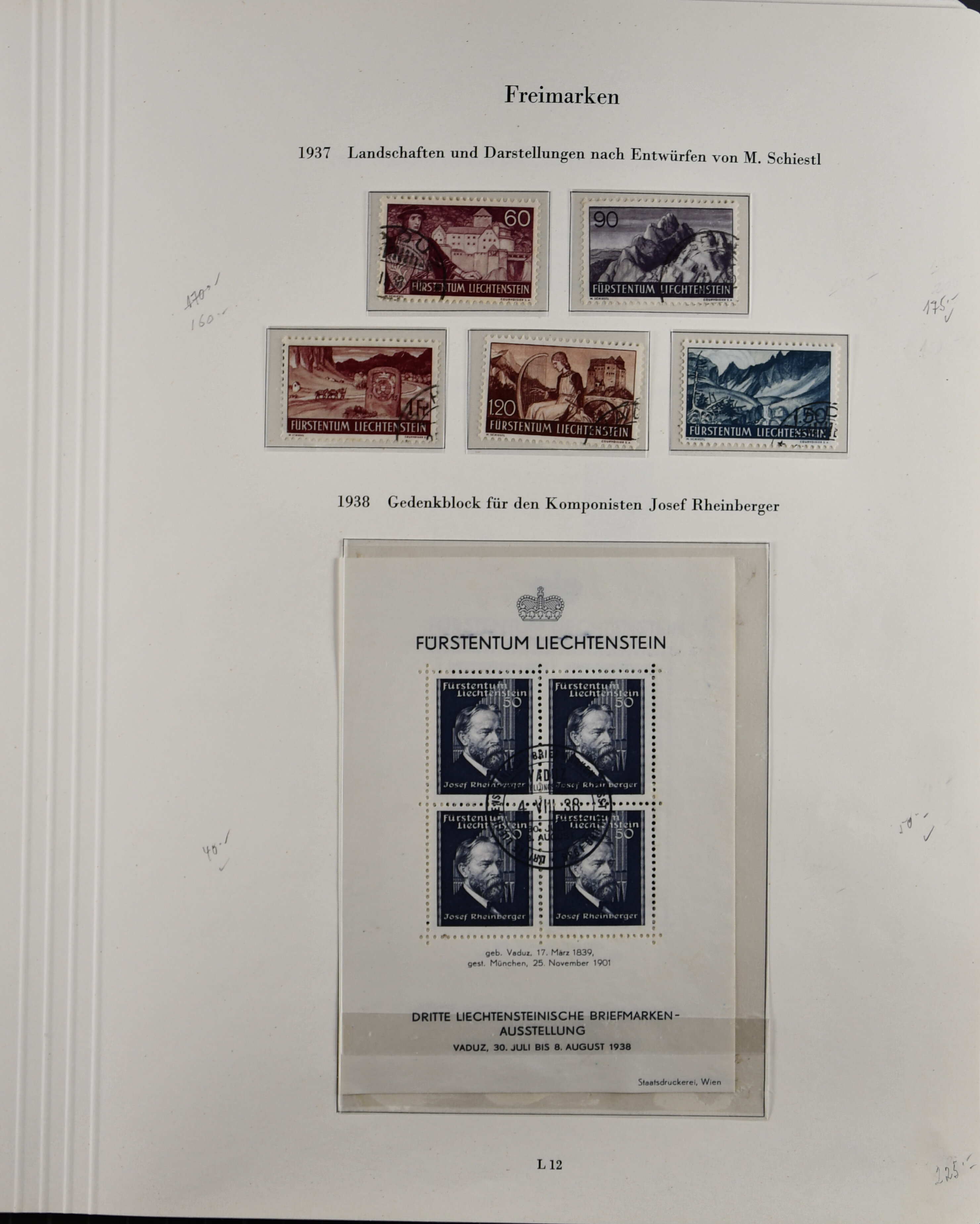 9440 image1912/99: Vorab doppelt gest. / ungest. geführte Sammlung der Markenausgaben von Liechtenstein, dabei 1912 Kreidepapier, 1928 Regierungsjubiläum, 1933 Freimarken, VADUZ-Block, 1933/35 Freimarken, der 3 Fr.-Wert signiert "Ferd. Lorbeer", auch Flugpost mit Zeppelin, Porto- und Dienstmarken mit Landschaften. SBK nach Angaben des Einlieferers CHF 40'000. (Image 1) (Image 2) (Image 3) (Image 4) (Image 5) (Image 6) (Image 7) (Image 8) (Image 9) (Image 10) (Image 11) (Image 12) (Image 13) (Image 14) (Image 15) (Image 16) (Image 17) (Image 18) (Image 19) (Image 20) (Image 21) (Image 22) (Image 23) (Image 24) (Image 25) (Image 26) (Image 27) (Image 28)