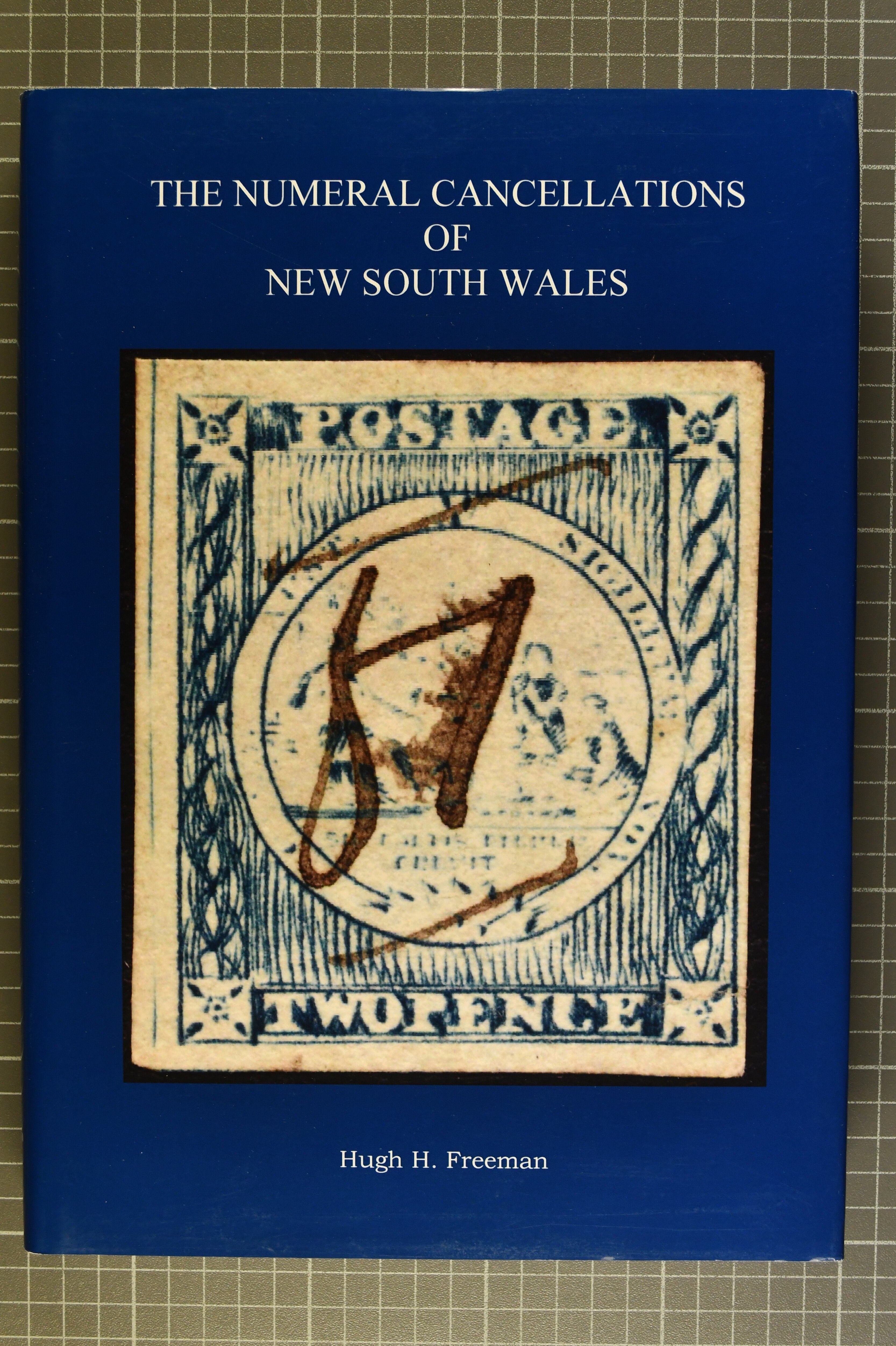 Stamps and the Twopence Queen Enthroned by Pack 1923 (CRAWFORD medal 1923), hardbound with a gilded top edge and in good condition. Also featured is The Numeral Cancellations of New South Wales by Hugh F. Freeman (1984) and Queensland Postage Stamps