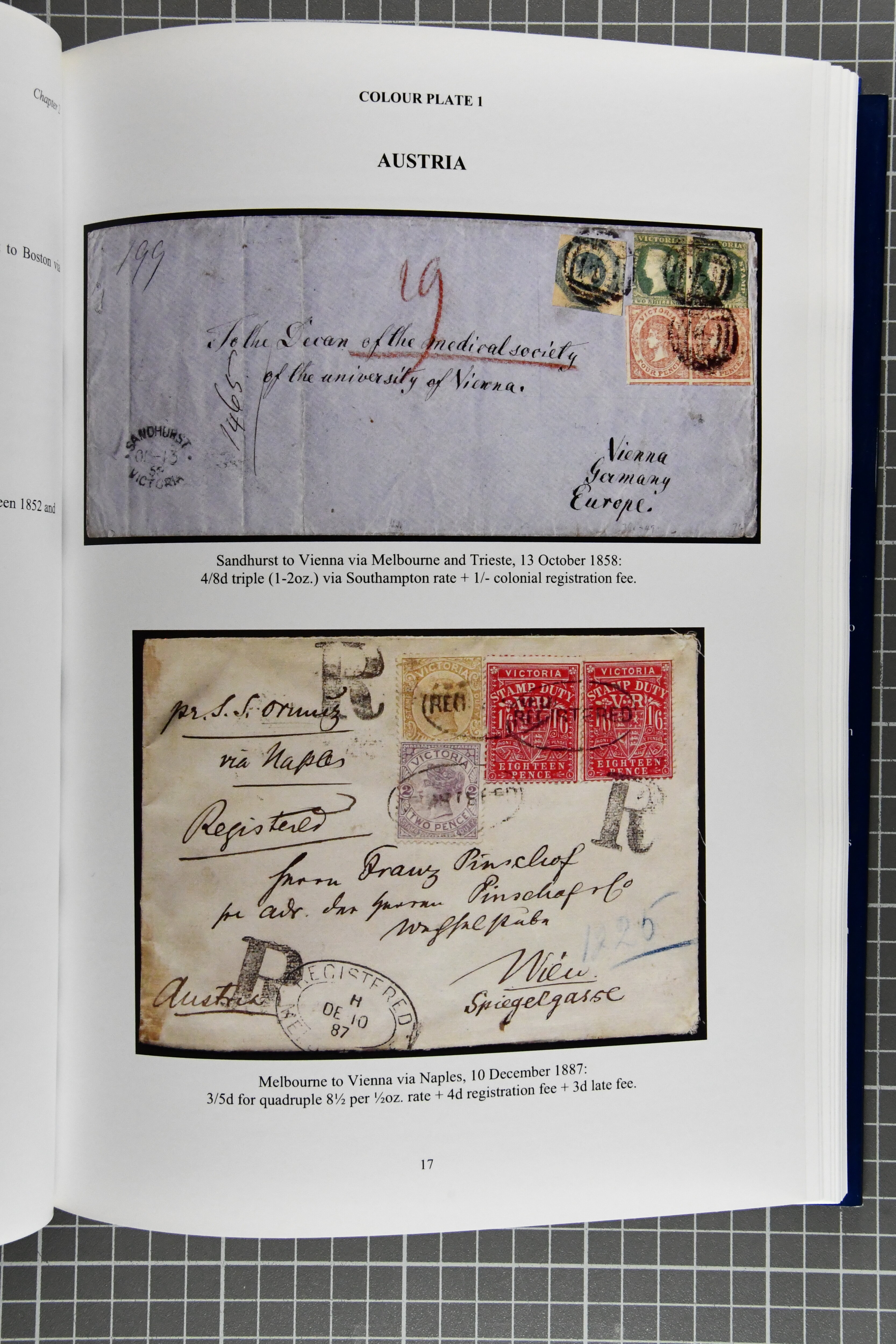 2009-2021: Three important works about Australien States covers: -The Pre-UPU Destination Mail of Victoria (2009) by Ben Palmer, hardbound in blue cloth with dust 125 wrapper. #80 of 150 copies. Signed by the