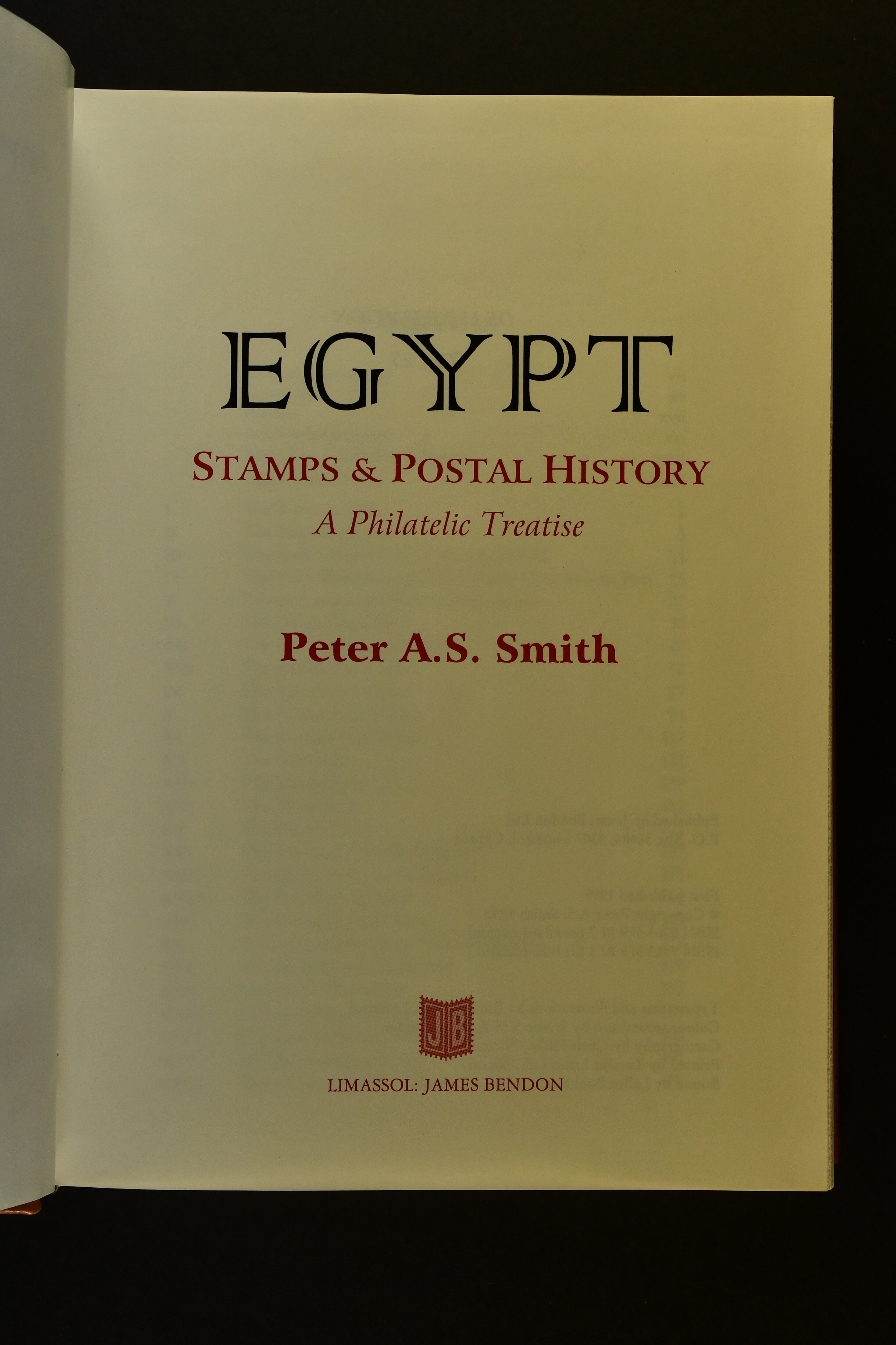 2000: Egypt Stamps & Postal History A Philatelic Treatise (Smith). Hardbound in full brown leather deluxe edition. No 22 of 25 signed by the author. A rare modern classic handbook. In superb condition. This