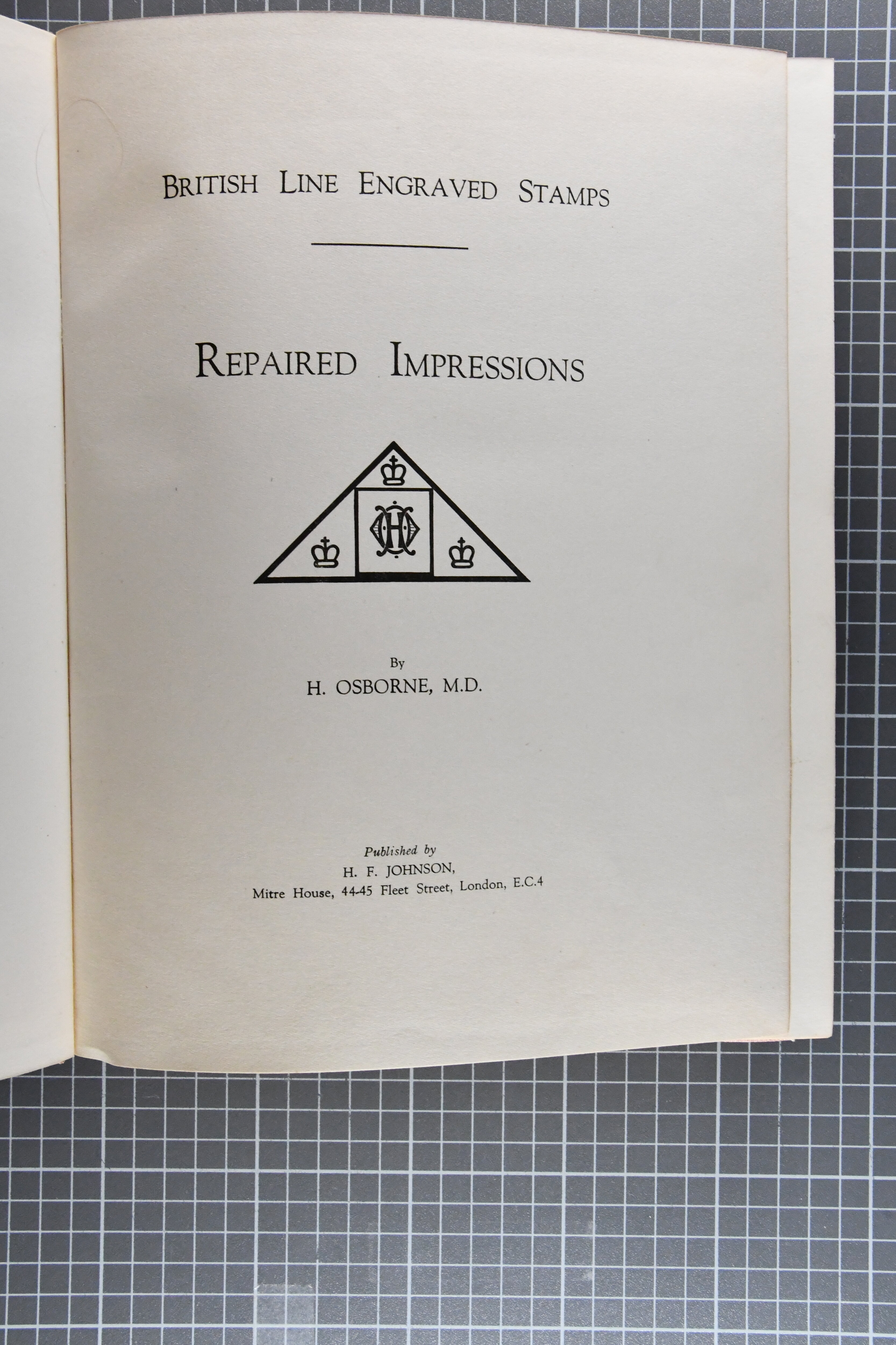 philatelic handbook. Also by the same author British Line Engraved Stamps Repaired impressions hardbound in slightly faded red cloth and British Line Engraved Stamps Twopence Blue Studies of Plates 1 to 15 hardbound in slightly faded red cloth. An