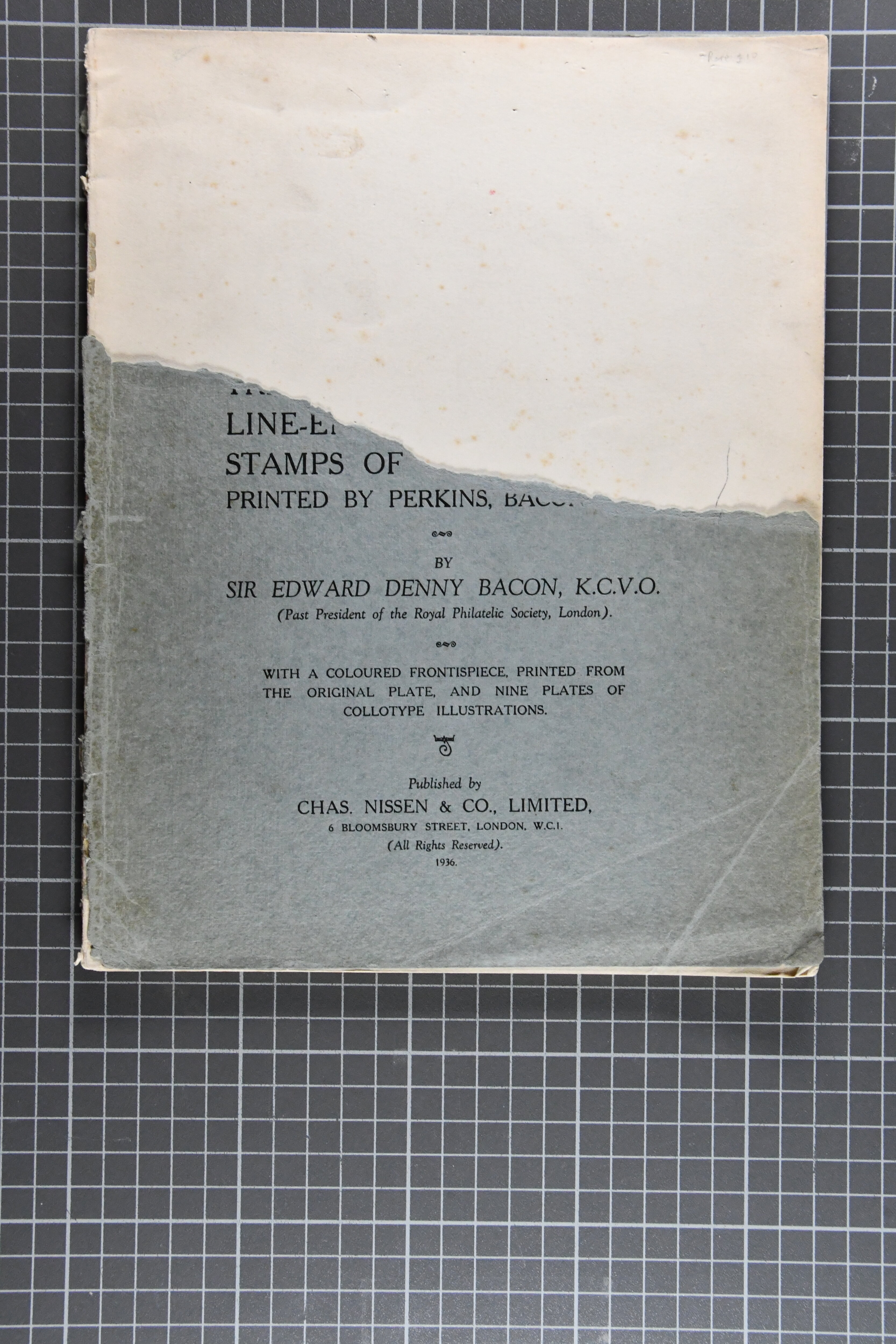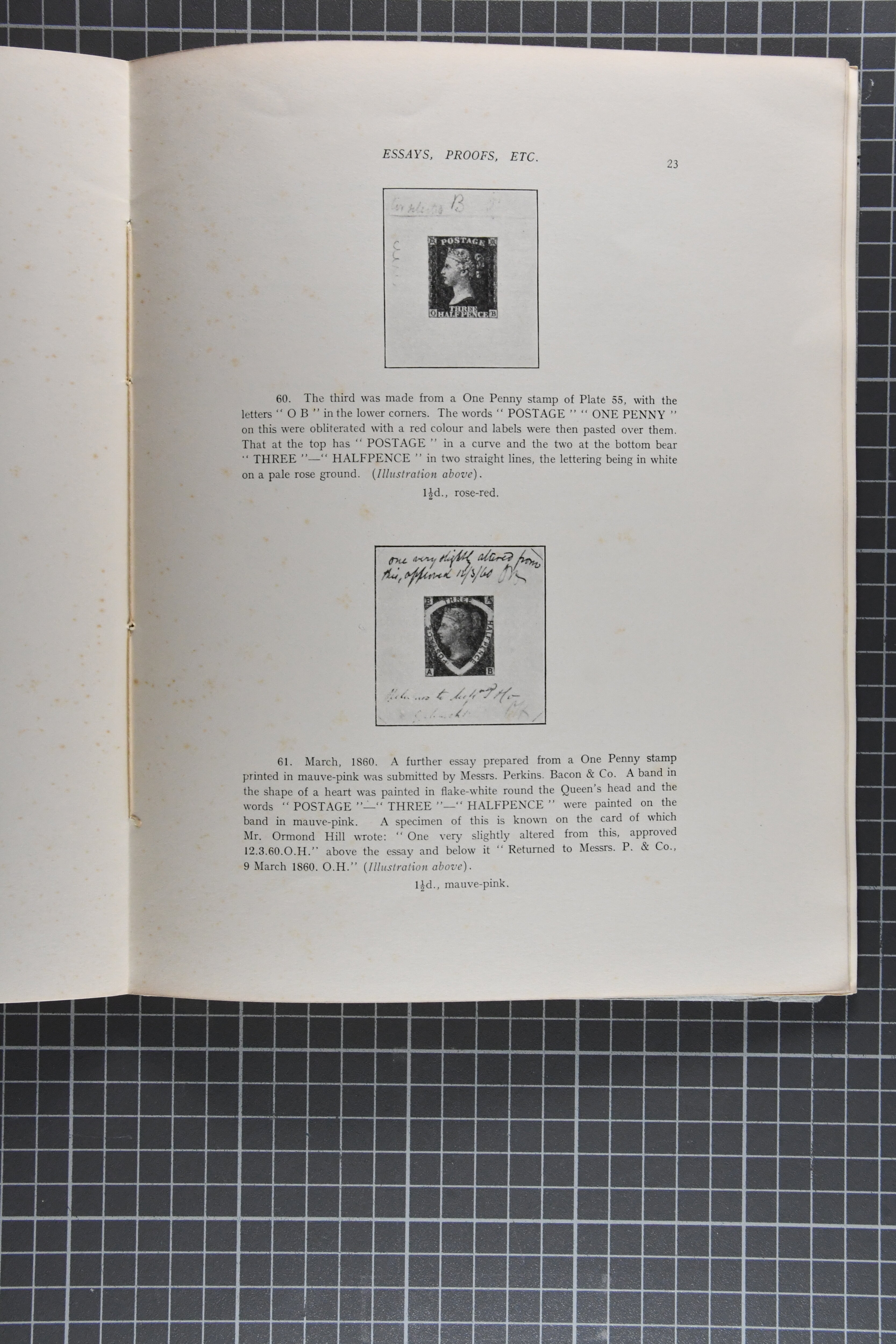 Plus a damaged copy of the very rare Essays, Proofs, Colour Trials & Reprints of the Line-engraved Postage Stamps of Great Britain Printed by Perkins, Bacon & Co. which includes the rare loose page 33 which is often missing. (Image 1)