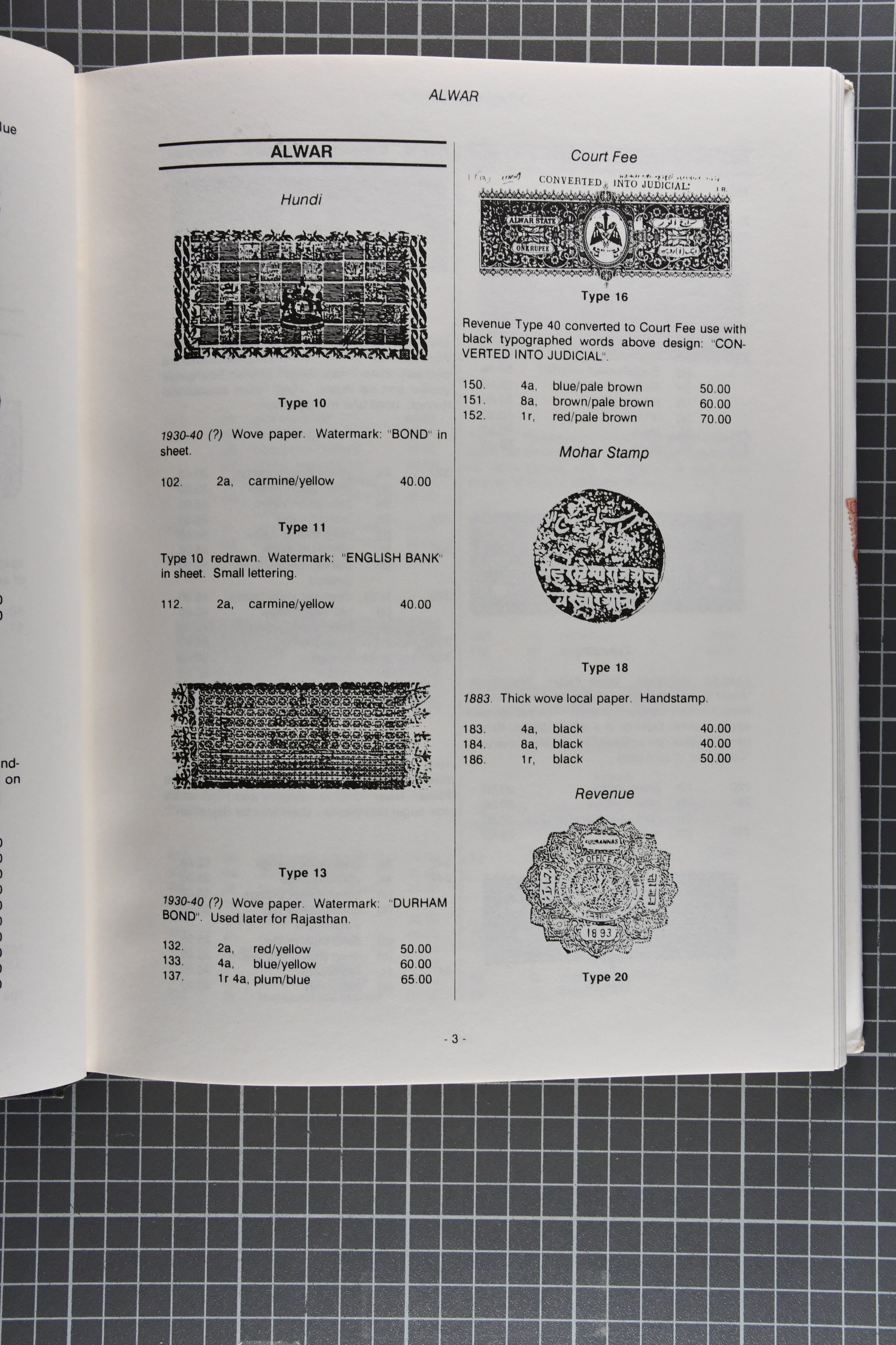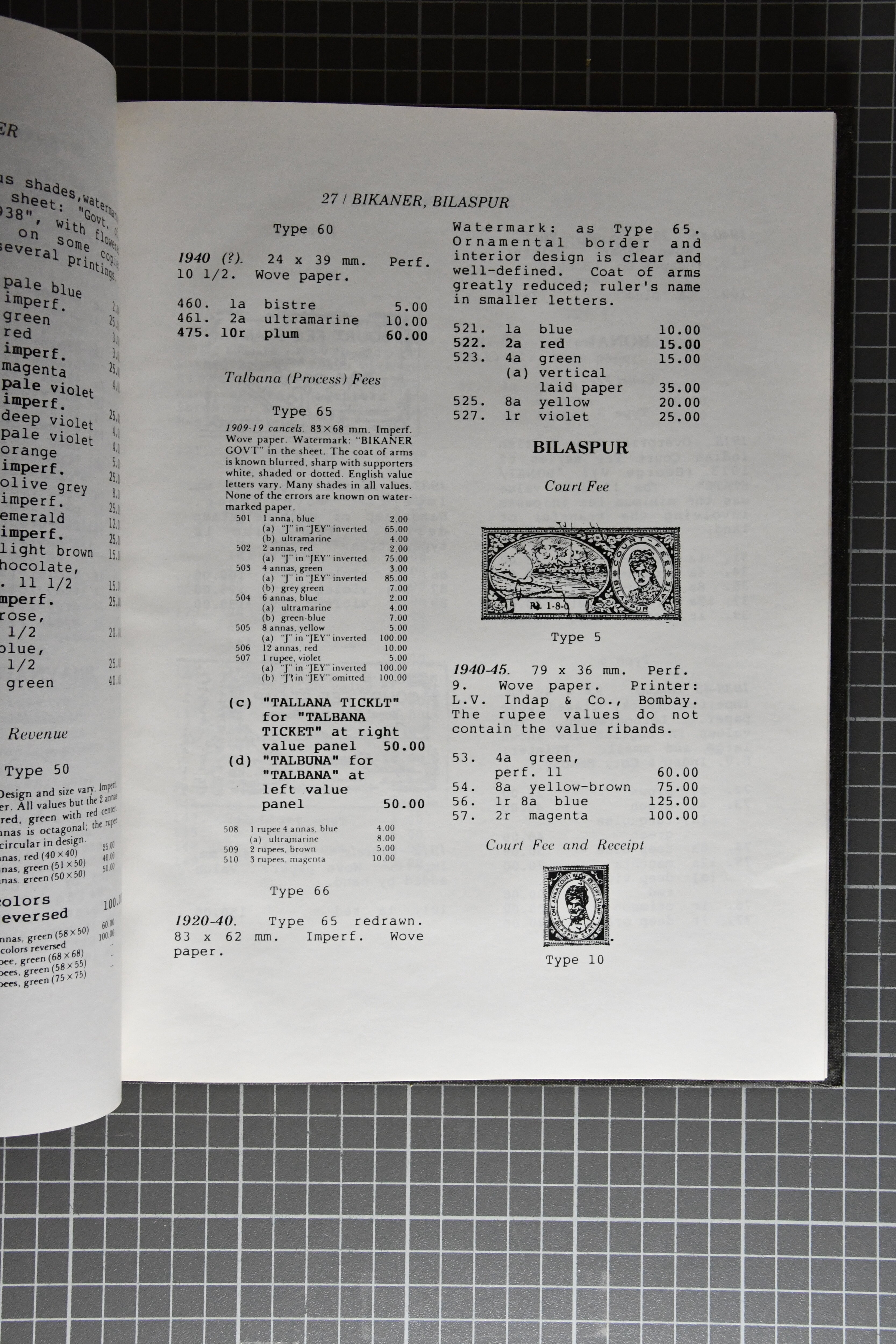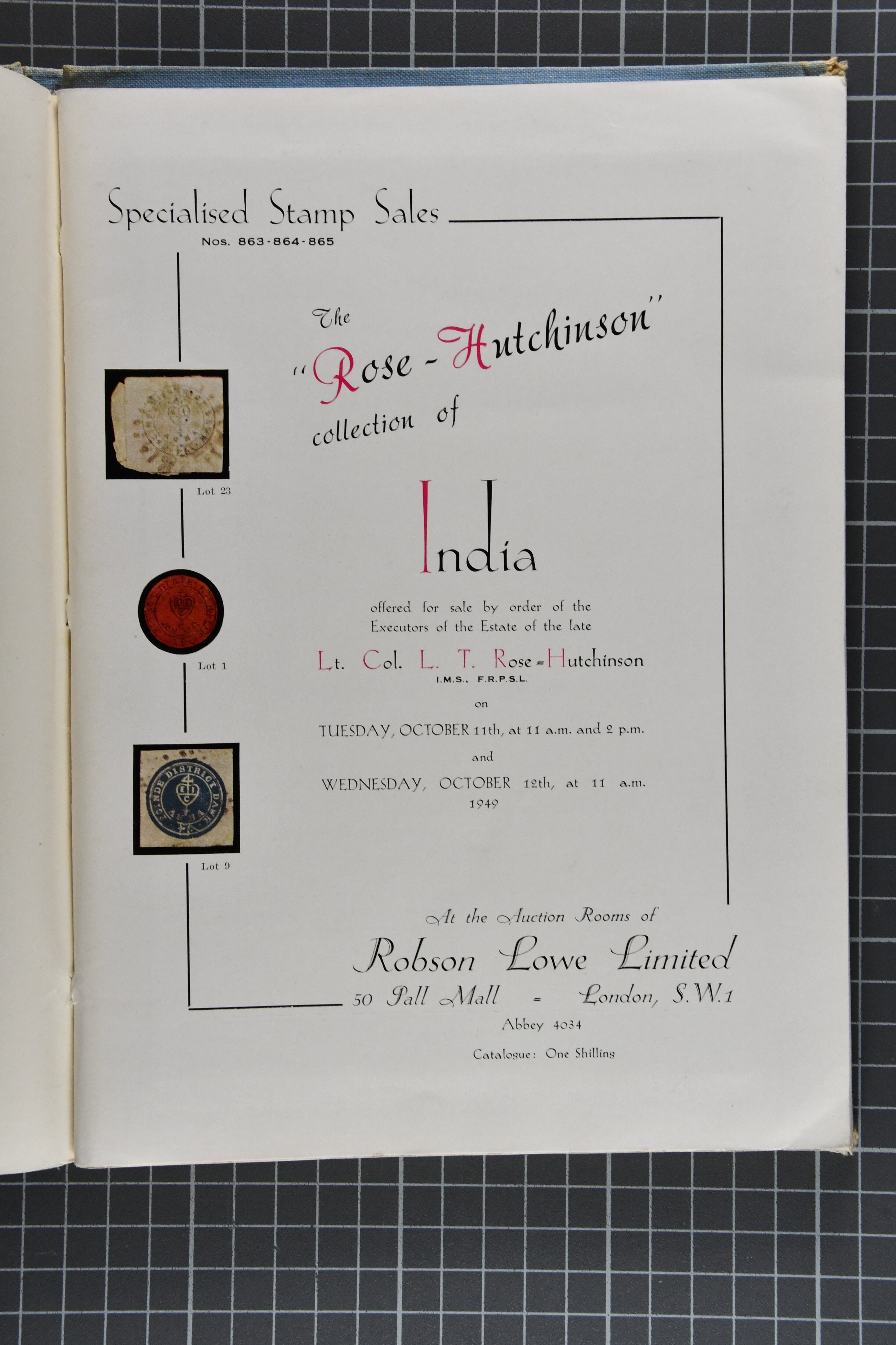 cloth hardback with interleaving and realisations. Also The 'Rose-Hutchinson Collection of India' 1949. Robson Lowe housebound in blue cloth hardback with interleaving and realisations. A scarce pair.' The Court Fees & Revenue Stamps of Princely