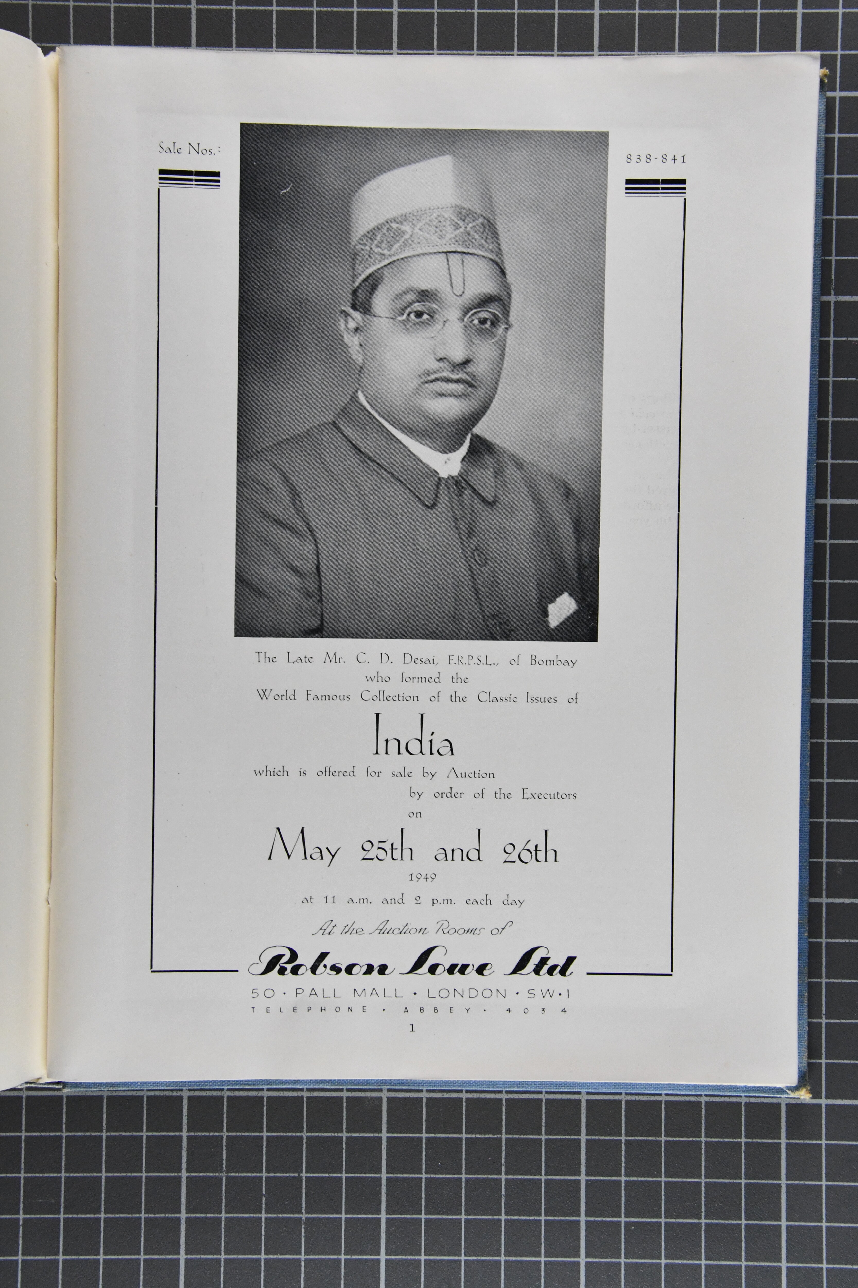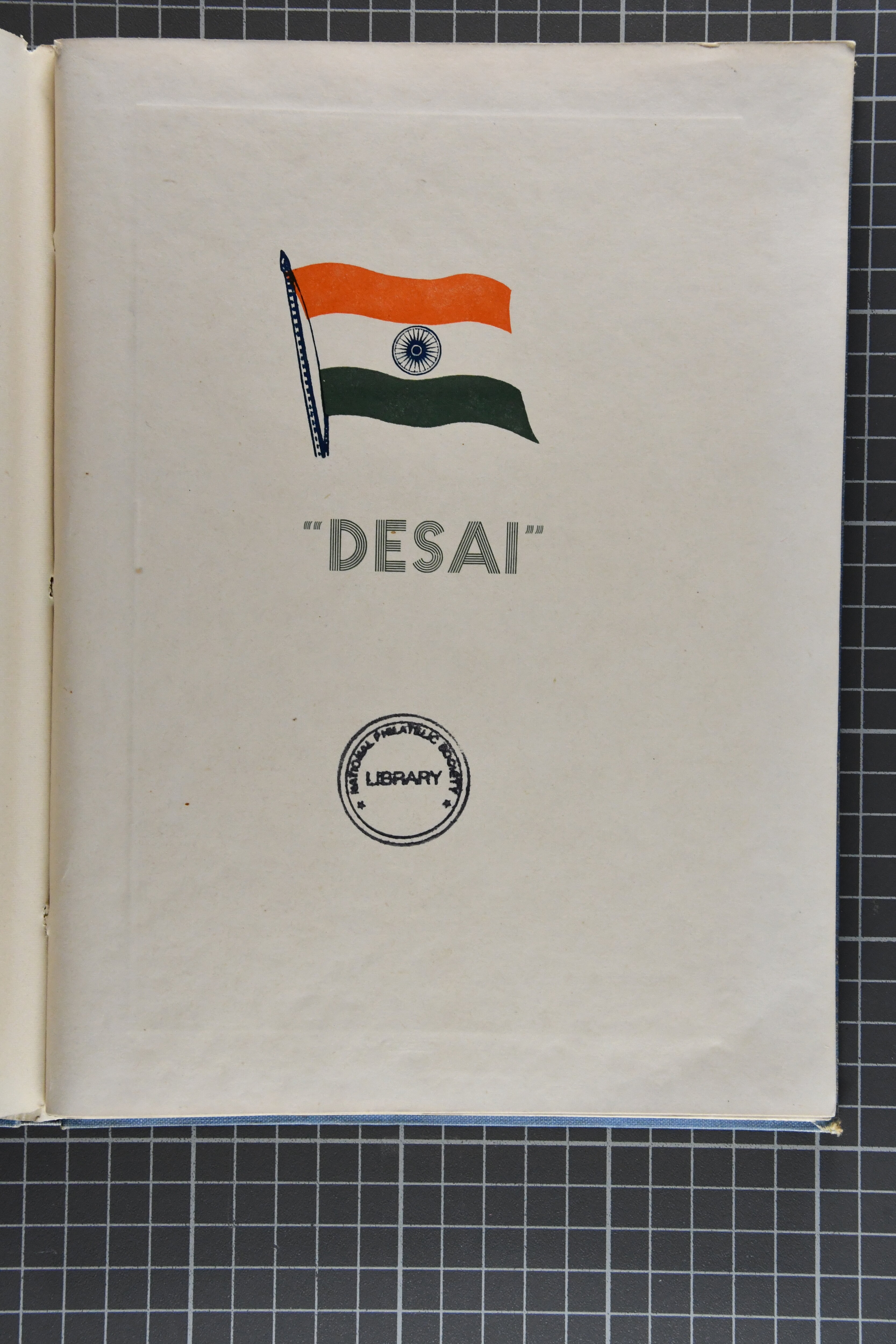 Postage Stamps of India 1854 – 55' (Dawson). number 4 of 125 deluxe editions signed by the author . Hardbound in green cloth with plates in rear pocket. In very good condition. The 'Desai Collection of India 1949'. Robson Lowe housebound in blue