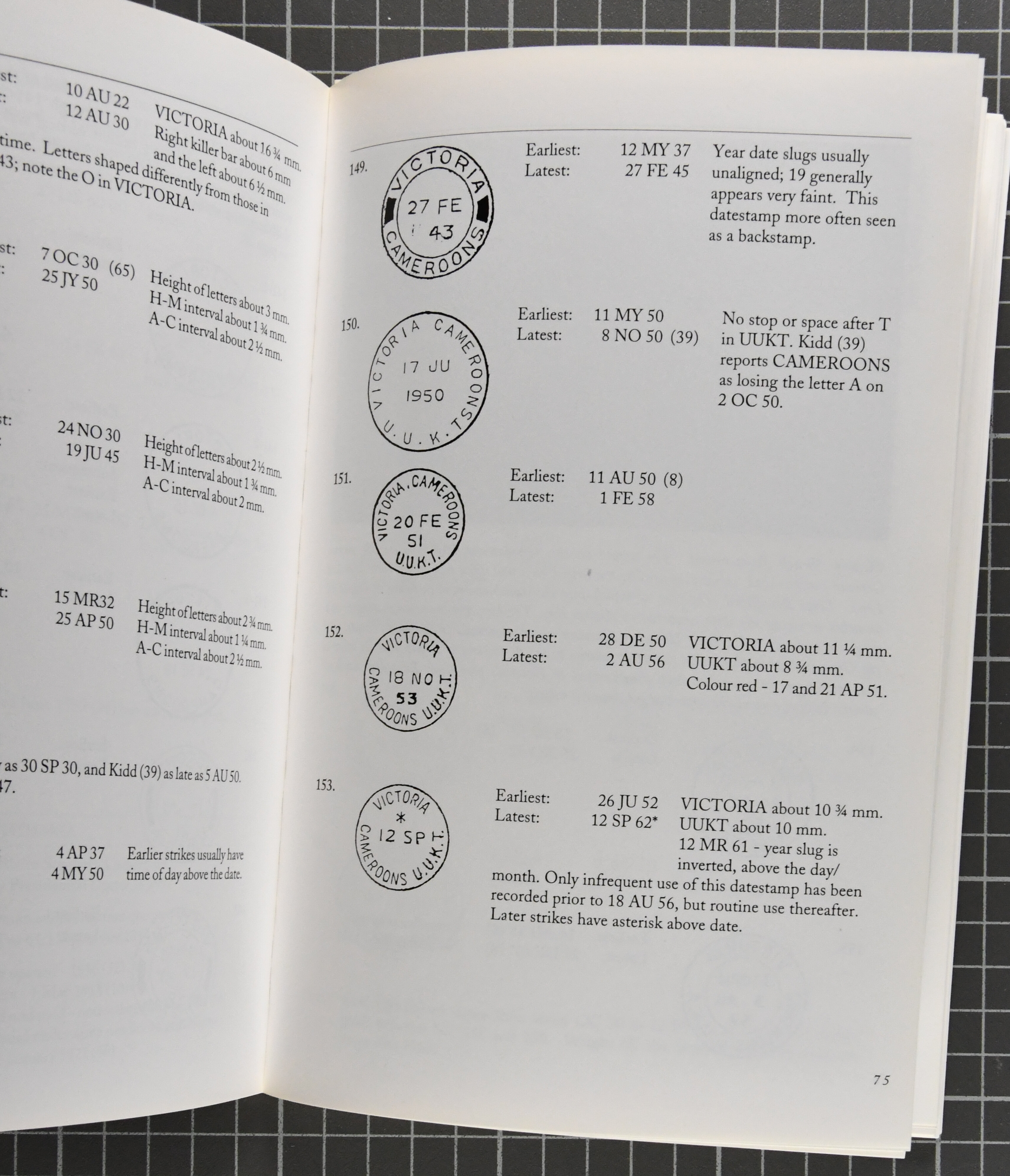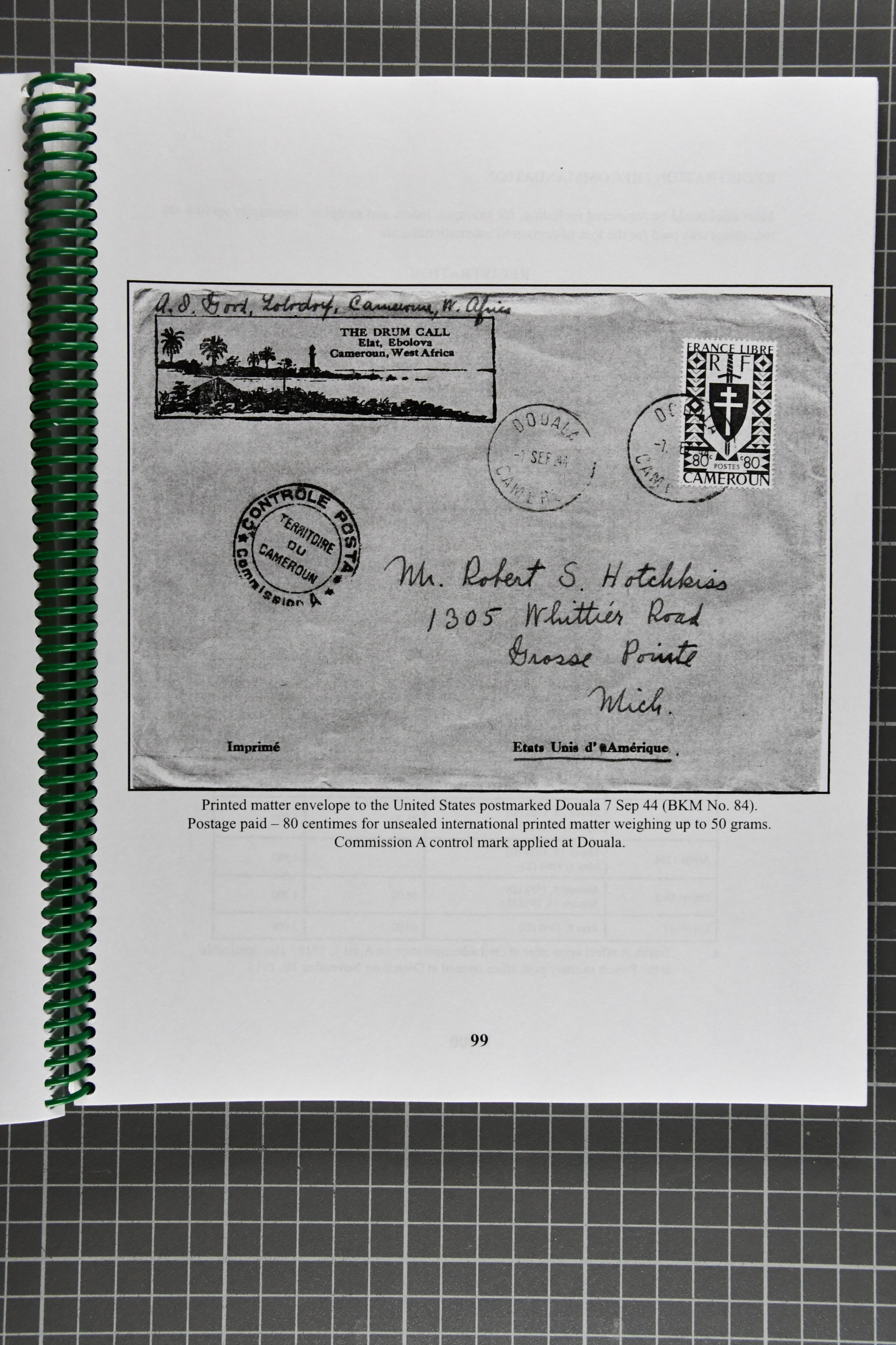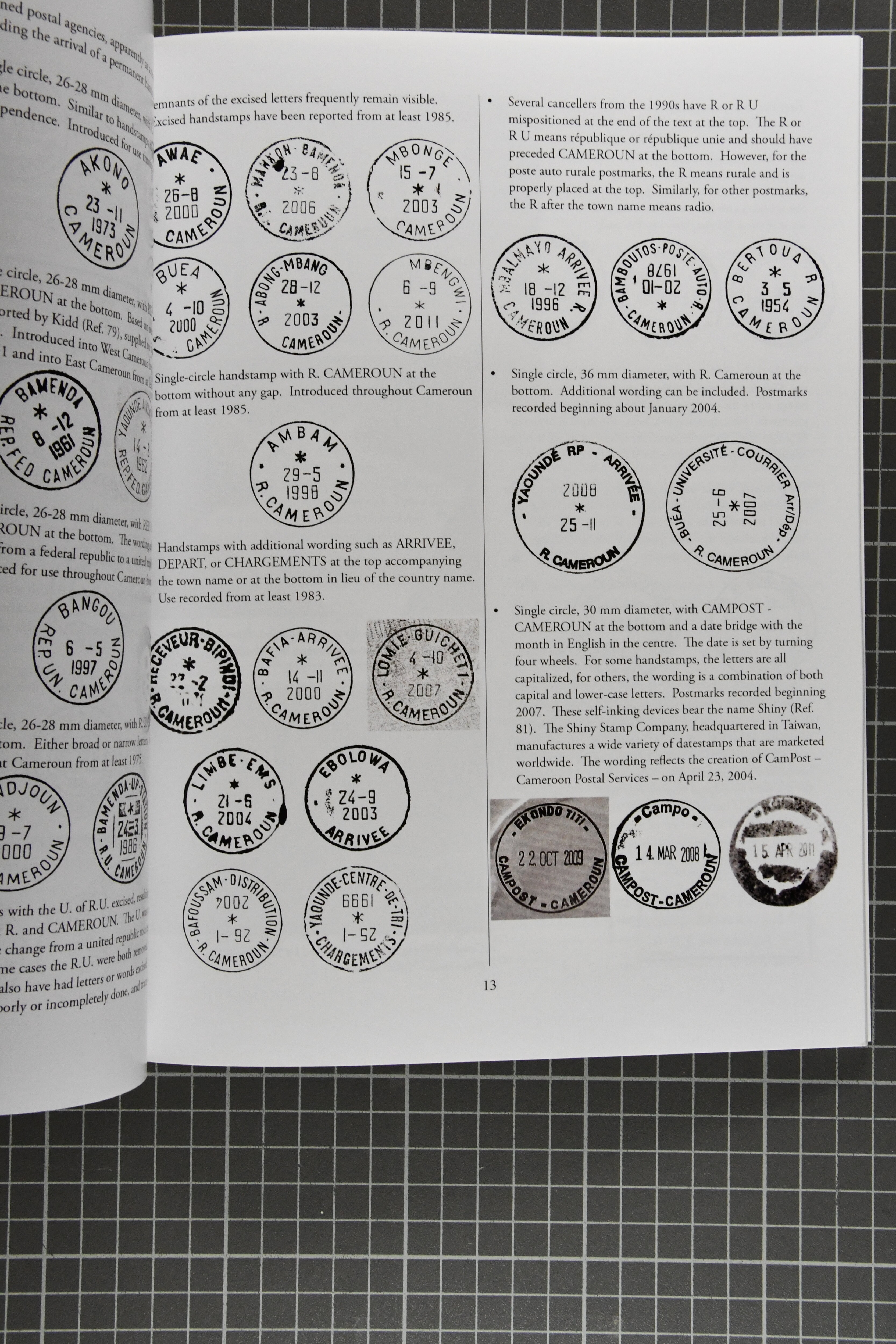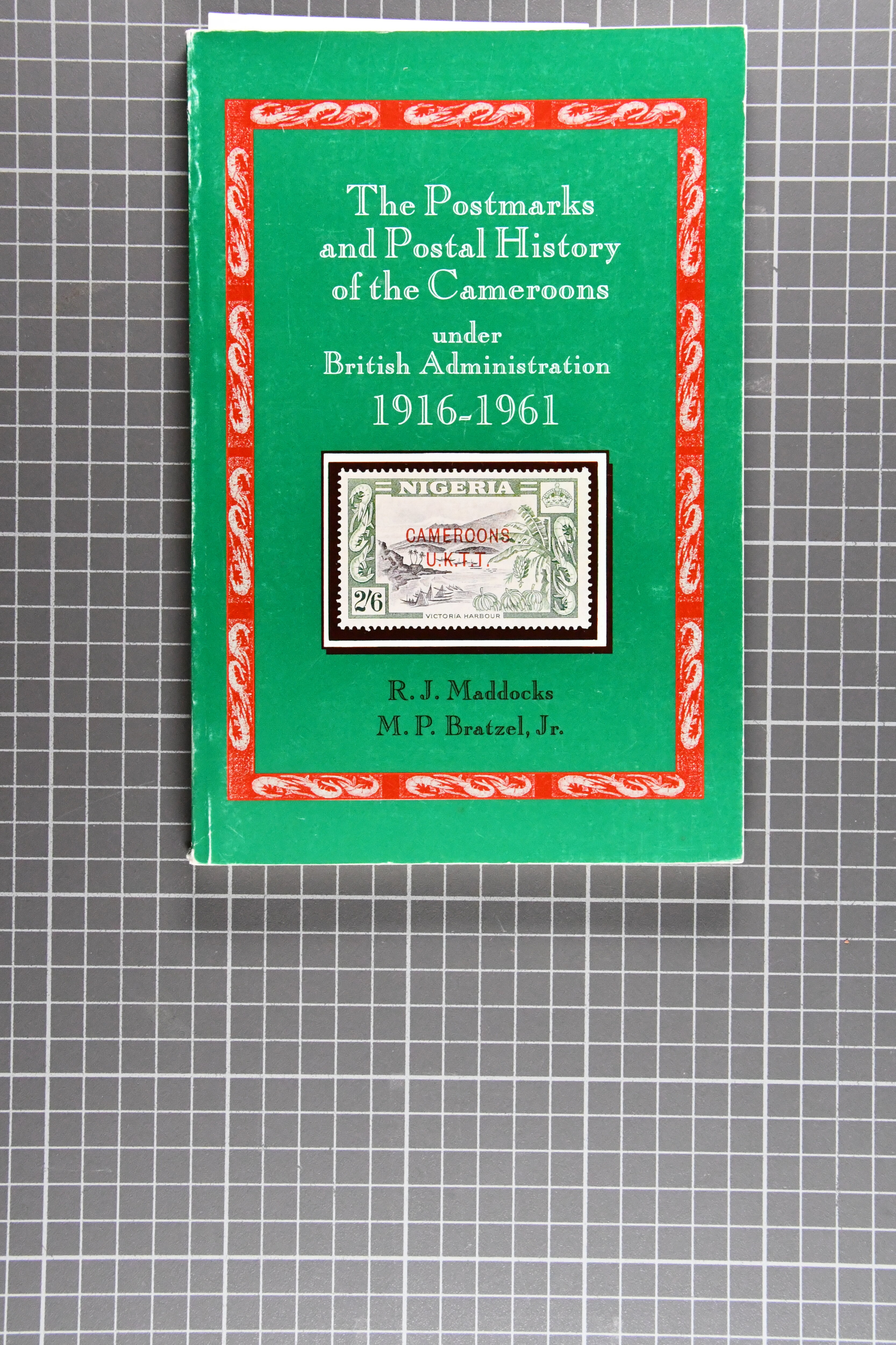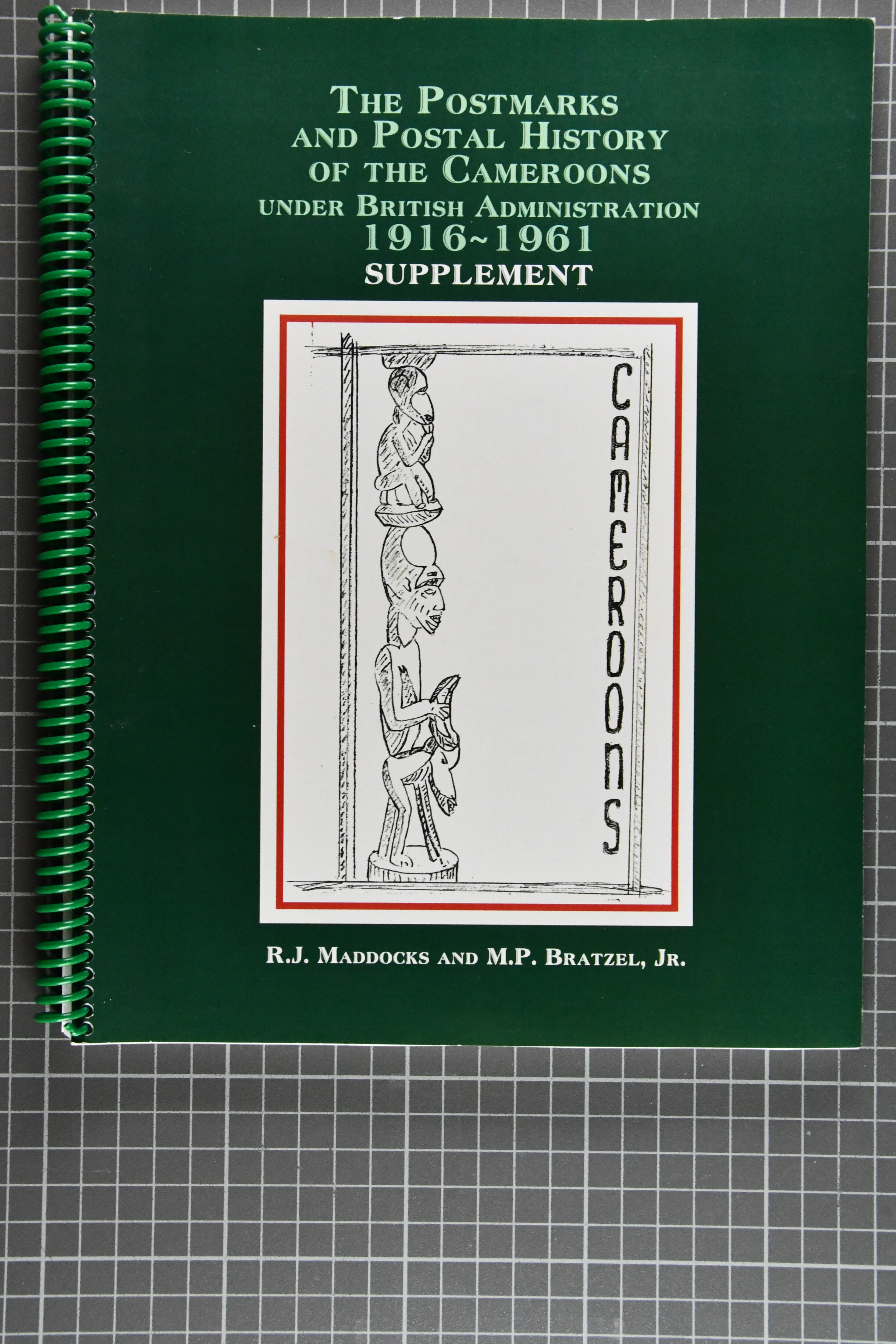 Postmarks and Postal History of the Cameroons under British Administration 1916–61' by R. J. Maddocks and M. P. Bratzel, Jr., is included along with its 'Supplement' (2007). Also featured is 'The Postmarks and Postal History of the Cameroons under