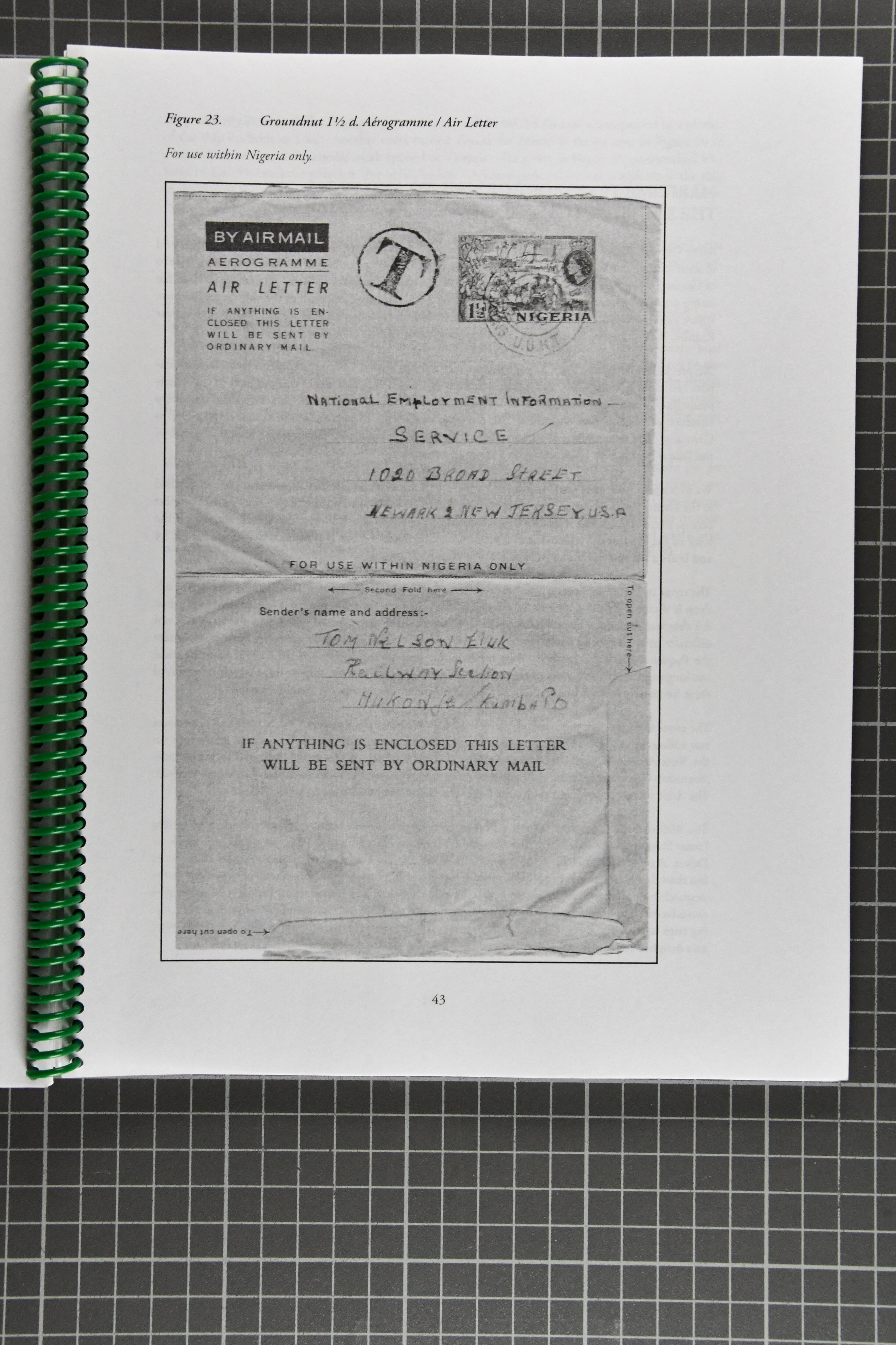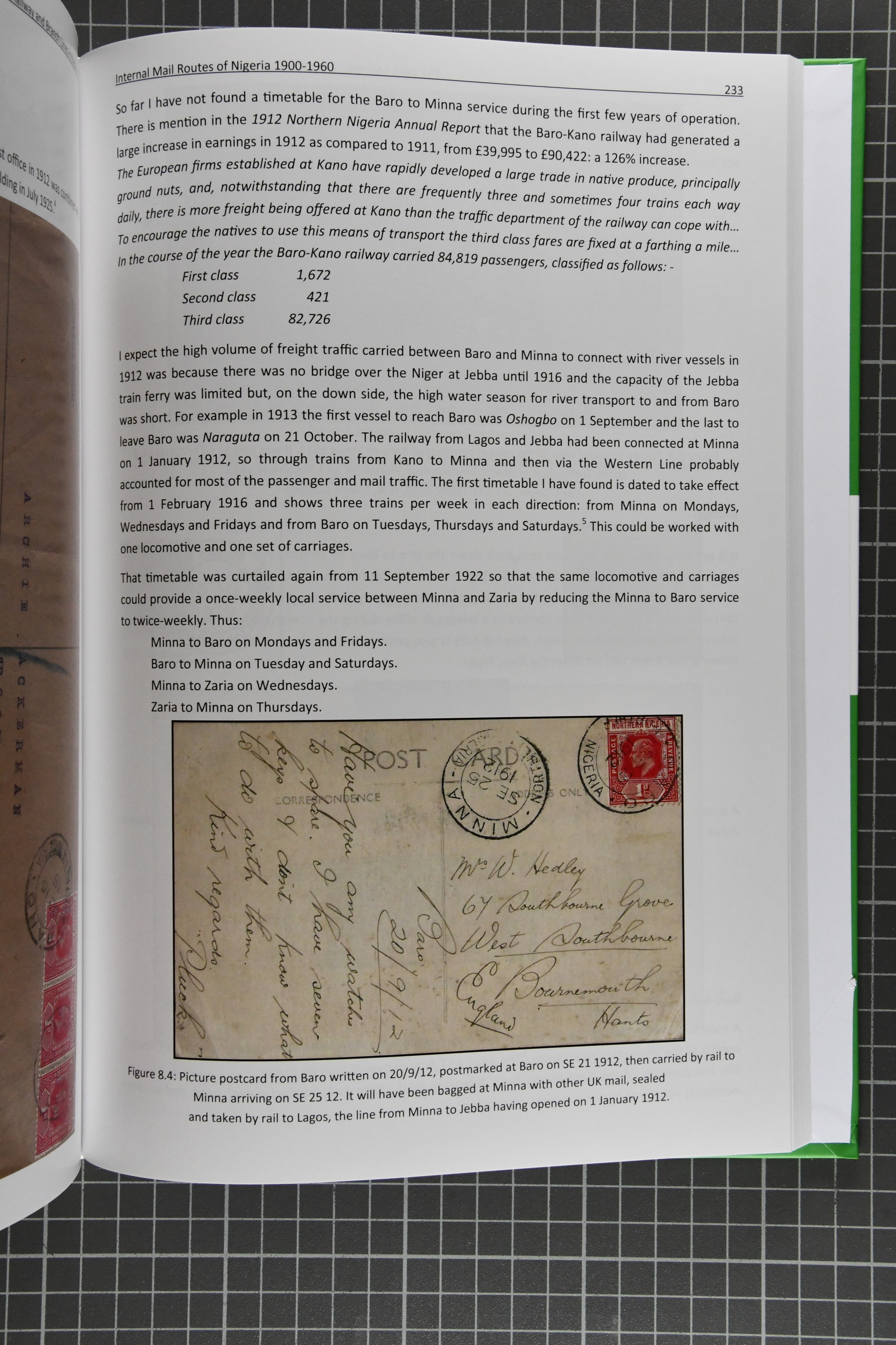 (2023) by R. F. May, FRPS, provides a detailed study of transportation networks, while 'Collecting Nigerian Cancellations' by Paul Redhead (2021) offers a specialist guide to postmarks and their variations. (Image 1)