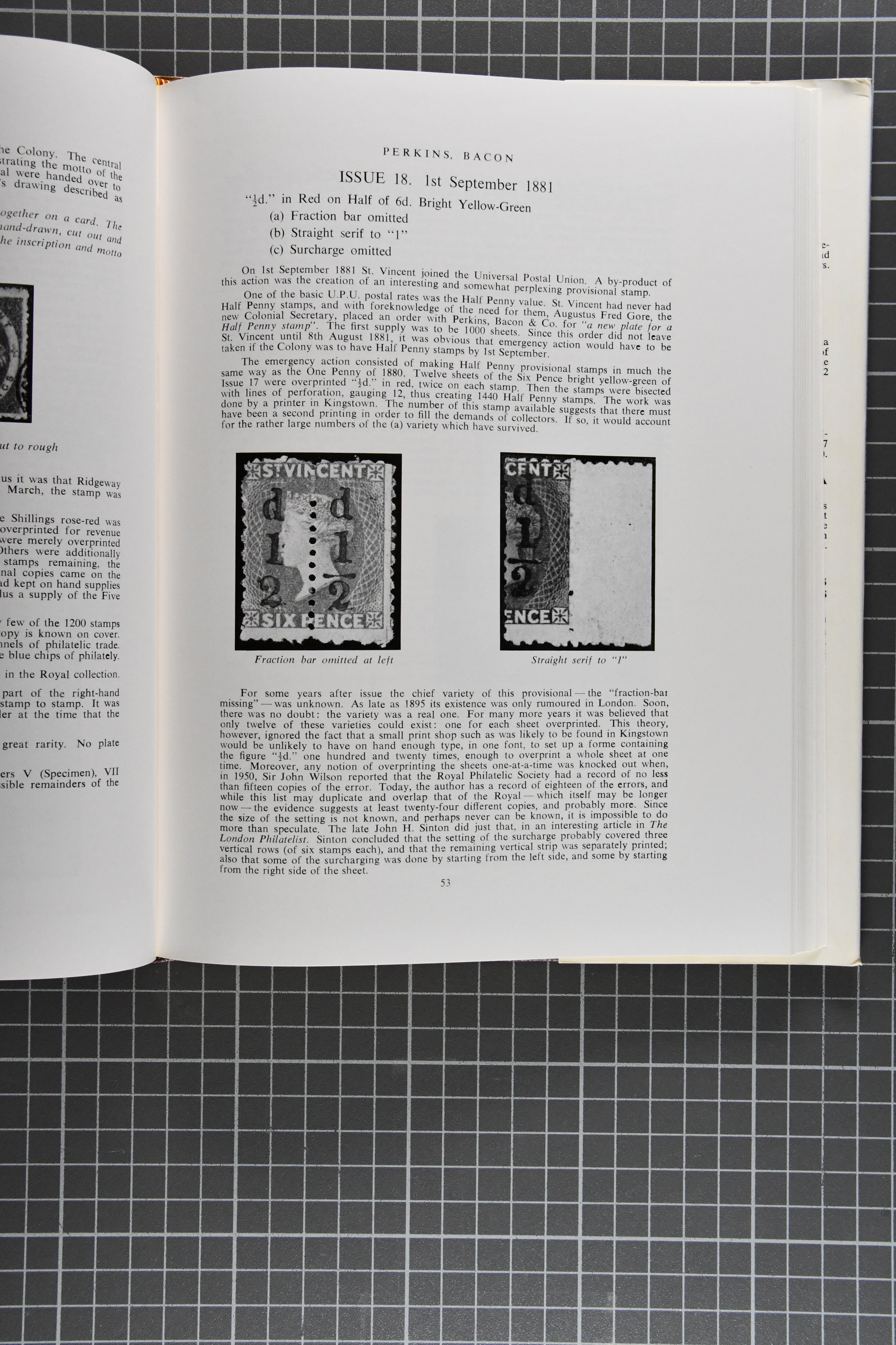 Plus 'Encyclopedia of Brititish West Indies Postmarks King George VI', 2007 and 'Encyclopedia of Brititish West Indies Postmarks Quen Elizabeth II Coronation - Indenpendence', 2015 both by David Stuart Horry FRPSL. Plus 'St. Vincent' the postal