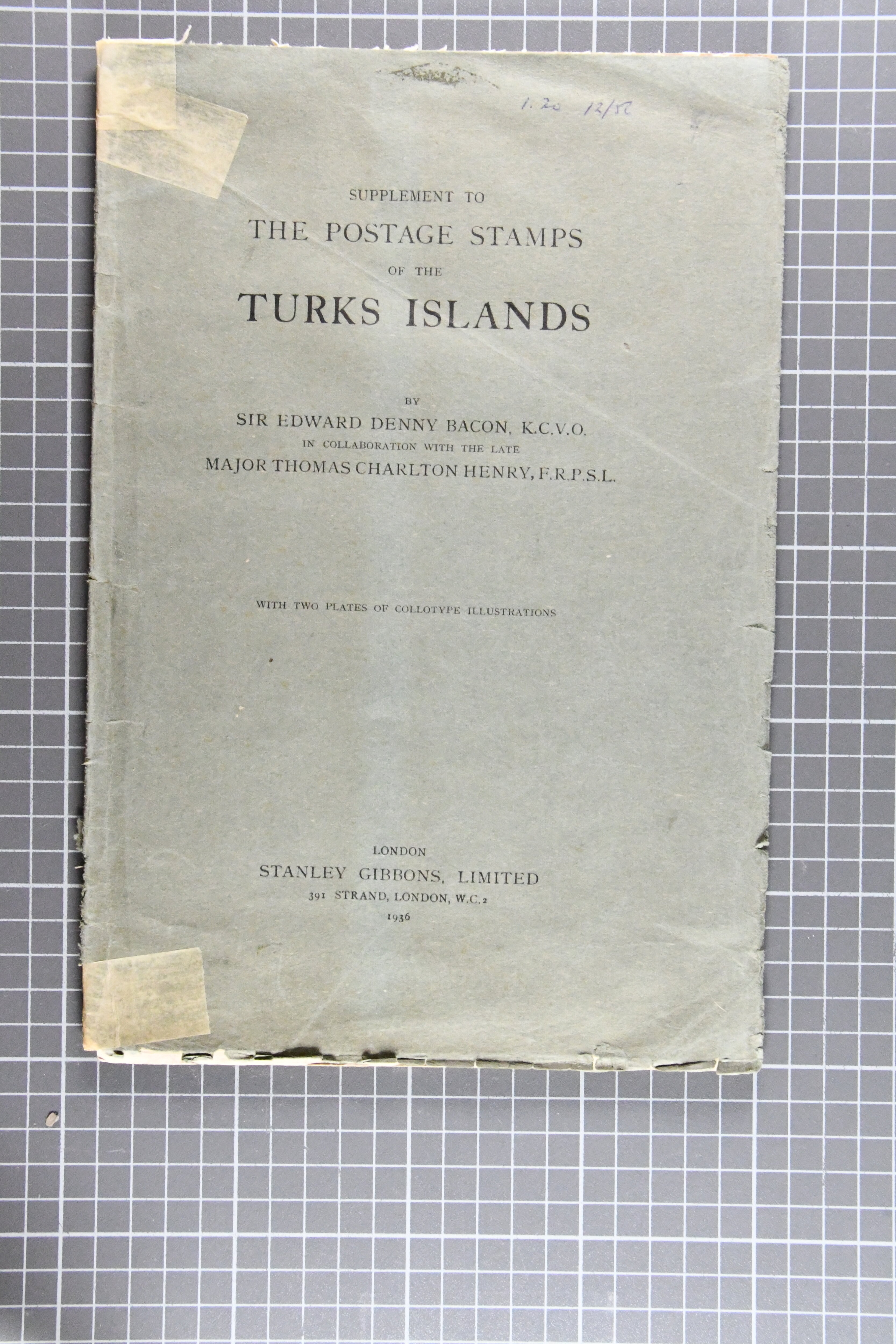 case; and 'The Postage Stamps of the TURKS ISLANDS by E. D. Bacon 1917, edited by Stanley Gibbons; 'King George VI of Bermuda, Leeward Islands and Nyasaland' by Robert W. Dickgiesser and Eric P. Yendall. Mostly good condition. (Image 1)