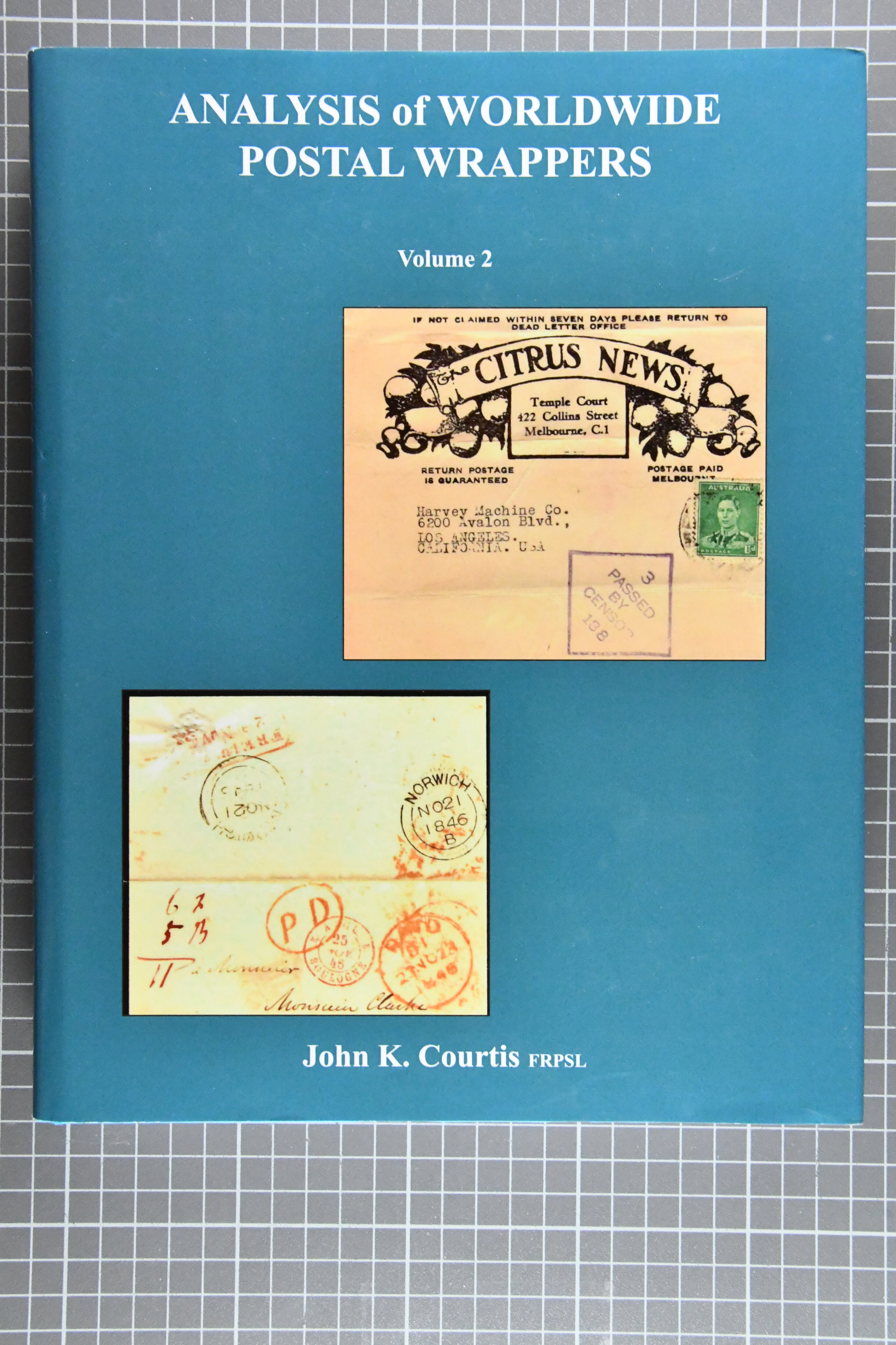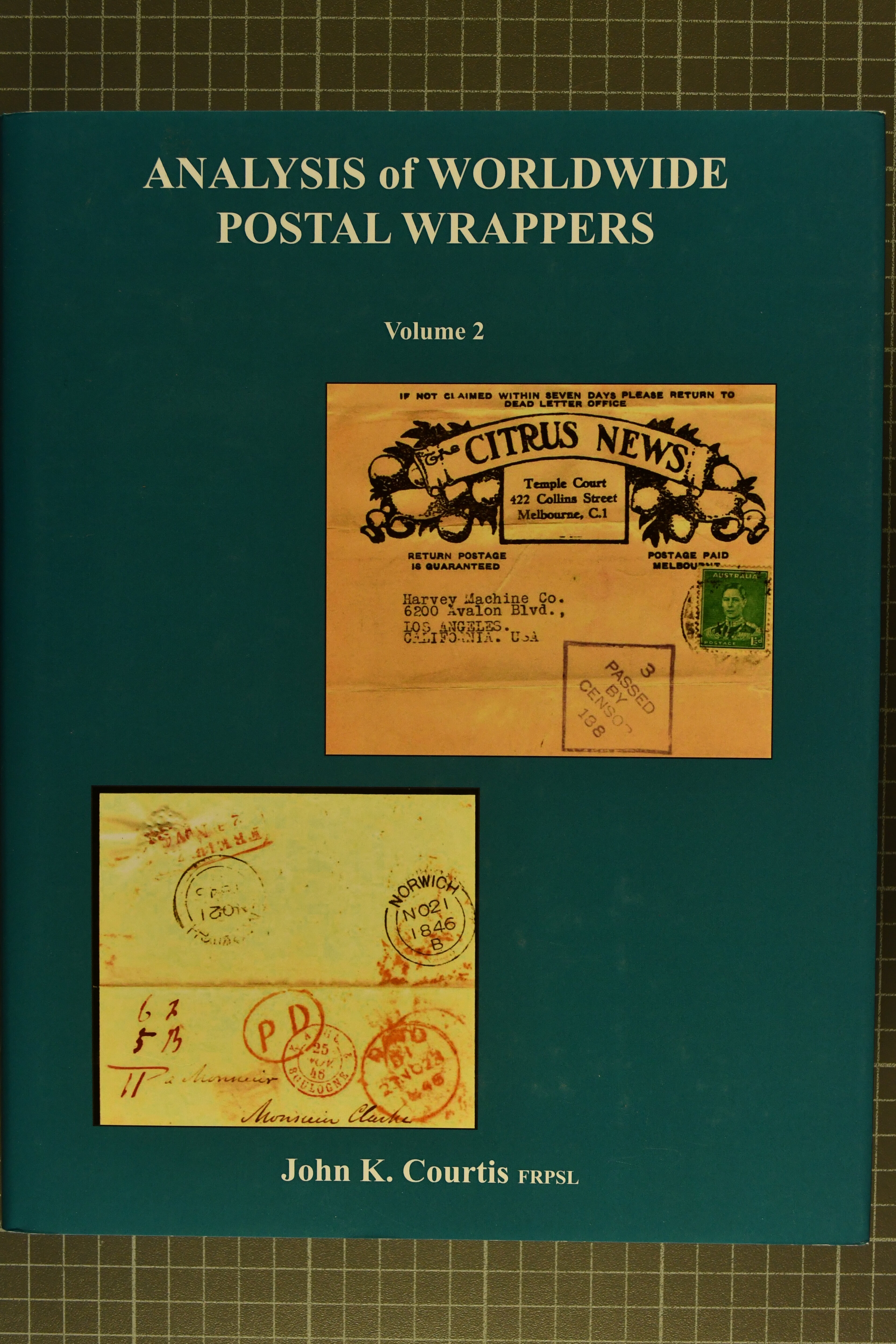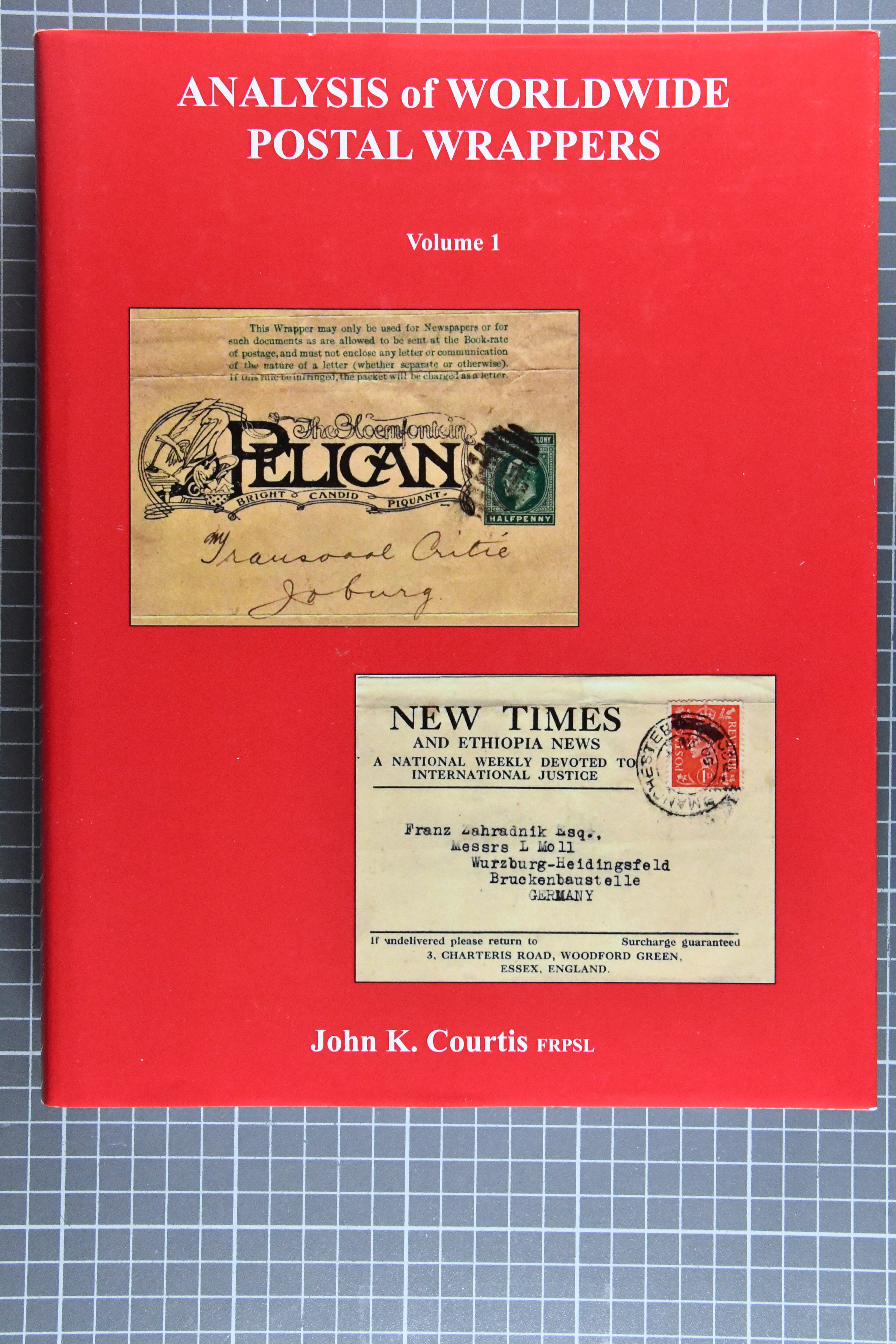 2015/2021: Postal Stationery - 'Overprinted Postal Stationery', Dr. John M Gledhill 2015; 'Analysis of WORDWIDE POSTAL WRAPPERS' in two Volumes by John K. Courtis, 2021. (Image 1)