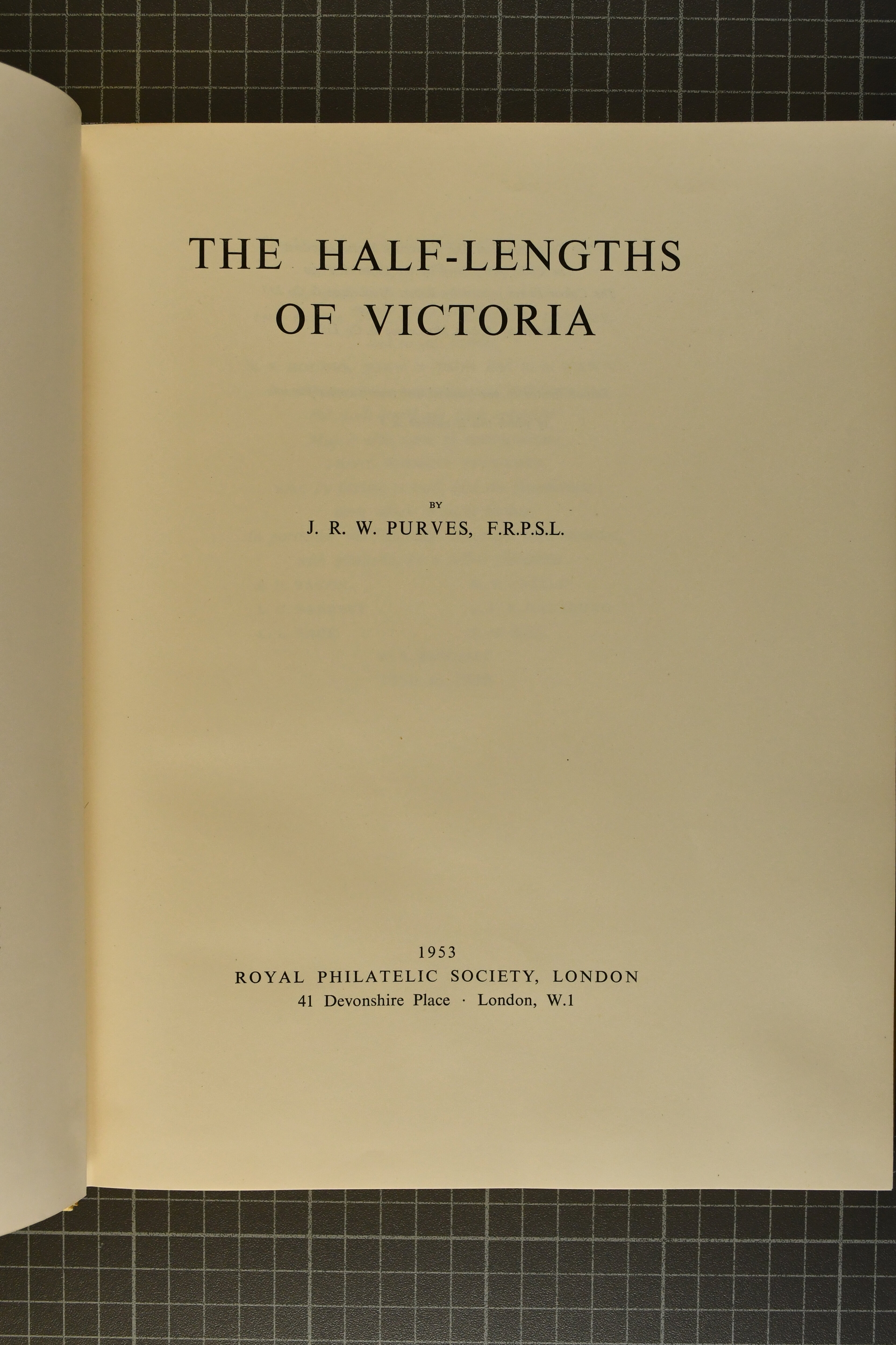 1953: 'The Half-Lengths of Victoria' J. R. W. Purves. Hardbound in yellow cloth with plates in rear pocket. number 27 of 120 (CRAWFORD medal 1954). One of the great classic single issue studies. In excellent