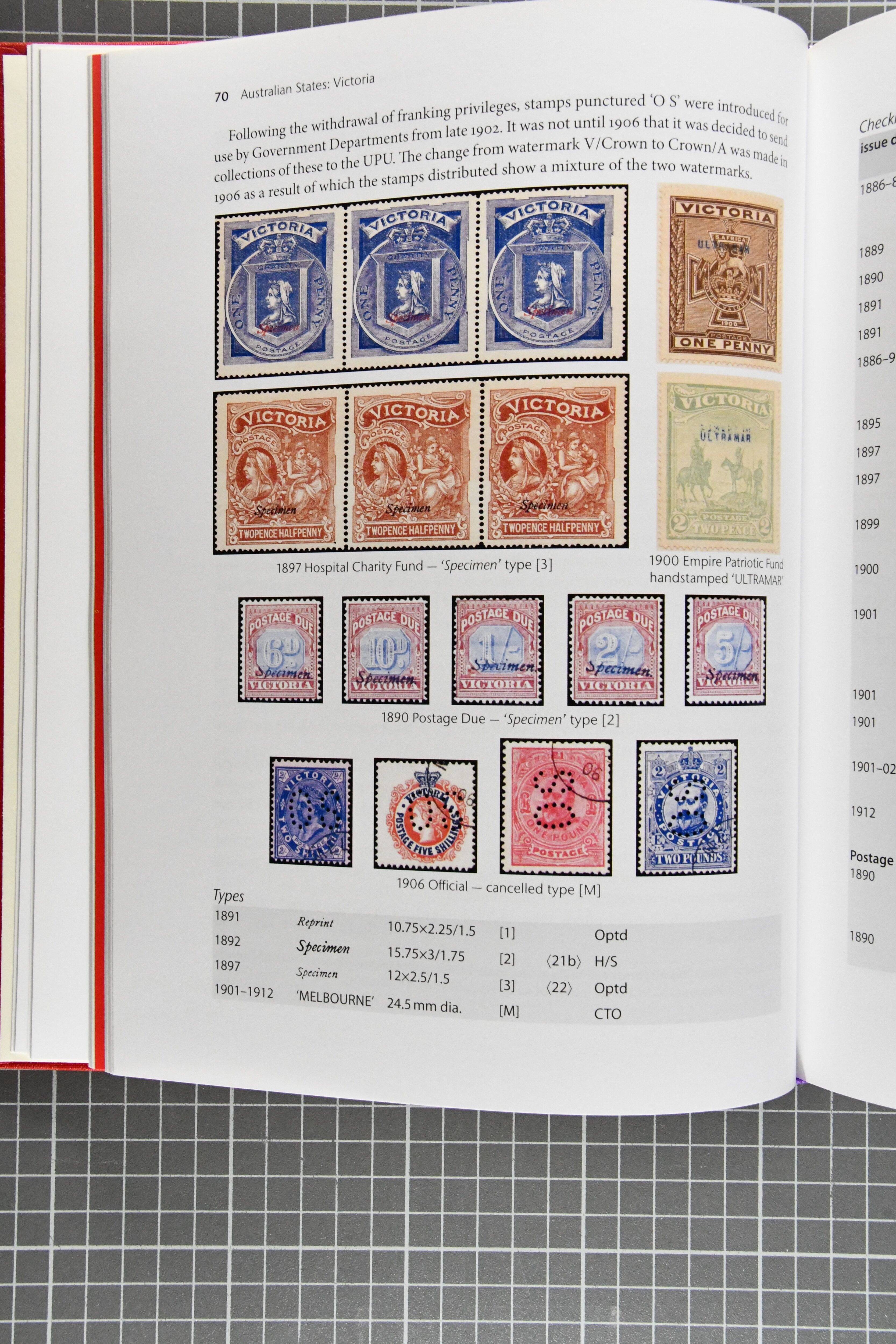 1890/2015: An excellent selection of five key works on Australian philately, including History of the Post Office and the Issue of Postage Stamps in New South Wales (1890) and The Half-Length Portraits and Postage